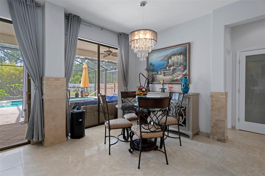 Welcome home! this is the one you have been waiting for! recently updated from top to bottom, inside and out, this mediterranean-inspired home has everything you could ask for and is move in ready! originally built by rottlund homes in 2008, this spectacular woodbridge ii floorplan features 3,654 sq ft of interior living space with 5 bedrooms, 4 bathrooms and a 3-car tandem garage. this stunning pool home is nestled on a quiet dead-end street and located in an intimate hoa community in tampa with sidewalks and a dog park. as you drive up, you'll be greeted by stunning architecture, lush landscaping, a tiled sidewalk and a new metal tile roof, providing both beautiful style and longevity. inside, the home opens to expansive living spaces, where you'll be awed by the gleaming porcelain tile floors, a magnificent brazilian cherry staircase with inlaid tilework adorning the steps, and wrought iron spindles. two story ceilings in the foyer and great room and large windows drench the home in natural light. throughout the home, tasteful finishes create a warm, contemporary ambiance. as you enter the home, you'll find a massive formal dining room. of course, it could also be a formal living room, or even and office/playroom. coming into the heart of the home, the 2025 remodeled kitchen is a chef’s dream—featuring elegant black stainless appliances including a voice-activated induction cooktop, a jennair built-in coffee system, cup warming drawer, wine fridge with custom cabinetry and stunning granite countertops. it's perfectly designed for both everyday meals and fancy dinner parties. the kitchen opens up to a breakfast nook and the great room with a fabulous view of the pool and backyard. to the right, there is a spacious pantry with frosted glass door, and the pool bathroom. the great room features an electric fireplace, beautiful tile walls with inset alcoves, two story ceilings, automatic shades on the upper windows and triple sliders out to the patio/pool. the primary suite is located on the main level, with a luxurious spa-like en suite bathroom featuring separate dual vanities, a beautiful tile shower and garden tub and enormous walk-in closet with custom organizational system. there is also a fantastic nook with its own closet perfect for a home office, reading space or a just a quiet retreat. upstairs, you'll discover the 4 additional spacious bedrooms. one of them was originally a massive theatre/flex room, so you'll find countless ways to purpose this space. the other three bedrooms all have bamboo flooring. both full bathrooms upstairs were just remodeled this year. with a dual-zone a/c system (units replaced in 2024 and 2025), whole house water-filtration system and solar attic fans, this house is loaded with features too numerous to list. goind back downstairs, you'll want to step outside to the backyard paradise complete with a sparkling pool with a new pump, filter and timer, plenty of covered patio space, and mature greenery that creates a serene, private escape. this home is ideally situated near top-rated schools, shopping, dining, and entertainment. it's super close to 41, veterans and 275/75 - less than 20 minutes from downtown tampa and the airport, less than an hour from the gulf coast beaches and under 90 minutes from orlando. new updates - june 2025 - concrete overlayment on driveway, new fridge and automatic blinds in primary bathroom.15630 N HIMES, TAMPA, FL 33618