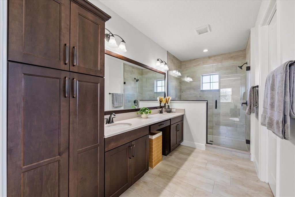 Welcome to this modern and luxurious home in the beautiful and sought after toll brothers community of lakeshore preserve in horizon west winter garden. this immaculate 4 bedrooms 3.5 bathrooms residence showcases custom upgrades and is in pristine condition throughout. from the inviting front porch to the luxurious finishes, every detail exudes elegance and comfort. this home features a flex room or office and two large bedrooms with a jack and jill bathroom on the first floor. a massive gourmet kitchen offering lots of cabinets space, elegant quartz countertops and a spacious walk-in pantry. the kitchen also opens up to the dining room and an oversized and, inviting family room. a triple panel sliding door takes you to the massive lanai for your outdoor enjoyment with space for plenty of outdoor furniture and with enough space left to build your outdoor kitchen. on the second floor you will find the primary bedroom, a massive bonus room and a large secondary bedroom with its own private bathroom offering a lot of privacy. the well-located community of lakeshore preserve is a picturesque oasis that offers plenty of amenities including a luxurious state-of-the-arts clubhouse with activity rooms, a zero-entrance community pool and a well-equipped gym, adding to this community’s allure are 2 playgrounds, parks for the whole family and a dog’s park as well. the hoa includes all the amenities, basic cable, 1 gig internet, lawn care and maintenance, sidewalk pressure washing and different social activities throughout the year for all the residents. don’t miss out on this great home at an incredible price and in a excellent location, just a few minutes from disney and other theme parks.15636 SHOREBIRD, WINTER GARDEN, FL 34787
