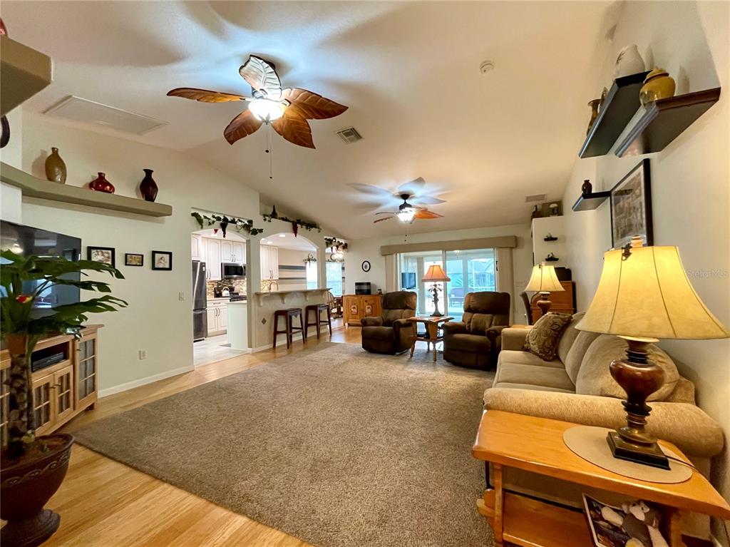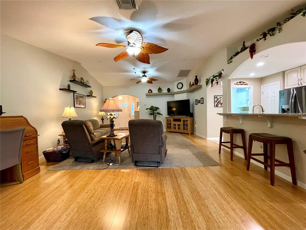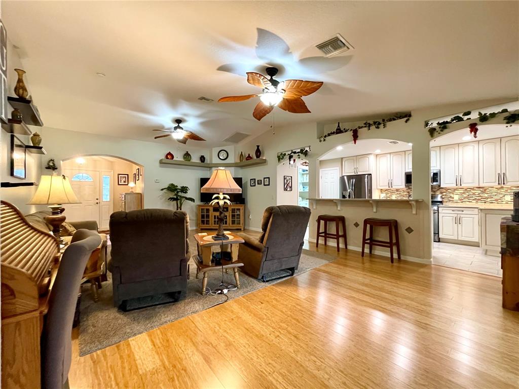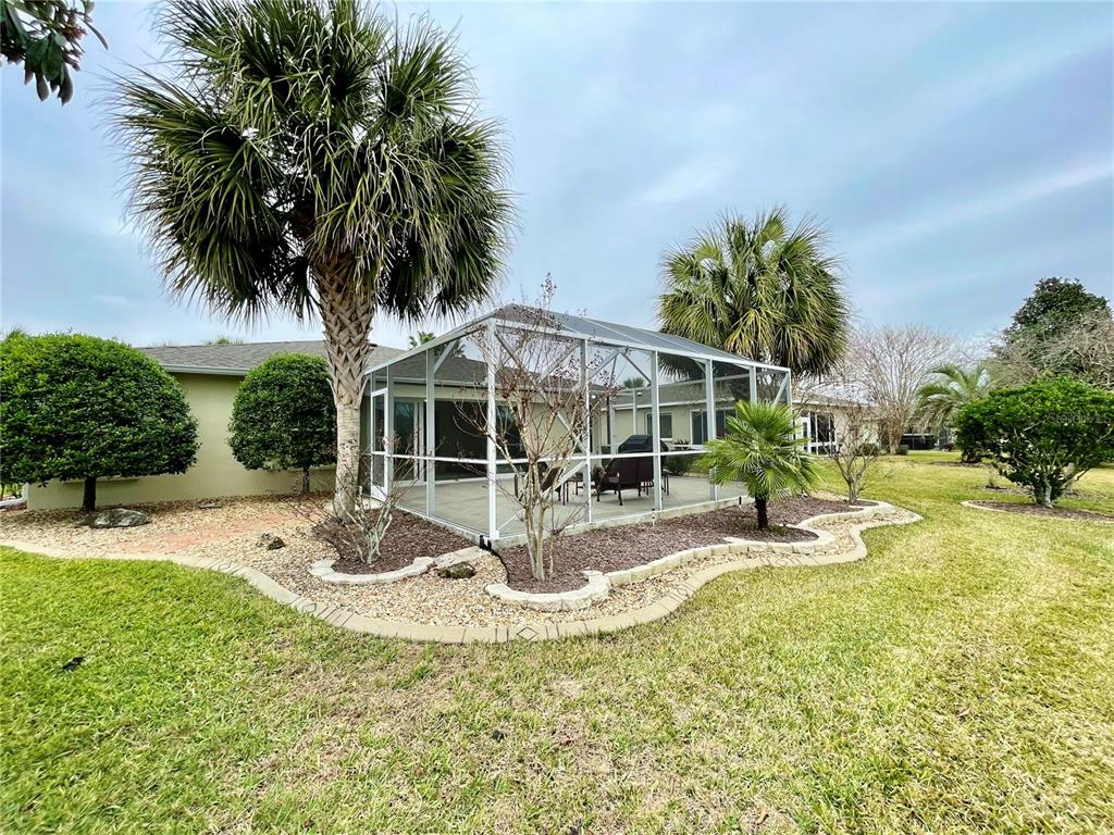 Brand new roof 2023. don’t miss this simply irresistible rendition of the ever popular melbourne floorplan. this home boasts so many niceties starting at the curb with a designer driveway leading up to the screened front entry, all the way thru the highly upgraded and customized kitchen and into the enclosed lanai and beyond. you will enjoy being welcomed into a tiled foyer with coat closet on to a sizable great room with bamboo flooring and plenty of space to include a formal dining space if so desired. open floorplan allows interaction from the cook in your beautiful new kitchen with custom cabinetry including soft close drawers, quartz counters, upgraded appliances including a gas stove that is also prepped for electric. additional cabinetry in the breakfast nook further complements the kitchen and the highly organized pantry space gives you room to collect all those special spices. the owner has taken special care to add all the little day to day nuances that make life just a wee bit nicer such as under cabinet lighting, 3 solar tubes for natural light, and extra lighting on the custom shelving to allow your special pieces to shine. the primary suite enjoys great space for a king bed and large furniture with a custom bath that gives dual vanity, glass shower enclosure, and separate water closet. a separate walk-in closet has plenty of space for him and her. don’t miss out on fun in the sun with your very own screened bird cage with designer concrete off of the enclosed lanai. extra features such as the electronic lighted awning and a piped in gas hook-up for the grill make entertaining that much more enjoyable. in addition a few simple steps from the added cart garage on a sweet little concrete walking path take you to this back yard dream. lush landscape surrounds this truly beautiful home. summerglen lot 607.15715 SW 11TH TER, OCALA, FL 34473