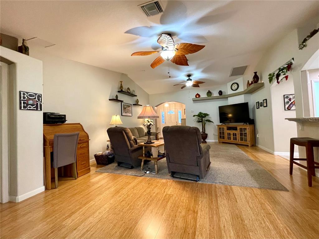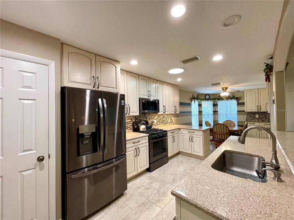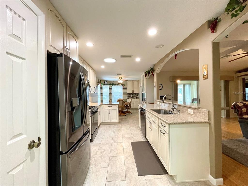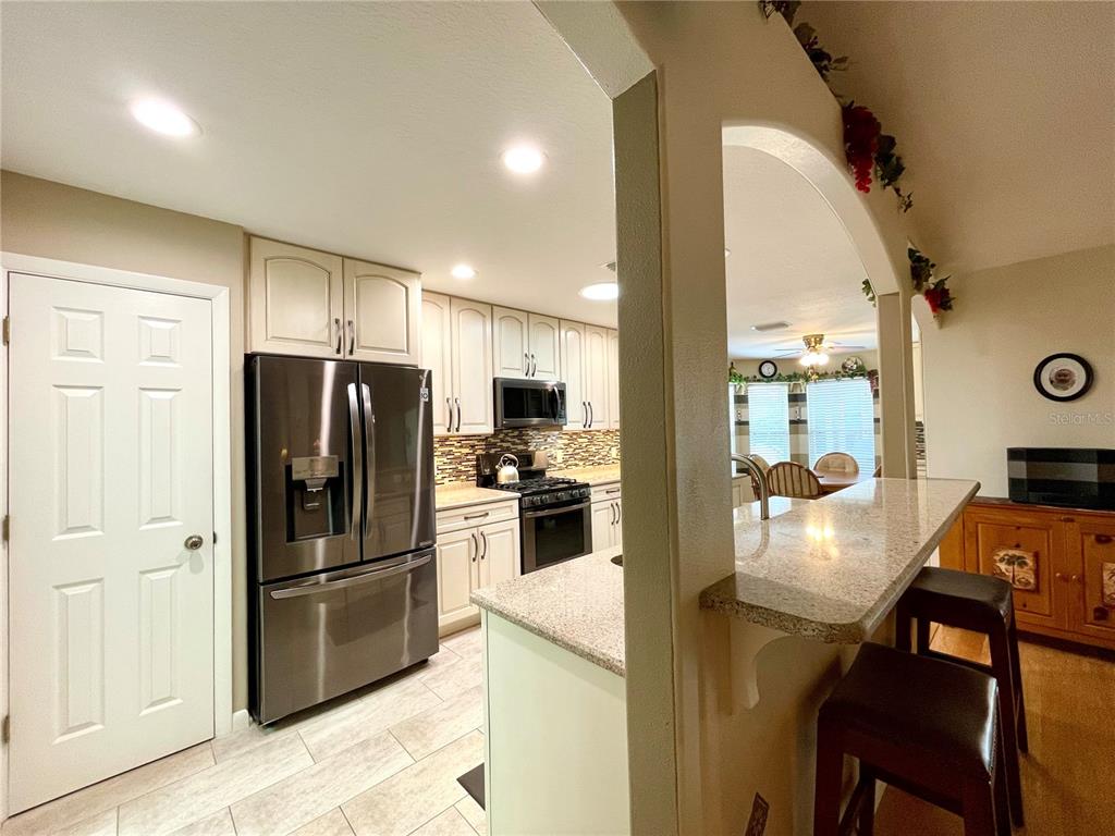 Brand new roof 2023. don’t miss this simply irresistible rendition of the ever popular melbourne floorplan. this home boasts so many niceties starting at the curb with a designer driveway leading up to the screened front entry, all the way thru the highly upgraded and customized kitchen and into the enclosed lanai and beyond. you will enjoy being welcomed into a tiled foyer with coat closet on to a sizable great room with bamboo flooring and plenty of space to include a formal dining space if so desired. open floorplan allows interaction from the cook in your beautiful new kitchen with custom cabinetry including soft close drawers, quartz counters, upgraded appliances including a gas stove that is also prepped for electric. additional cabinetry in the breakfast nook further complements the kitchen and the highly organized pantry space gives you room to collect all those special spices. the owner has taken special care to add all the little day to day nuances that make life just a wee bit nicer such as under cabinet lighting, 3 solar tubes for natural light, and extra lighting on the custom shelving to allow your special pieces to shine. the primary suite enjoys great space for a king bed and large furniture with a custom bath that gives dual vanity, glass shower enclosure, and separate water closet. a separate walk-in closet has plenty of space for him and her. don’t miss out on fun in the sun with your very own screened bird cage with designer concrete off of the enclosed lanai. extra features such as the electronic lighted awning and a piped in gas hook-up for the grill make entertaining that much more enjoyable. in addition a few simple steps from the added cart garage on a sweet little concrete walking path take you to this back yard dream. lush landscape surrounds this truly beautiful home. summerglen lot 607.15715 SW 11TH TER, OCALA, FL 34473