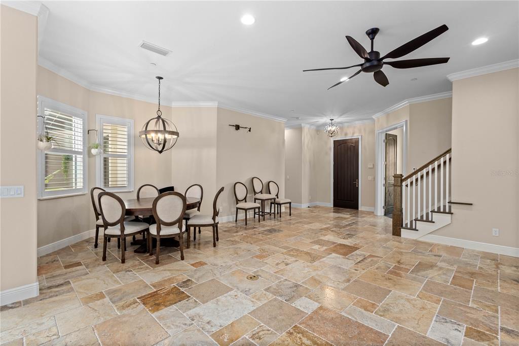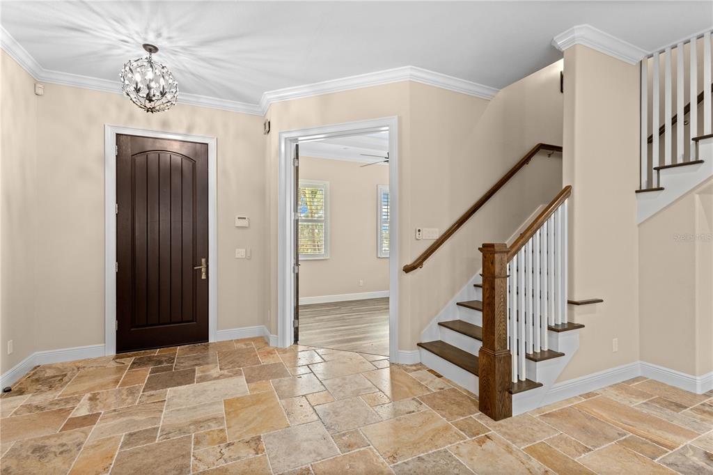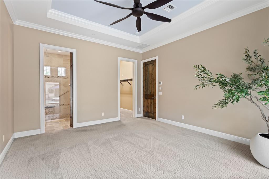 Built-in Features Walk-In Closet(s)Ceiling Fan(s) High Ceilings Stone Counters Thermostat Window TreatmentsCrown Molding Primary Bedroom Main Floor Smart Home Central VacuumExterior Features:
