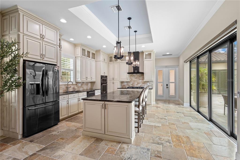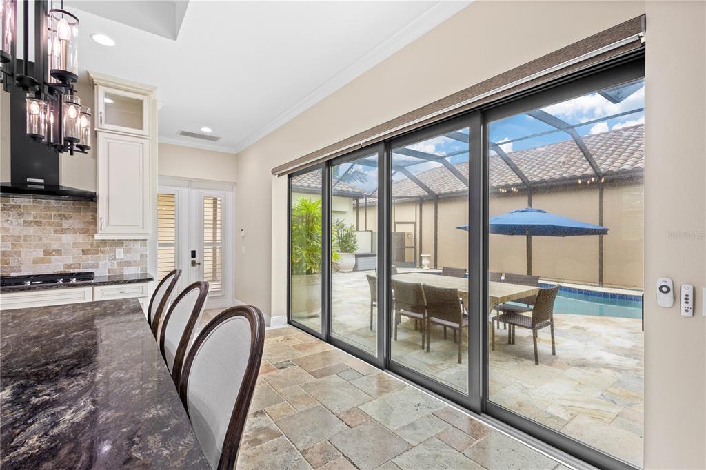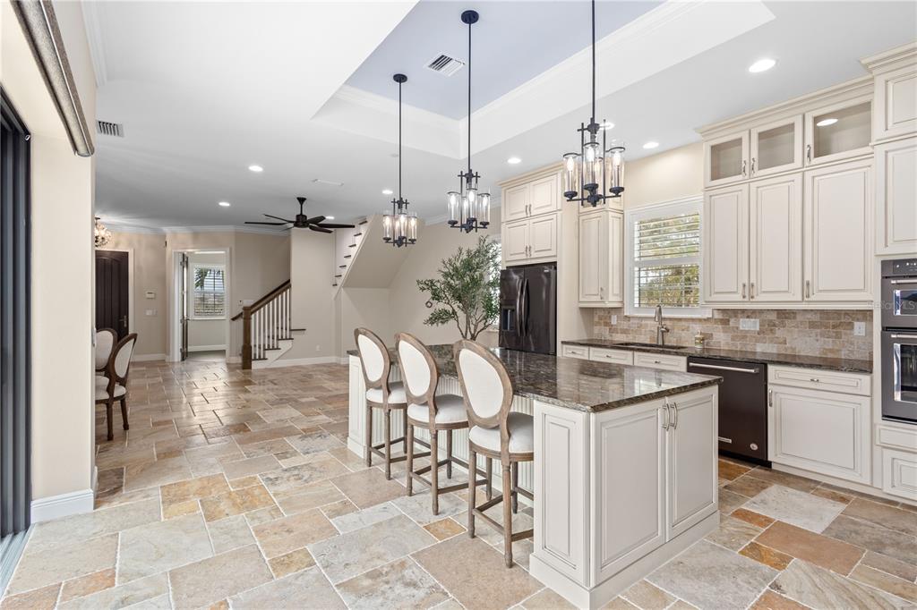 Welcome to island living in venice florida! this gorgeous tra ponti villaggio oasis defines the stage for luxury living. built in 2018 on a spacious corner lot, this extraordinary 3-bedroom, 3 1/2-bathroom residence with 2,828 sq ft under air, offers breathtaking views of the tranquil intracoastal waterway. the property is enclosed by a gated community with beautiful premium landscaping. inside, the home is filled with charm accompanied with modern amenities such as plantation shutters, crown molding, high ceilings, and 8 ft. doors throughout the entire home. the amazing master suite has custom-designed his & hers walk-in closets, a luxurious tiled bathroom, spacious walk-in shower and a door opening to the pool. there is also a half bath with a door connecting it to the pool and den located on the first floor as well. the fabulous gourmet kitchen is equipped with top-of-the-line kitchenaid appliances with a walk-in pantry. kitchen appliances also include a large warming drawer that can also be used for slow cooking. step outside to the meticulously designed private caged pool area, where an outdoor grill and refrigerator is great for entertaining. an electric awning shades the poolside seating area, creating a serene oasis for leisurely afternoons. guests will enjoy the privacy provided by the beautifully designed casita adjacent to the main residence and off the pool that includes a large walk in closet and full bathroom. upstairs, a family room with a wet bar leads to a rear balcony overlooking the sparkling pool area, offering a secluded spot for relaxation and enjoyment. the balcony on the front of the house is equipped with two large fans and automated screens guaranteeing year round outdoor entertainment, enjoyment and relaxation of the breathtaking views of the intracoastal waterway. this gem has superior craftsmanship from the elegant stone to the exquisite poolside travertine table by robb & stucky. experience a lifestyle defined by elegance, comfort, and endless beauty on venice island!158 E TAMPA, VENICE, FL 34285