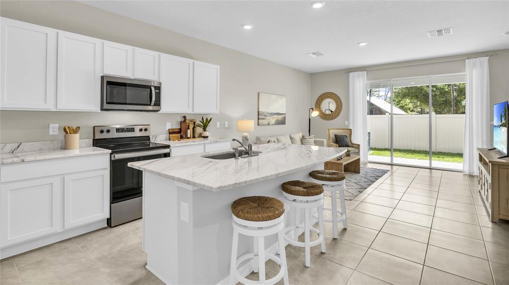 Move in ready! all closing costs paid and special interest rates available with the use of preferred lender until march 31st. contact a new home sales consultant for more details. this two-story, all concrete block constructed townhome has an open concept downstairs that includes a large open kitchen, a powder room, and a large family room that overlooks a covered lanai. the second floor includes a spacious bedroom 1 with ensuite bath, two additional bedrooms, a full bathroom, and a laundry area. this home comes with all appliances, including a stainless-steel refrigerator, built-in dishwasher, electric range, microwave, washer, and dryer. pictures, photographs, colors, features, and sizes are for illustration purposes only and will vary from the homes as built. home and community information including pricing, included features, terms, availability and amenities are subject to change and prior sale at any time without notice or obligation.Townhouse 3 bedrooms - VILLAGE OAKS for Sale