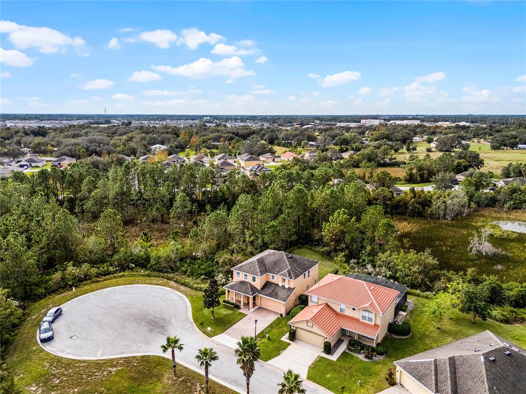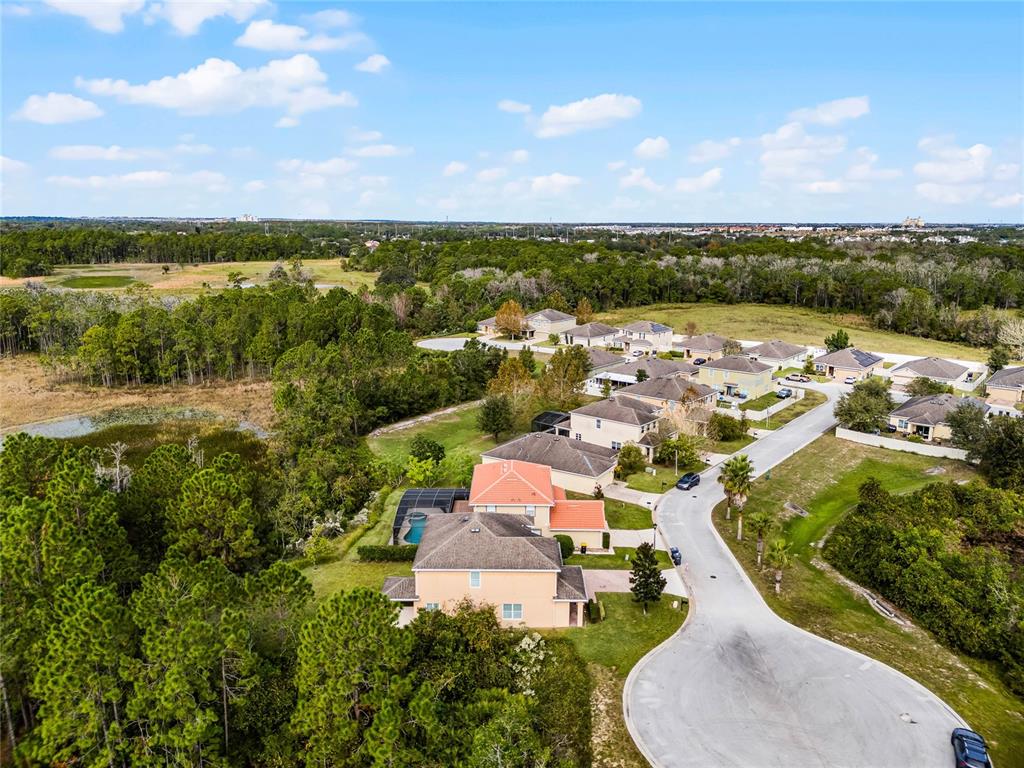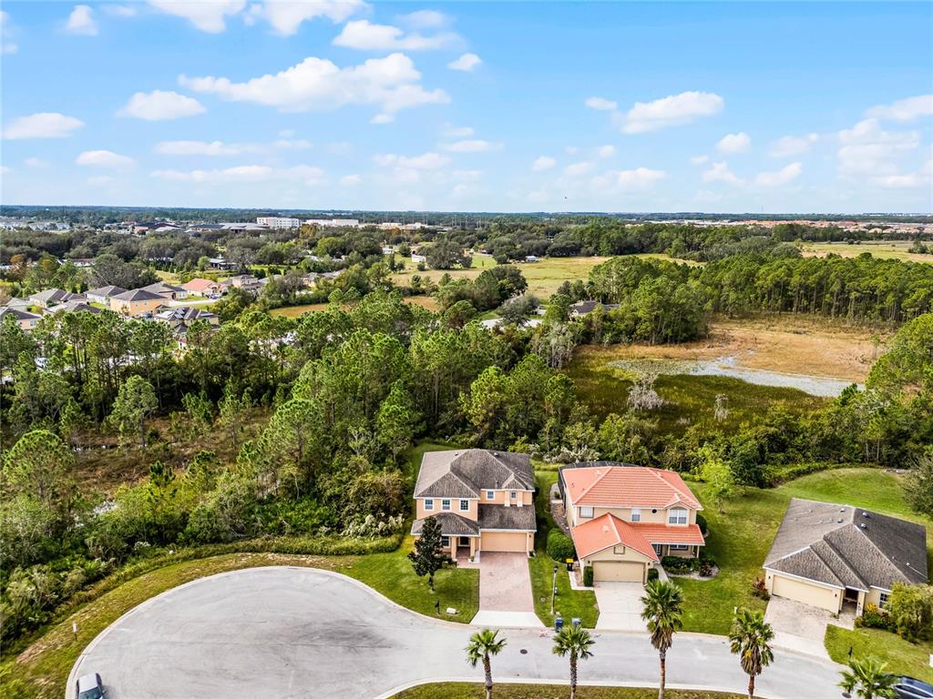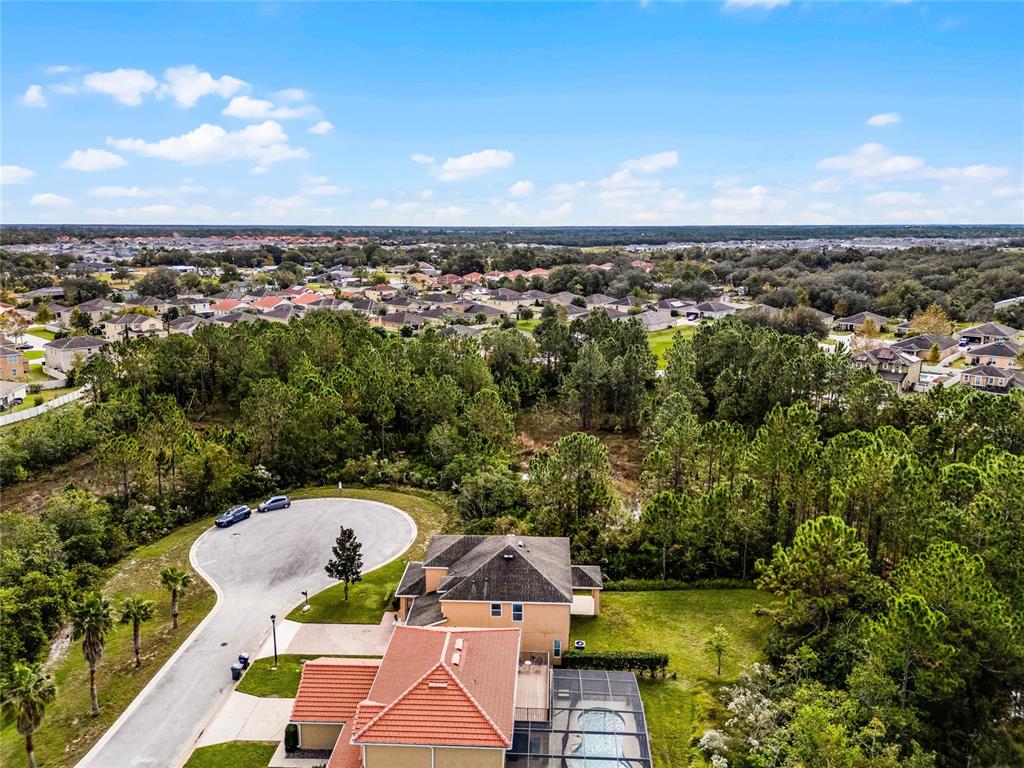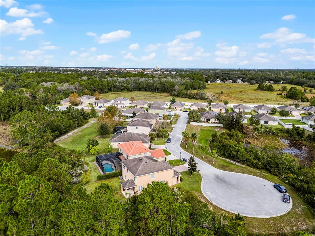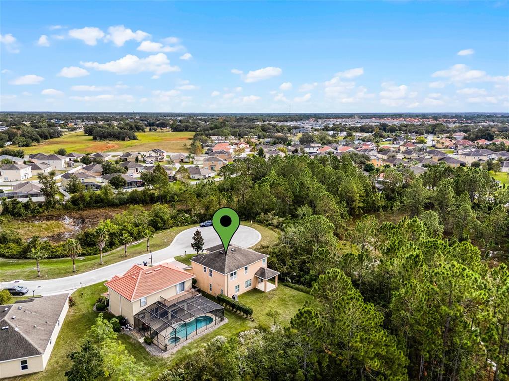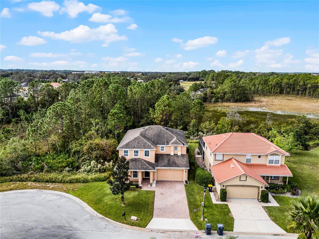 Meticulously maintained, move-in ready 4 bedroom/2.5 bath, plus loft, home on quiet cul de sac! this privately positioned home only has one neighbor. enjoy the 0.22 acre lot with wooded views out the front, back, and side! with almost 2900 sq ft, you will have plenty of room to spread out and entertain. as you enter through the 2 story foyer, you'll find your formal living room/dining room at the front of the home. head back to your spacious great room with sliding doors out to your covered patio and private backyard. the kitchen boasts 42" cabinets with crown molding, granite counters, stainless steel appliances, and an island with seating that overlooks your huge family room! there is also breakfast nook or room for large dining table. ceramic tile floors throughout the entire downstairs. upstairs you will find a large loft, 4 bedrooms, and a laundry room. washer/dryer convey! wood laminate floors throughout, except 2 of the secondary bedrooms which have carpet. the split bedroom plan is ideal for ultimate privacy. the primary bedroom has an ensuite bath with garden tub and separate shower, double sinks, and walk-in closet. the 3 secondary bedrooms share the second full bathroom. other notable features include: a downstairs powder room. lots of storage throughout. 2 car attached garage. pavered driveway. new a/c in 2024, with warranty. and being on the cul de sac near the back of the neighborhood, you don't have through traffic, and plenty of extra parking for guests! this home is conveniently located close to schools, 5 minutes from shopping, and a quick drive to i-4 via champions gate or us-27. make your appointment to view this lovely home today!159 PONTE VEDRA, DAVENPORT, FL 33837