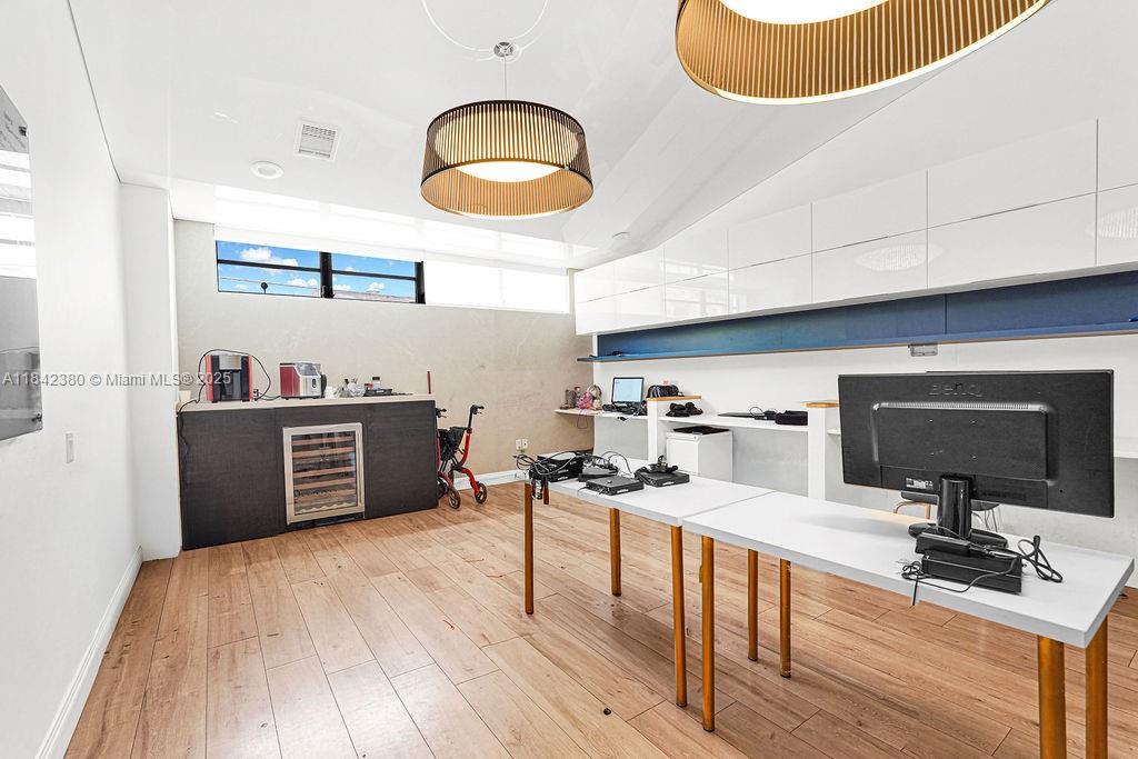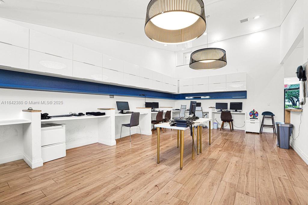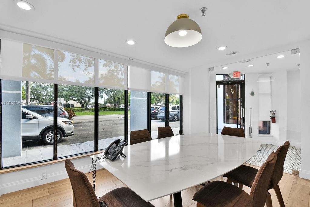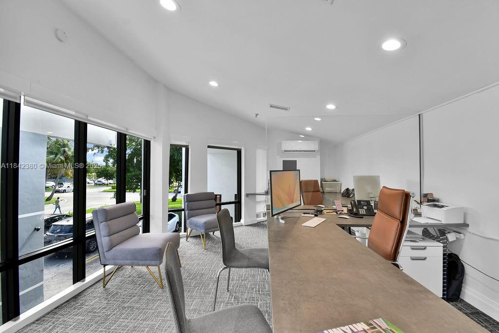 High-end office space fully furnished for lease. located in north miami beach, just off 163rd street. over 1,268 sqft of two-story remodeled and furnished office. executive suite with floor-to-ceiling windows on the second floor and a glass-enclosed conference room on the 1st floor. several workstations are equipped with screens, chairs, tables, and printers. private entrance and plenty of employee and guest parking available.1590 NE 162ND ST, NORTH MIAMI BEACH, FL 33162