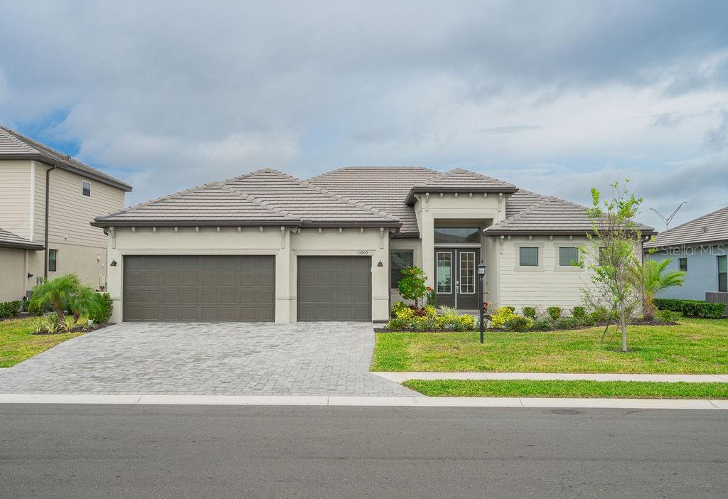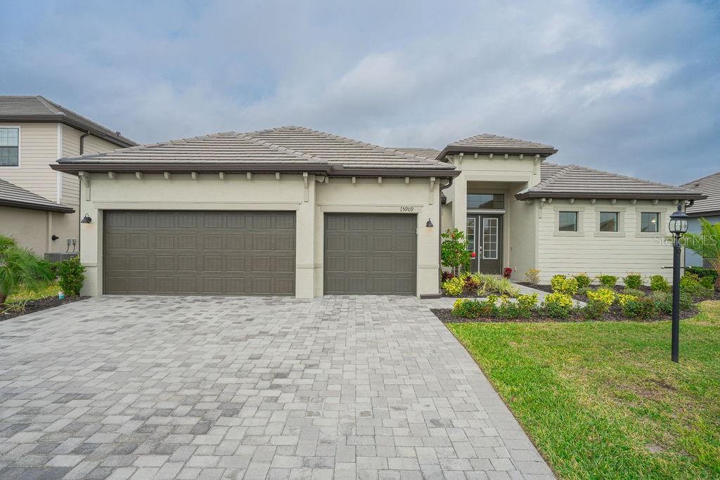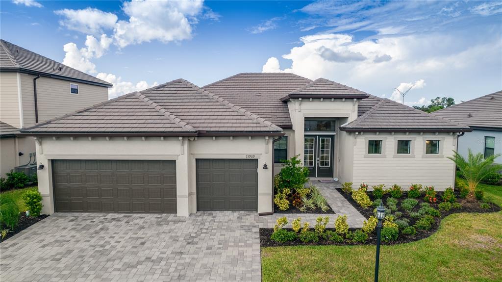 Seller financing options for a new pool! this property qualifies for a 1% lender incentive if using preferred lender lowest priced sunset floorplan, estate series home (80ft wide lot) in lorraine lakes! built in 2023 like new! upgrade this home with your own pool design with still plenty of equity! call agent 2 tina hart about seller pool financing options. welcome to your dream home in the best resort style living community in lakewood ranch! this beautiful 3-bedroom, 3-bath home, sunset estate series- lorraine lakes' most desired floorplan that is no longer being offered by the builder, is an opportunity for you to make it your own! with soaring 10-foot+ ceilings and an open floor plan, it’s perfect for both everyday living and entertaining. enter through a grand 12-foot ceiling foyer into the expansive great room, which features a tray ceiling and four glass panels leading to the spacious lanai. the gourmet kitchen is a chef’s dream, vented hood and cast iron range with a large island that seamlessly connects to the living and dining areas. its elegant quartz countertops are as durable as they are beautiful, making it a perfect space for cooking and gathering. the split floor plan offers the ultimate in privacy. the owner’s suite is a peaceful retreat with two walk-in closets, dual square sinks, an oversized shower, and private access to the lanai. the room’s tray ceiling and spacious layout allow for a sitting area or home office. on the opposite side of the home, two additional bedrooms each have their own full baths and ample storage. the third bedroom’s en-suite bath is conveniently located for future use as a pool bath—ideal for guests. there’s also a cozy bonus room that can be used as a home office, playroom, or den, depending on your needs with solid french doors. enjoy indoor/outdoor living with the enormous covered lainai from living room to the master bedroom. the private backyard is perfect for bbqs and football games with friends and family. at 2,650 square feet, this home provides plenty of space for comfort and luxury. lorraine lakes has 3 pools, 24 hour fitness center, locker room, sauna, pickle ball courts, tennis courts, putting green, beach volleyball court, playground, on-site restaurant, event coordinator, complimentary cafe station, arcade room-no tokens needed, trx room, full size basketball court, social room, a mile radius of lakeview walks with workout stations, and hot tub. this sunset home offers the perfect blend of style, space, and comfort—don’t miss out on making it yours!15909 TRADEWIND, LAKEWOOD RANCH, FL 34211