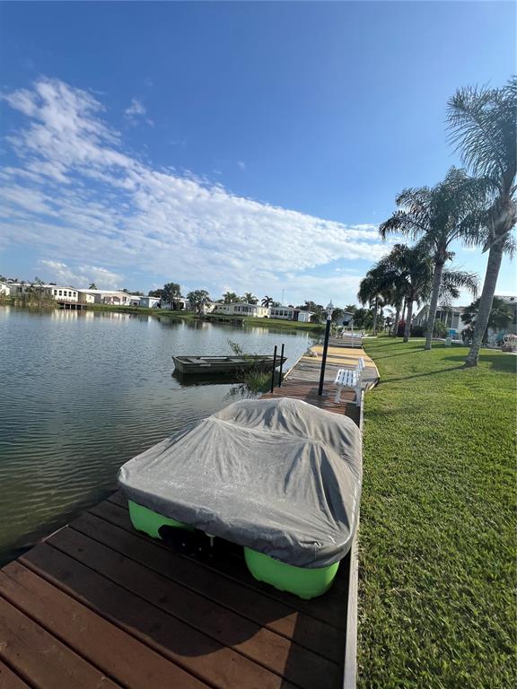 ~oasis village~ 55+community- on the lake w/beautiful dock! paddle boat included. 1992 2 bed 2 bath newly renovated. completely furnished. new kitchen cabinets- dishwasher. new bathrooms. all new lights- fans & electrical outlets. metal roof, brand new hot water heater. pavers, sits on a concrete pad with tie downs. garage (motorcycle size) irrigation pump. utility room. huge front glass enclosed sun room and back porch sun room-enclosed. the back yard has a concrete patio & gorgeous view. pest control for yard included in condo fee. big clubhouse and 2 pool tables for your enjoyment. turn key!1601 US HWY 441 SE #114, OKEECHOBEE, FL 34974
