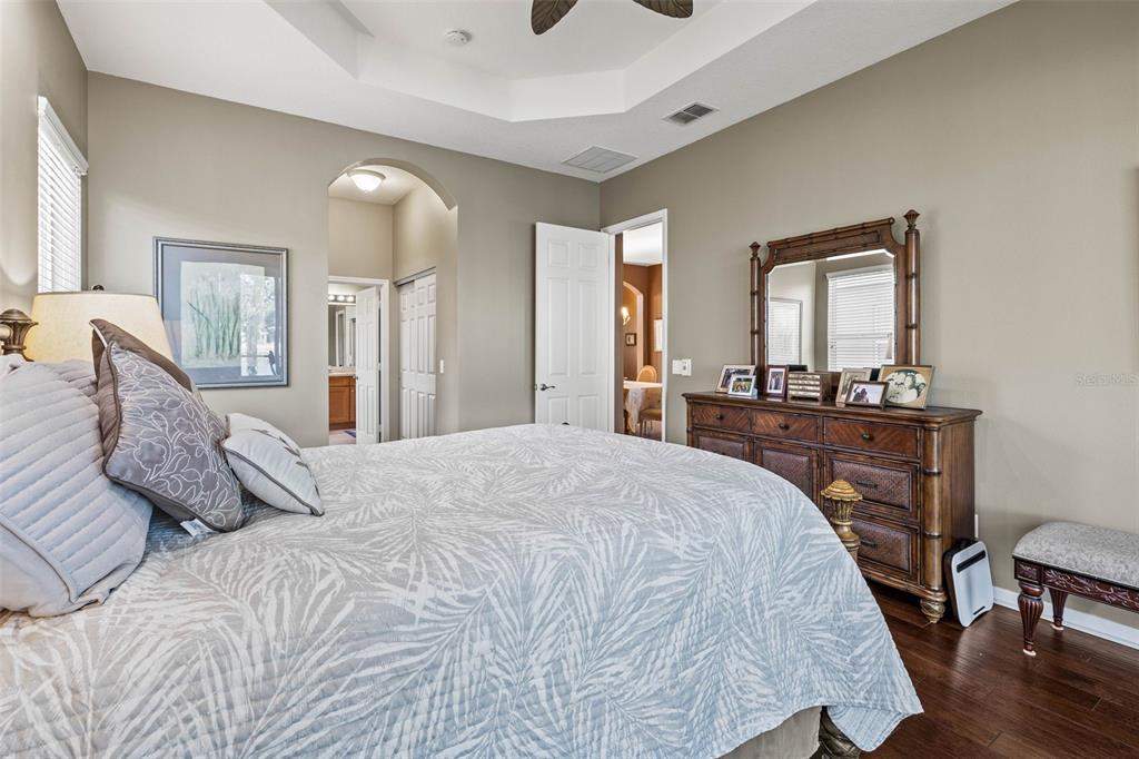 Split Bedroom Walk-In Closet(s)Ceiling Fan(s) Eating Space In Kitchen Stone Counters Open Floorplan Window Treatments Solid Surface Counters Solid Wood Cabinets Primary Bedroom Main Floor Tray Ceiling(s)Exterior Features: