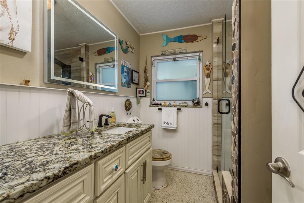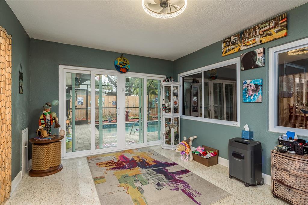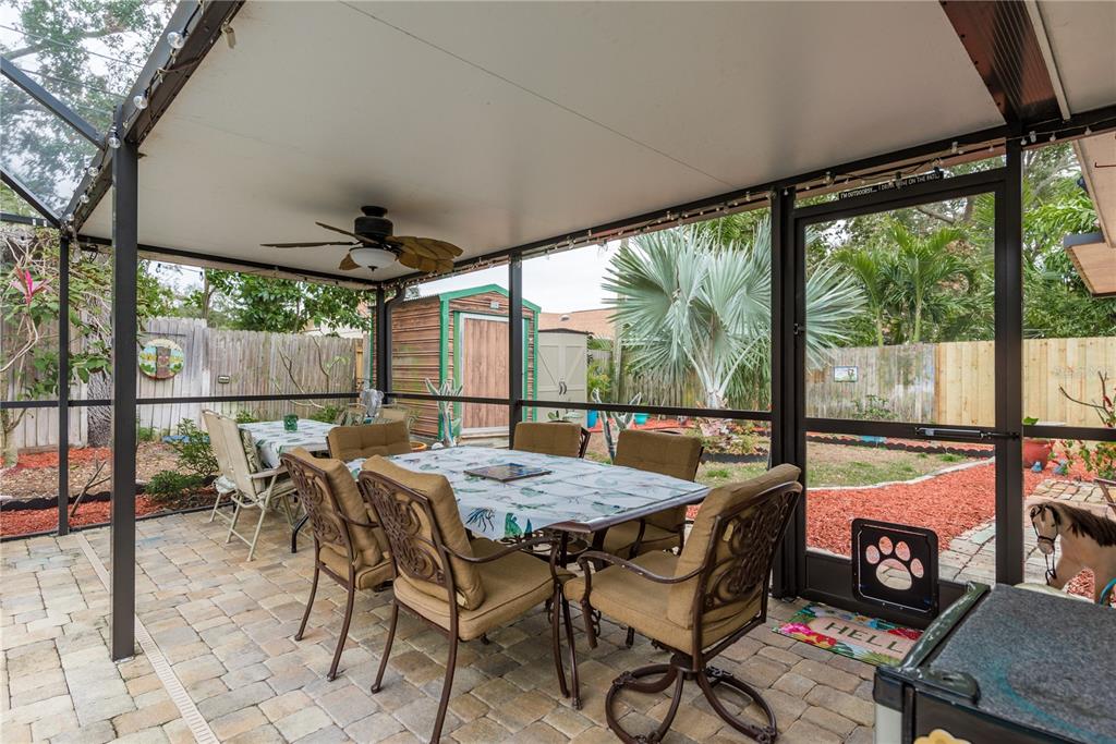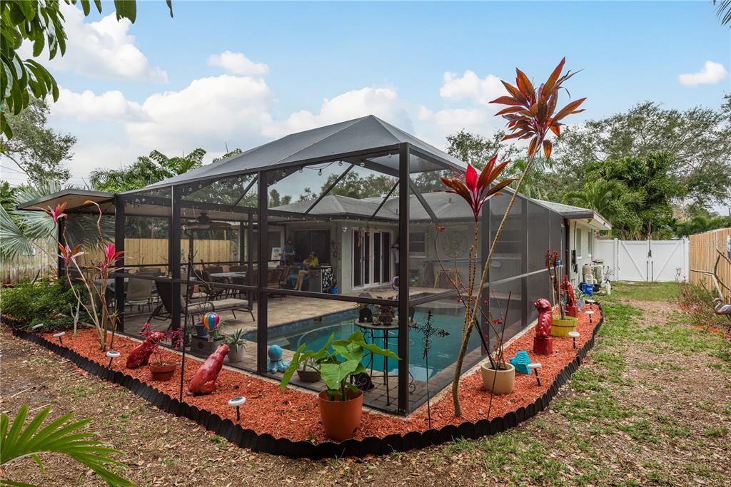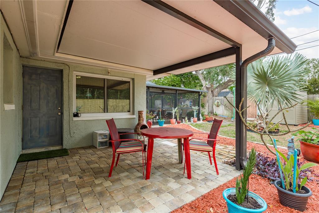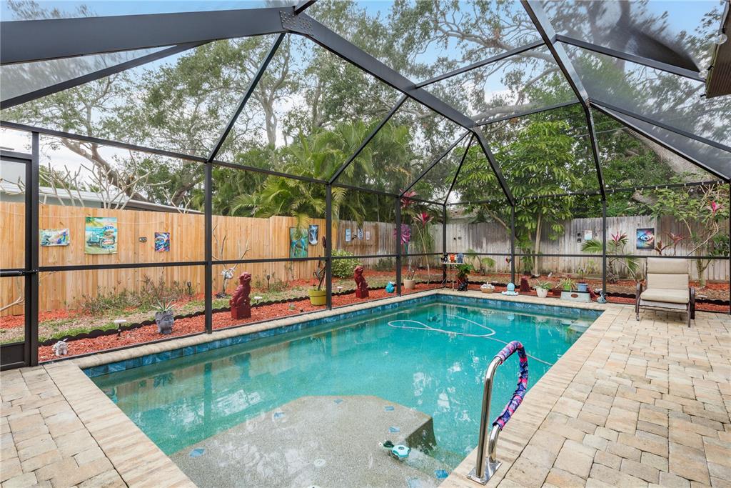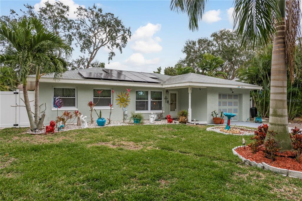This charming 2-bedroom, 2-bathroom home offers 1233 square feet of comfortable living space, plus an office and a 1-car garage. the home features beautiful terrazzo floors and a spacious, fully enclosed lanai with a swimming pool, ideal for relaxation and entertaining. the pool area also includes a storage shed added in 2016. the home is equipped with hurricane-rated windows and doors, installed in 2016, providing added peace of mind. energy-efficient solar panels were added to reduce utility costs, and the electrical panel was updated in 2023. the hvac system was replaced in 2020, ensuring comfort during warmer months. recent updates also include plumbing work in 2023, a new water heater in 2023, and a bathroom remodel in 2021. the kitchen appliances, including the dishwasher, washing machine, and stove, were all replaced in 2021. situated on a fully fenced .16-acre lot with vinyl fencing completed in 2024, this home offers both privacy and outdoor space. the location is exceptional, just minutes from historic downtown dunedin, the pinellas trail, and several award-winning beaches. a perfect blend of convenience, comfort, and character, this home is a must-see!1611 SAN CHARLES, DUNEDIN, FL 34698