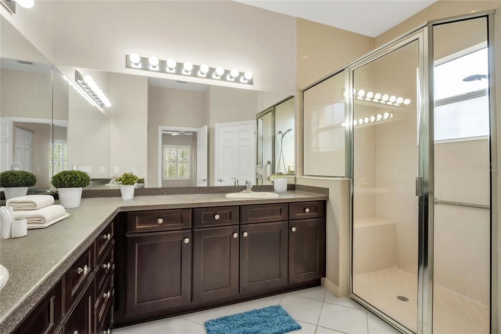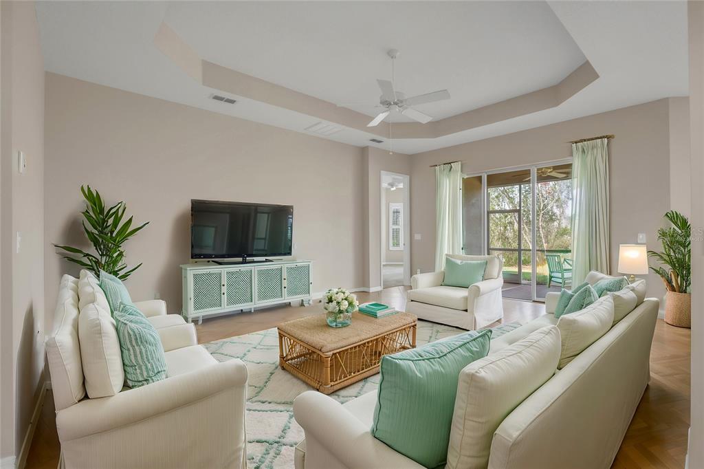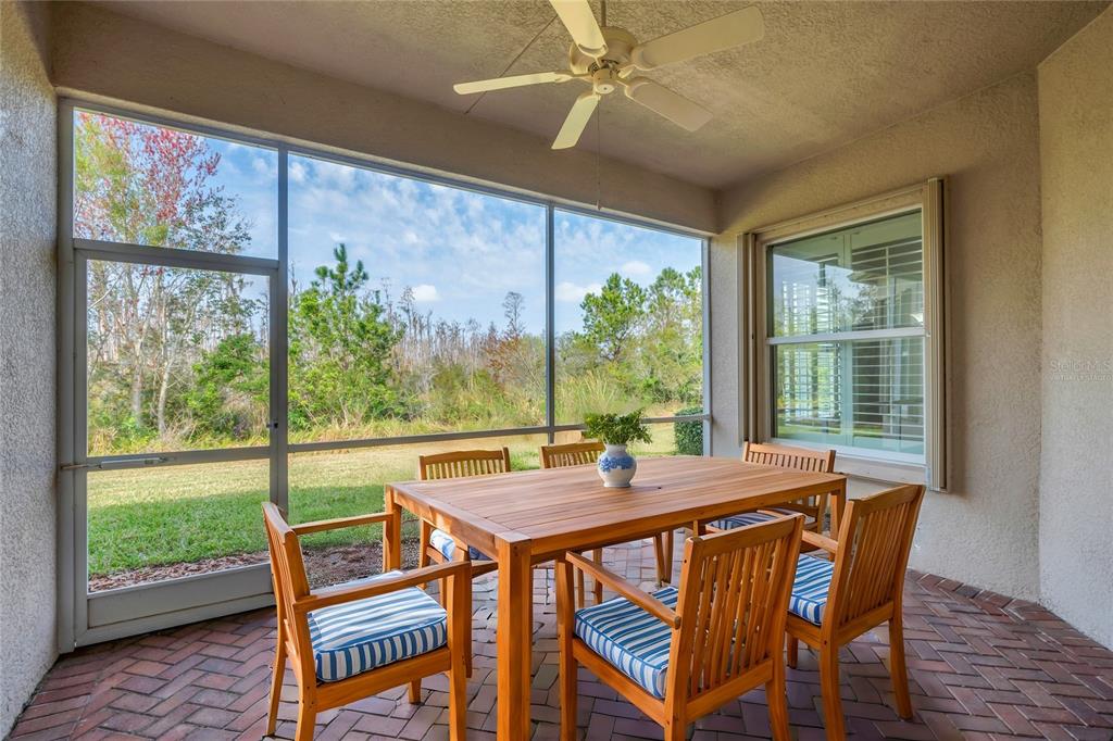 One or more photo(s) has been virtually staged. nestled in the heart of valencia lakes, tampa bay’s premier 55+ resort community, this pristine home offers the perfect blend of elegance and comfort. situated on an oversized, private preserve lot, it boasts complete backyard privacy and serene nature views. as you approach, you’ll be greeted by lush landscaping, a stacked stone border, a barrel tile roof, and a brick-paver driveway—elements that add a touch of class to the home’s curb appeal. upon entering, you’ll immediately notice the airy, open feel created by the 12-foot coffered ceiling in the foyer. the spacious great room features triple 8-foot sliders, allowing abundant natural light and seamless access to the covered, screened lanai—ideal for outdoor relaxation with a private preserve view. the great room flows into the kitchen, making it perfect for entertaining. the “eat-in” kitchen is a chef’s dream with upgraded quartz countertops, a double-bowl stainless sink, an extended 18-inch quartz serving bar, lazy susan, and 42-inch raised-panel white cabinets. the upgraded white appliances, including a french-door refrigerator, complete the look. for special occasions, enjoy meals in the formal dining area just steps from the kitchen, offering added convenience. the expansive primary suite is a true retreat, featuring a coffered ceiling, large walk-in closet, and a private nature view. the luxurious primary bath offers separate vanities, corian countertops, maple cabinetry, and a large walk-in shower with a seat. the oversized third bedroom is brightened by a bay window and offers versatile space—it can serve as a guest room or a den. the second bedroom, located away from the primary suite, ensures your guests enjoy maximum privacy. the second bath includes a tub/shower with a custom glass enclosure, corian countertops, and maple cabinets. the separate laundry room includes a washer and dryer. this home also includes thoughtful upgrades such as a new hvac system, new water heater, luxurious plantation shutters, accordion storm shutters with an interior locking mechanism, rain gutters, and more. just a short 5-10 minute walk to the clubhouse, you'll be in the heart of valencia lakes, one of the most active 55+ communities in the greater tampa bay area. with a 40,000-square-foot clubhouse, 24-hour fitness center, pools, bistro, tennis, pickleball, bocce ball, live shows, arts and crafts, cooking classes, walking paths, and so much more, the resort-style lifestyle is yours to enjoy. come experience this immaculate home and start living your best life today at valencia lakes!16127 CPE CORAL, WIMAUMA, FL 33598
