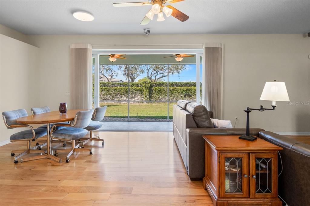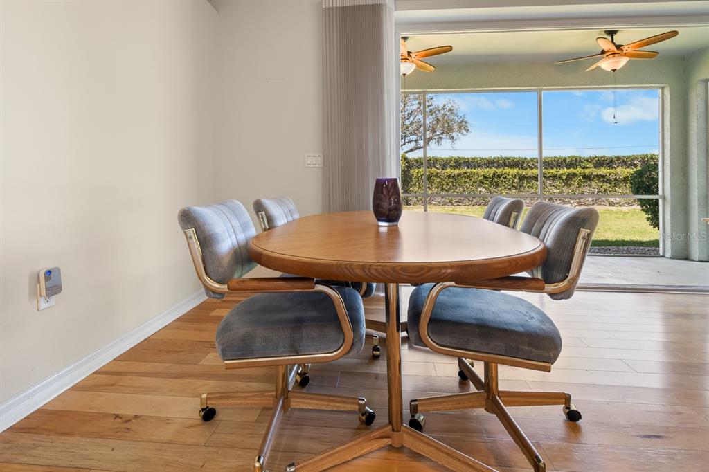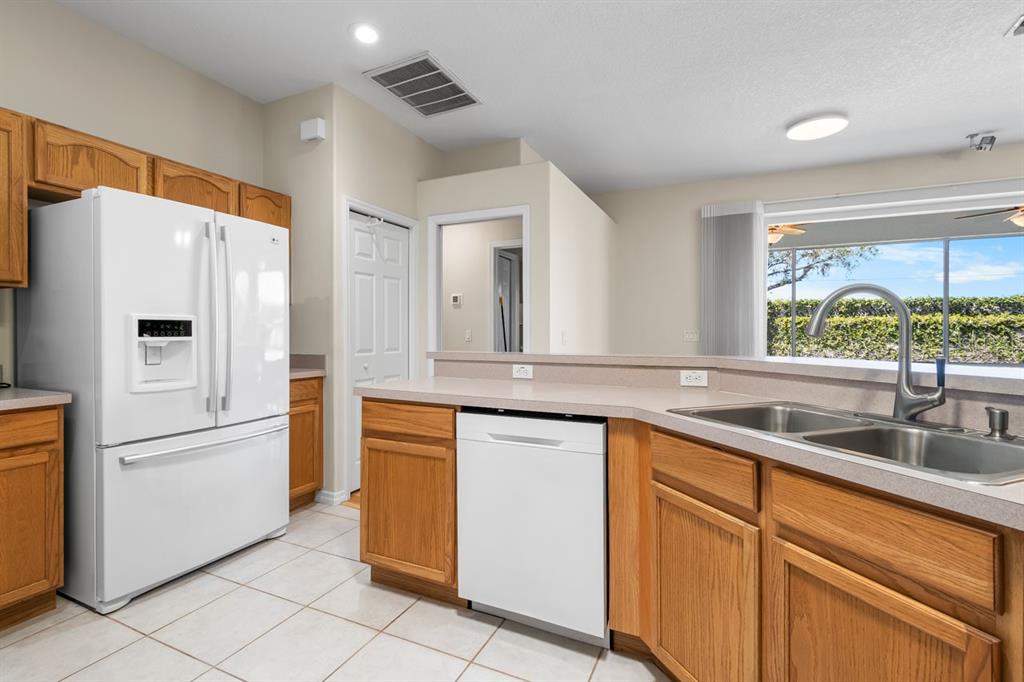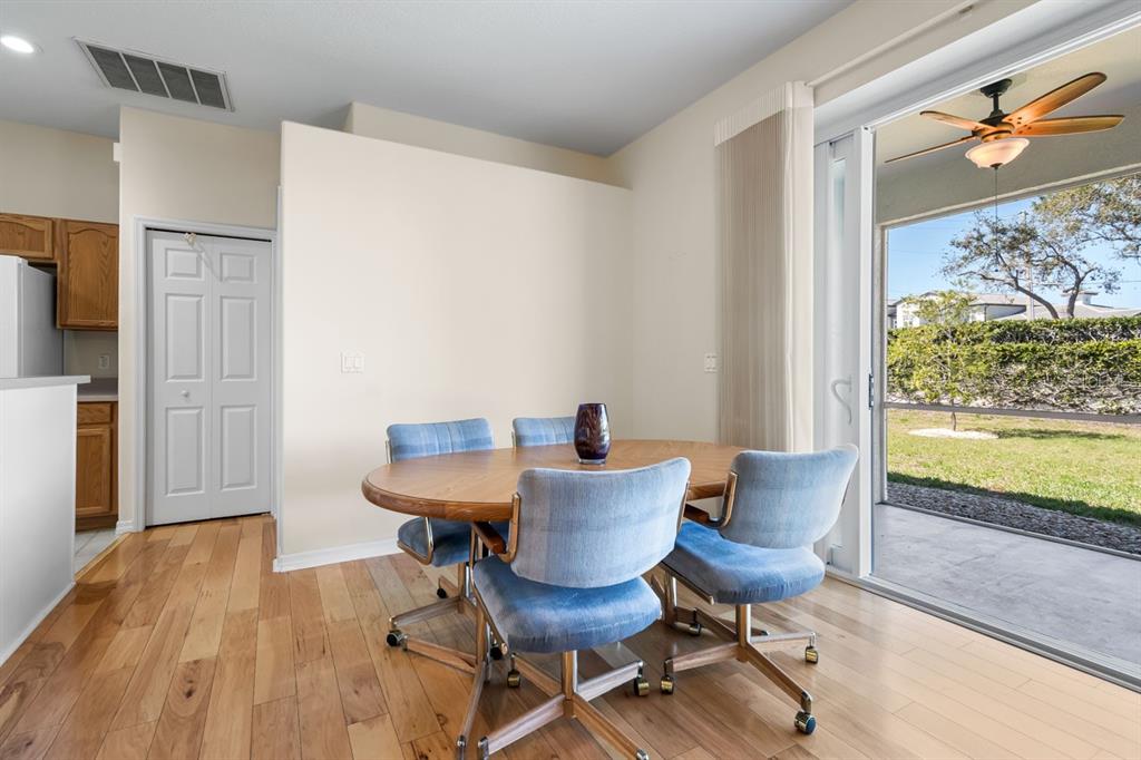Welcome to this charming three-bedroom, two-bathroom, two-car attached garage home located in a golf-friendly neighborhood! new water heater (2024), new water softener (2024), no cdd, and low hoa! this well-maintained property offers a comfortable and functional split-bedroom layout, making it perfect for both relaxation and entertaining. step inside to discover beautiful wood flooring throughout the main living areas, while the wet areas are finished with easy-to-maintain tile. the spacious kitchen features all major appliances, a convenient breakfast bar, and a pantry for added storage. the adjacent dinette area off the kitchen provides a cozy spot for casual dining, while the separate dining room offers the perfect space for formal meals. relax in the inviting living room or unwind on the covered & screened lanai, which boasts wall-to-wall sliders and dual ceiling fans to keep the air flowing on those warm florida evenings. the home also comes equipped with a laundry room featuring a washer, dryer, and a deep sink. the primary bedroom is a true retreat, offering dual walk-in closets and an en-suite bathroom with a dual sink vanity, a shower stall, and a separate soaking tub for ultimate relaxation. both secondary bedrooms feature additional storage above the closets! wind resistant windows sliding glass doors (150 mph winds) bring additional value to this great property! the villages at cypress creek is a vibrant and diverse, planned community embraced by a beautiful championship golf course, the golf club at cypress creek, and a 640-acre nature preserve. don’t miss your chance to make this house your new home!1614 ORACLE, SUN CITY CENTER, FL 33573