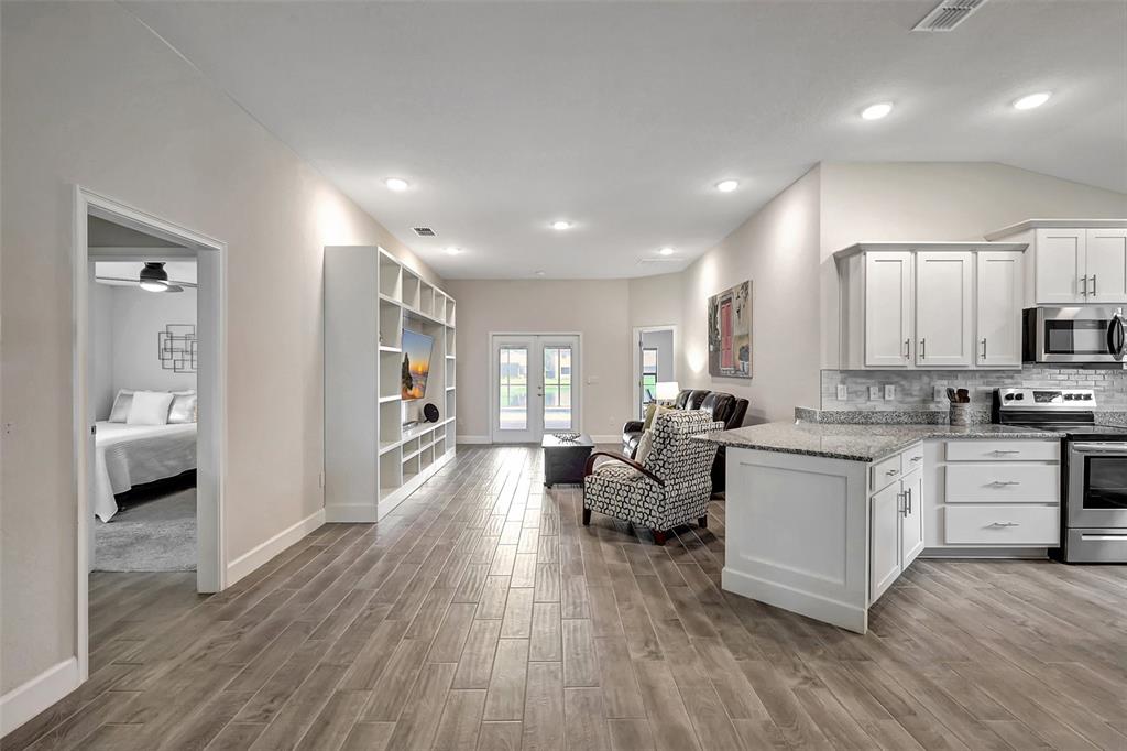 Split Bedroom Walk-In Closet(s)Ceiling Fan(s) Eating Space In Kitchen High Ceilings Stone Counters Thermostat Open Floorplan Window Treatments Solid Wood Cabinets Primary Bedroom Main Floor In Wall Pest SystemExterior Features: