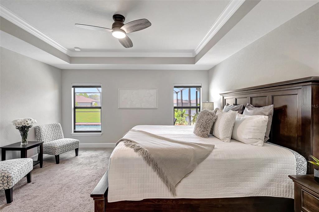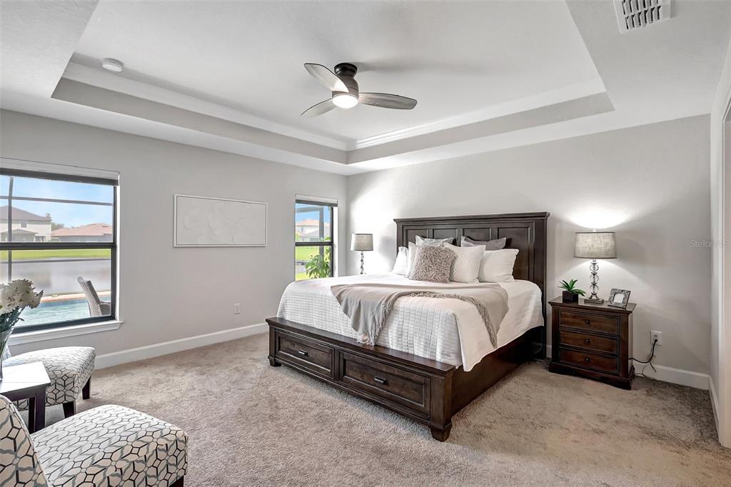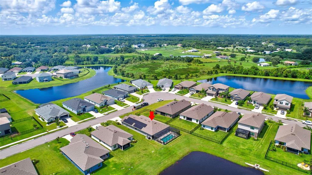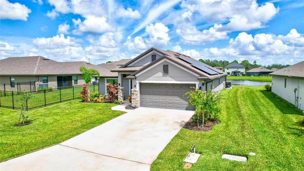 A gem to enter the market in the aviary at rutland ranch in parrish. this amazing two-car garage with 2,191 sq ft, four-bedroom, three-bathroom home is the perfect setting to enjoy the best that life has to offer on the gulf coast of florida, including solar panels for the entire hose. beginning with beautiful curb appeal with its stone trim front face. the front door has a covered porch and single door, accompanied by two side windows to add style and natural light to the entry. entering the home into a lovely hallway, to your right a delightful dining room with room for an eight-seat table. further, the kitchen to the right is a wonderful space, wrapping granite counter tops, white cabinets, granite topped island, pantry, breakfast bar and window to the side of the home for rich natural light. to the left front entry, a true two-bedroom with a wonderful shared bathroom, with double sinks and bath/shower tile. in the heart of this impressive open floor plan is the charming living room area with incredible views through two glass doors of the covered lanai, heated pool, and splendid pond. in the rear of the home, the third ensuite bedroom with side facing window, walk-in closet and full bathroom, including floor to ceiling walk-in shower and window. in the right rear of the home the master suite, carpeted with two windows facing across the pool and pond in the rear of the home, crowned tray ceiling, walk-in closet, ensuite master bathroom with long-plank vinyl flooring, double-sink counters, floor to ceiling tile walk-in shower. the utility/laundry room has a large sink, counter space and cabinets for additional storage. two car garage. a glorious covered paver area for chilling out of the sun opening to the paver pool deck and salt water pool with sun shelf and large space for sitting out in the sun. you have a nice yard in the back of the pool cage with pond beyond for creating a unique landscape or fencing for animals. the aviary has top-notch amenities with larger club pool having covered seating along a pleasing pond view. there are two pickle-ball courts and a half-court basketball area with additional seating areas. this neighborhood is settled in a fresh growing area, near north river ranch, top notch schools, shopping and close to fort hamer park, where you can port boats and be on the manatee river or head out to the bays and the gulf of mexico. equally located to st. pete to the north, sarasota to the south, lakewood ranch, anna maria island to the west and an hour to tampa for your pro scene and city life events. we have some of the best beaches in the country in this stretch for your ocean dreams. don't let this one slip away from you.16162 61ST E, PARRISH, FL 34219