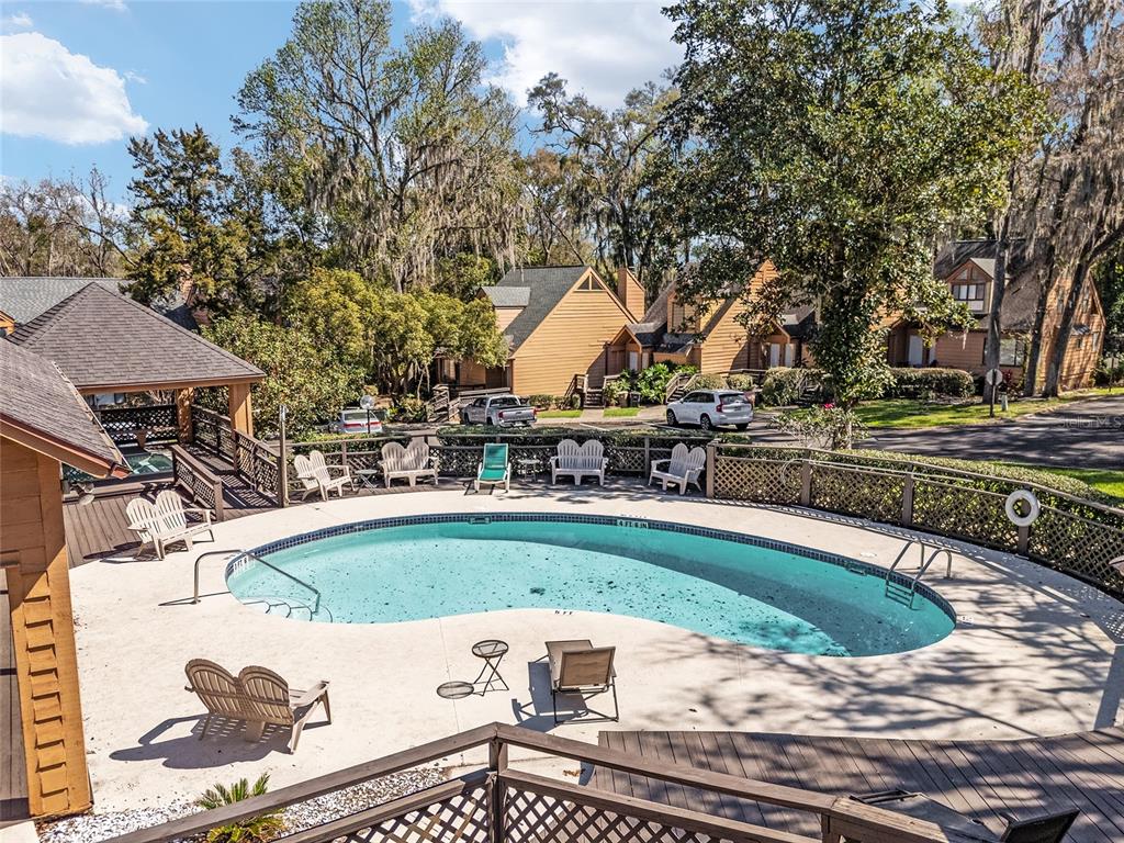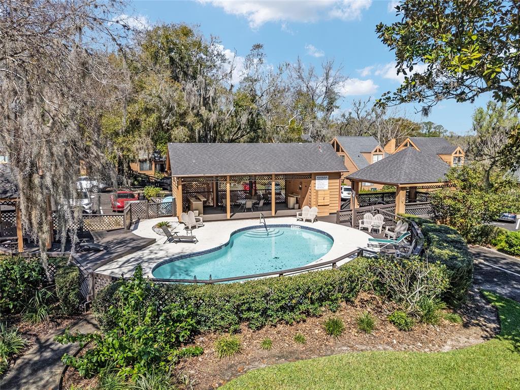 Welcome to park place of ocala, a quaint, gated community, minutes to the downtown ocala square. this 2 bed, 2 bath end unit townhome has a 2022 hvac and 2020 roof. the main floor has the guest bedroom and bath, the living room has a fireplace and built-ins with a lot of natural light, high ceilings and deck access. the kitchen has plenty of cabinets and a wet bar, upstairs primary with ensuite, two vanities and walk in shower. come check out this cute community with pool and hot tub. great location, convenient to everything; restaurants, shops, hospitals, schools and more, at a great price with tons of potential!Townhouse 2 bedrooms - PARK PLACE for Sale