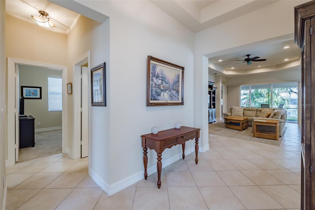 Price reduction-below market value! gl homes built palazzo, 2191sf under a/c with 3 bedrooms, 3 bathrooms, an office/den, 2.5 car garage, and a great northeast water view from the screened in lanai. on approach, you are greeted by manicured florida-friendly gardens, with garden lights leading to a large screened-in portico and a full-length hurricane glass double french-door entry. the spacious foyer opens with a 10’-to-11’ tray-ceiling. forward of the foyer lies a spacious open floor-plan anchored by a generous great room with 10’-to-11’ tray-ceiling, recessed lights and ceiling fan. the great room has direct views of the dining room, kitchen, dinette, lanai/screen-room, and the water beyond. a convenient pet fence is accessible through the fully covered lanai. behind the great room lies a generous kitchen that features 42” solid maple cabinetry, and granite counters topped by a stone and glass backsplash. the well-appointed kitchen boasts a stainless ge range and microwave, along with a lg refrigerator and dishwasher. the dinette comfortably seats four persons providing a great view of the water. the dining room easily seats 8 persons and features a transitional chandelier. the sizeable primary bedroom is truly a sanctuary with a beautiful water view, a high tray-ceiling, two walk-in closets, lighted ceiling fan, an additional adt security panel, and a very large ensuite bathroom. the ensuite bathroom has two large separate vanities with granite counters capped by wall-to-wall mirrors and a linen closet. a large tiled walk-in shower with full shower bench and separate water-closet housing the commode makes this ensuite exceptional. bedrooms 2 and 3 are at the front of the house as is the 2nd full bathroom with a tub/shower combination. bedroom 3 features a murphy bed which makes this space multi-functional. opposite the guest bedrooms is the office/den with double french-doors and tiled floors. the office/den has a lighted ceiling fan and two large windows giving unobstructed views to the front gardens and beautiful florida blue skies. the laundry room features a ge top load washer and dryer and a full-size utility sink. bathroom #3 features a tiled glass shower with plentiful storage. this home features 17x17 sf tile on the diagonal throughout save for the three bedrooms which are carpeted. the exterior of the home was freshly painted in 2024. the oversized garage will accommodate two automobiles and a golf cart. environmental comforts are provided by a goodman hvac heat pump and an eaton complete home surge protection unit. the home is protected by accordion hurricane shutters and front/back gutters. seize the day and live your idyllic life in this exceptional home in valencia lakes, tampa bay’s premier 55+ active adult community. this sought-after resort style community has an amazing 40,000sf clubhouse offering entertainment shows, dances, over one hundred clubs, a 5,000sf 24/7 state-of-the heart fitness center, resort-style pool, 5 lane-lap pool, resistance pool, spa, steam & dry saunas, 2 multi-purpose fitness rooms, games rooms, 7 pickleball courts, 6 usta har-tru clay tennis courts, bocce, shuffleboard, basketball half-court, softball field, rv & boat storage facility, garden plots, dog park, and a venerated memorial honor circle. conveniently located to excellent hospitals, downtown tampa, tampa airport, eclectic st. petersburg, and a short drive to disney, cruise ports, sarasota, and some of the best beaches in the country!16243 CPE CORAL, WIMAUMA, FL 33598