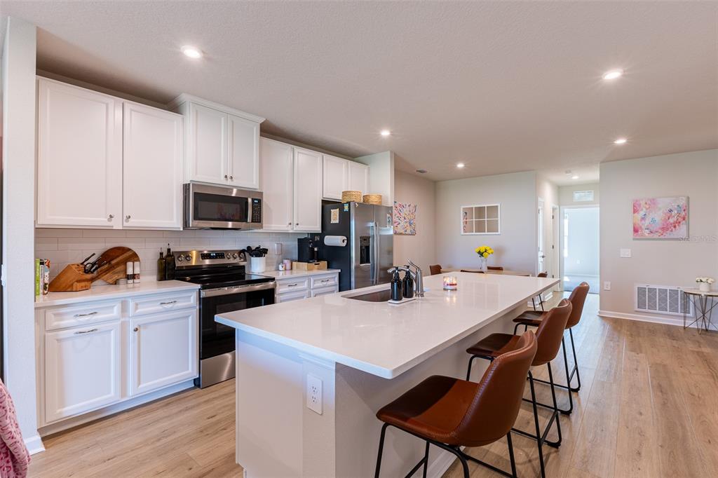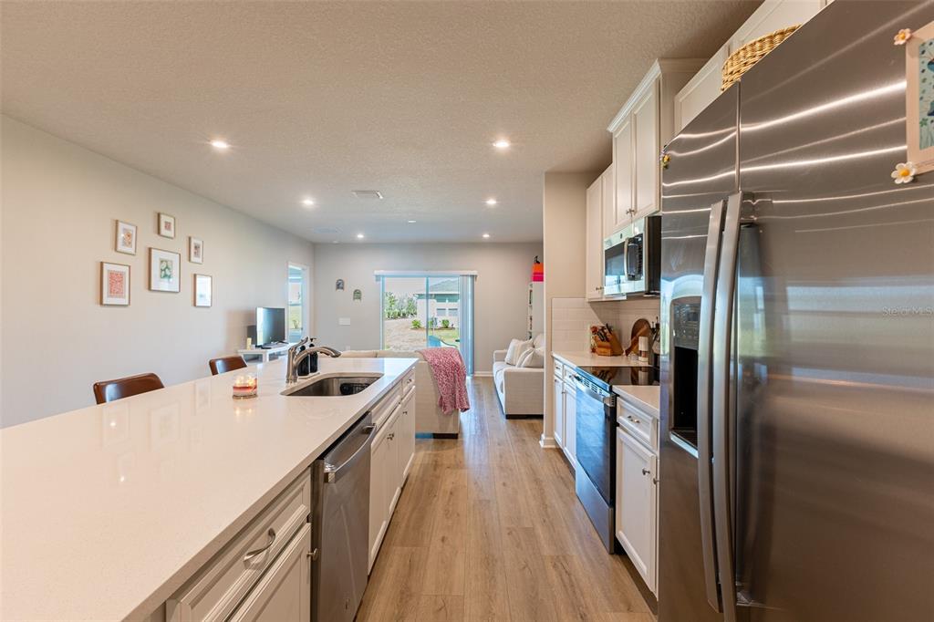 Step into this stunning, move-in ready 2024 built villa located in the sought-after community of “the palms at westport”! tucked away at the end of a peaceful, quiet corner lot on a cul-de-sac, this spacious 1,506 sq. ft. home offers 3 bedrooms, 2 bathrooms, and a 2-car garage — all designed for modern living and comfort. as you step inside, you’re greeted by an open-concept great room that flows seamlessly throughout the home. the kitchen is the heart of the space, featuring a large quartz center island, crisp white wood cabinetry with elegant crown molding, pull-out drawers for easy access, and gleaming stainless steel appliances. the tiled backsplash adds a touch of style, while the deep pantry provides plenty of storage. whether you're cooking a gourmet meal or enjoying a casual breakfast, this kitchen will inspire you. the high ceilings, laminate and tile flooring, and recessed lighting give the entire home a bright and airy feel. the spacious living room offers sliding doors that lead out to the covered patio area, perfect for relaxing or entertaining guests. the adjacent dining room, conveniently located just off the kitchen, makes meal time a breeze. the master suite is a true retreat, featuring an ensuite bathroom with dual quartz sinks, a walk-in shower, and a large walk-in closet to keep everything organized. the two additional bedrooms are generously sized with oversized closets, offering plenty of room for storage or personal space. the guest bathroom includes a tub/shower combination with beautiful tiled details. built with durability in mind, this villa also comes with hurricane shutters for added peace of mind during storm season. the oversized corner lot provides extra outdoor space, and the extended paver driveway and walkway add to the home's curb appeal. in addition to the fantastic home itself, this community offers a variety of amenities that make every day feel like a vacation. the centennial park recreational center features basketball, pickleball, volleyball, a fitness center, and even a disc golf course. there's also a full range of outdoor sports fields, including baseball and soccer, to keep active lifestyles in mind. with a low hoa fee of just $167.84 per month, you'll enjoy affordable maintenance without sacrificing quality of life. the home’s central location is close to shopping, schools, the town center mall, the charlotte baseball stadium, and just a short drive to englewood beach and the sunseekers waterfront resort. don’t miss out on the chance to own this gem! call today to schedule your private viewing and start the next chapter in your life at the palms at westport!Villa 3 bedrooms - PALMS/WEST PORT 1A for Sale