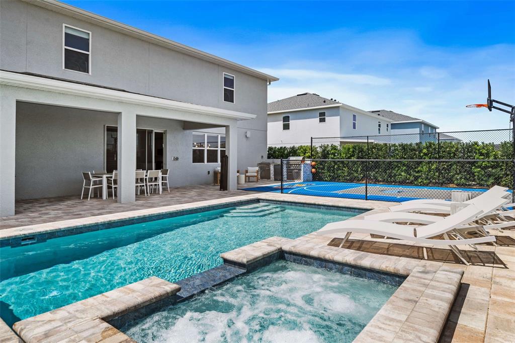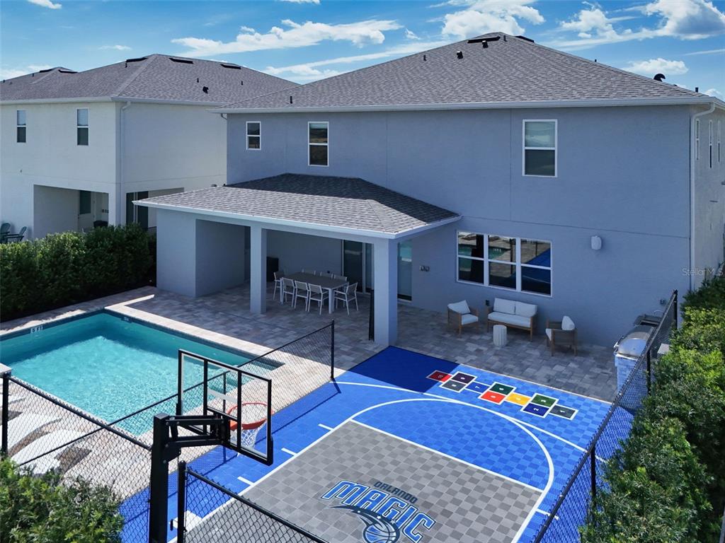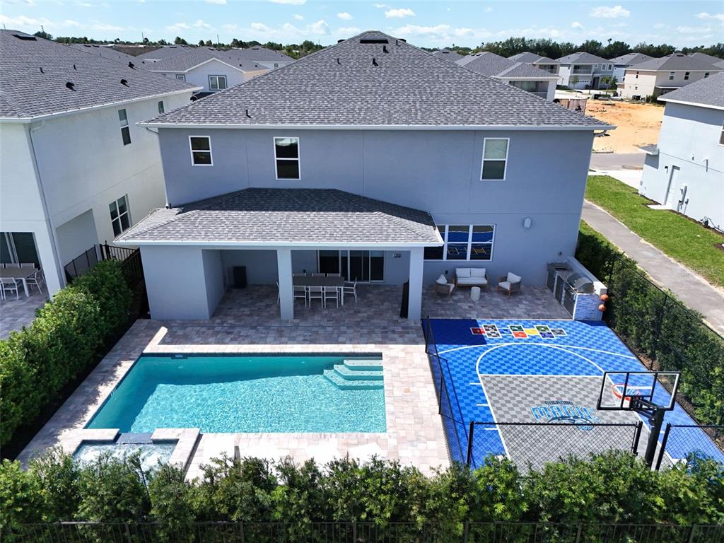 Welcome to this spectacular new home in eden gardens resort, a recently completed luxury residence meticulously designed for upscale short-term rentals. step inside to experience exquisite finishes and elegant furnishings throughout. outdoors, enjoy a private basketball court, a stunning pool and spa with covered seating areas, and an outdoor kitchen, all surrounded by mature trees for enhanced privacy. inside, the home features nine beautifully decorated bedrooms, spacious living areas, a luxurious game room, and top-tier finishes. the charming themed bedrooms add a playful touch. ideally located near orlando’s world-famous theme parks, shopping, and major roadways, this home is a must-see. the listing agent, who also manages the property, is available to provide income details upon request. please note that all measurements and hoa information are approximate and should be verified by the buyer or their agent.165 GOLDEN NOBLE, KISSIMMEE, FL 34747