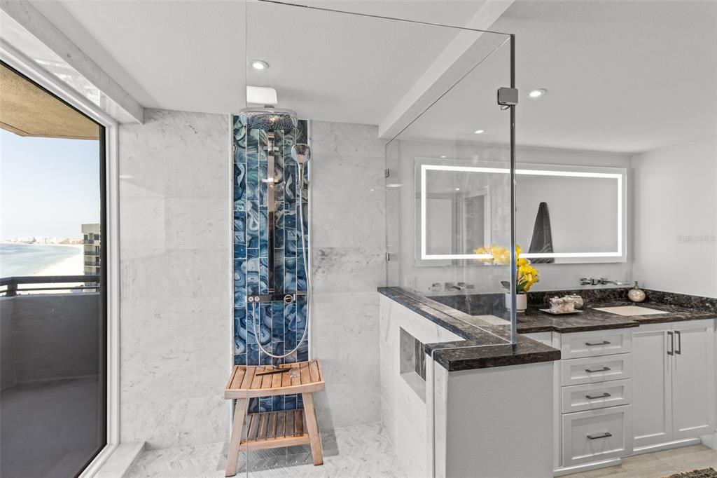 Gulf front with yacht slip. 50 steps to the sand. 1/2 mile each direction from public beach access for a secluded beach feel. milestone and reserve study done and fully funded. completely rebuilt unit in 2020-2021 . one of the best run associations in the area. only $ .71 per sq ft for hoa fee. not many can compete with that. exceptional design meets breathtaking panoramic unobstructed gulf views from this stunning 144-foot penthouse balcony, perfectly positioned between the crystal-clear gulf and the intracoastal waterway. one of the few residences offering both beachfront and marina front, this rare gem is just a few steps to the sand and includes a deeded yacht boat slip on the marina side. located in the prestigious dan’s island on clearwater beach’s sand key, this penthouse was completely reimagined in 2020 with the finest materials, including labradorite and alexandrite stone, california redwood, italian marble, and volcanic limestone. every detail exudes luxury, from backlit feature walls and waterfall countertops to baseboard lighting and glass accents. the spacious living area features a wood-burning fireplace, creating a warm and inviting ambiance with stunning gulf views as the backdrop. the spa-like master bathroom is a true retreat, featuring a soaking tub, multi-spray shower, private sauna, and integrated color light therapy for a serene and customizable experience. outfitted with victoria + albert fixtures, this space blends timeless elegance with modern comfort. the reconstruction also included upgraded electrical and plumbing, seven hurricane-rated pgt sliders with turtle glass, and remote-controlled blackout shades. spanning the entire northwest corner of the building with no shared walls, this residence offers an unmatched level of privacy. expansive wraparound terraces showcase sweeping gulf views and the iconic clearwater beach skyline, free from the obstructions common in neighboring high-rises. residents of dan’s island enjoy world-class amenities, including a beachfront clubhouse, state-of-the-art fitness center with ocean views, an oceanfront pool and spa, outdoor grilling stations, and a marina. additional recreational features include a racquetball and basketball court, ensuring an active lifestyle. the property also features 24/7 security with an on-site guard, providing peace of mind for residents. this penthouse includes one prime under-building parking space, a private storage room on the garage level, and an additional storage closet on the penthouse level, with ample guest parking available. perfectly positioned for those seeking the ultimate saltwater lifestyle in tampa bay, this one-of-a-kind residence embodies coastal luxury at its finest.1660 GULF #PH2, CLEARWATER BEACH, FL 33767