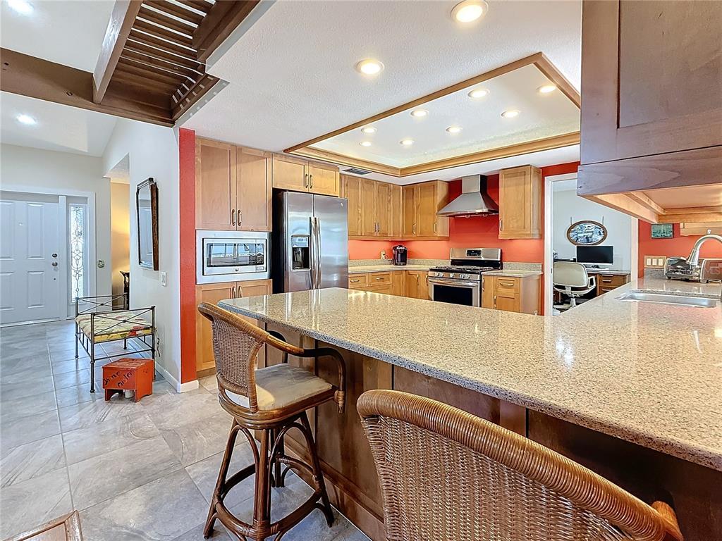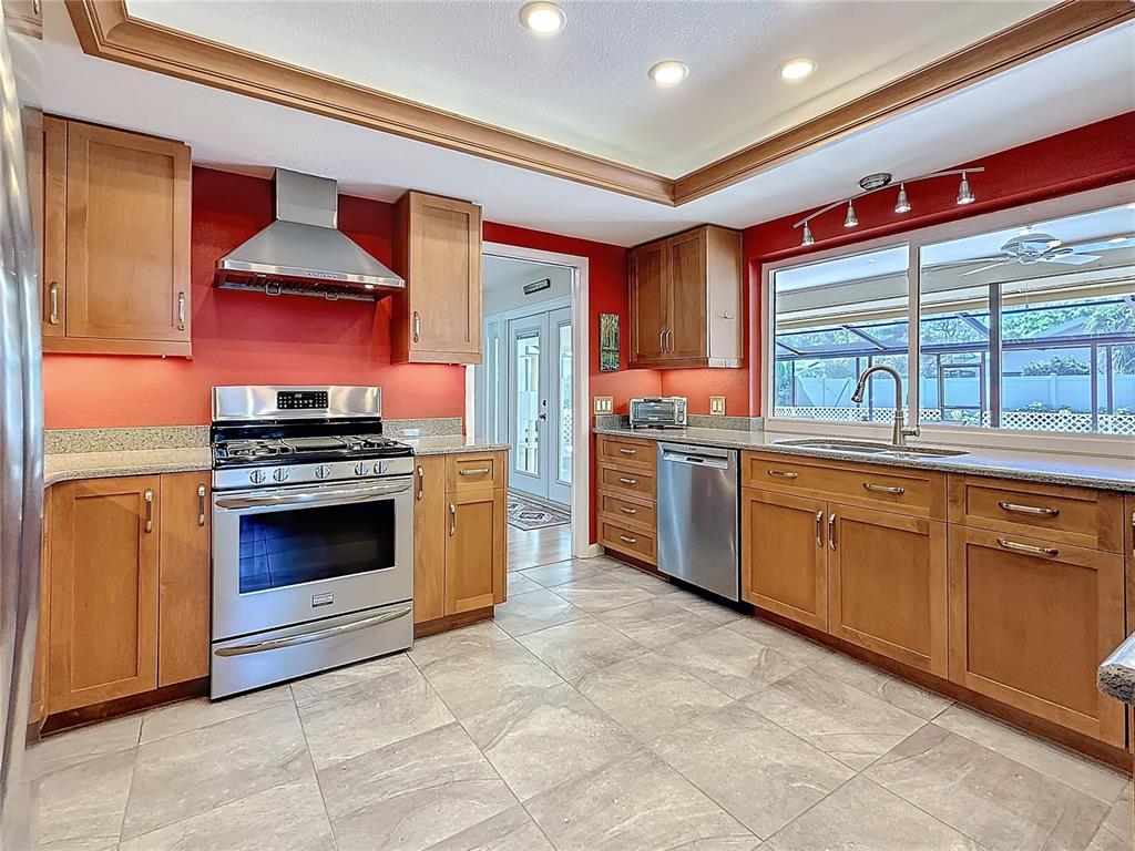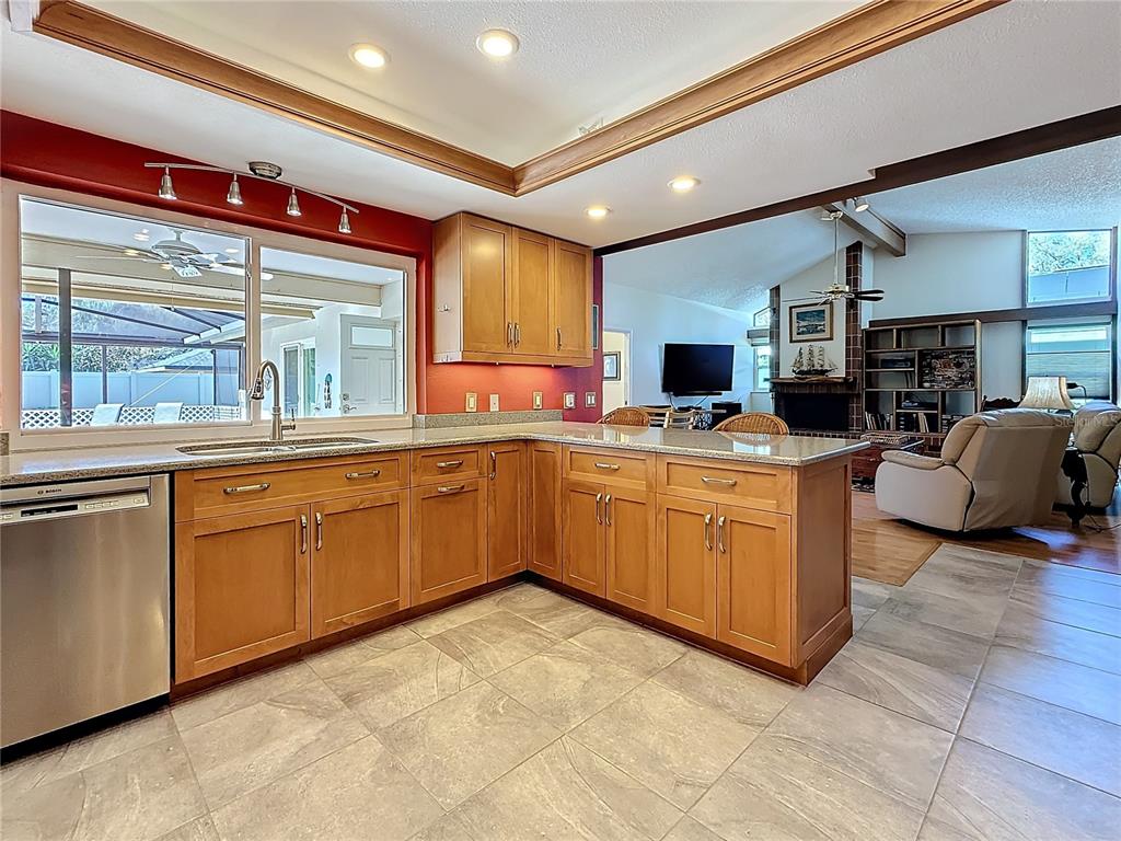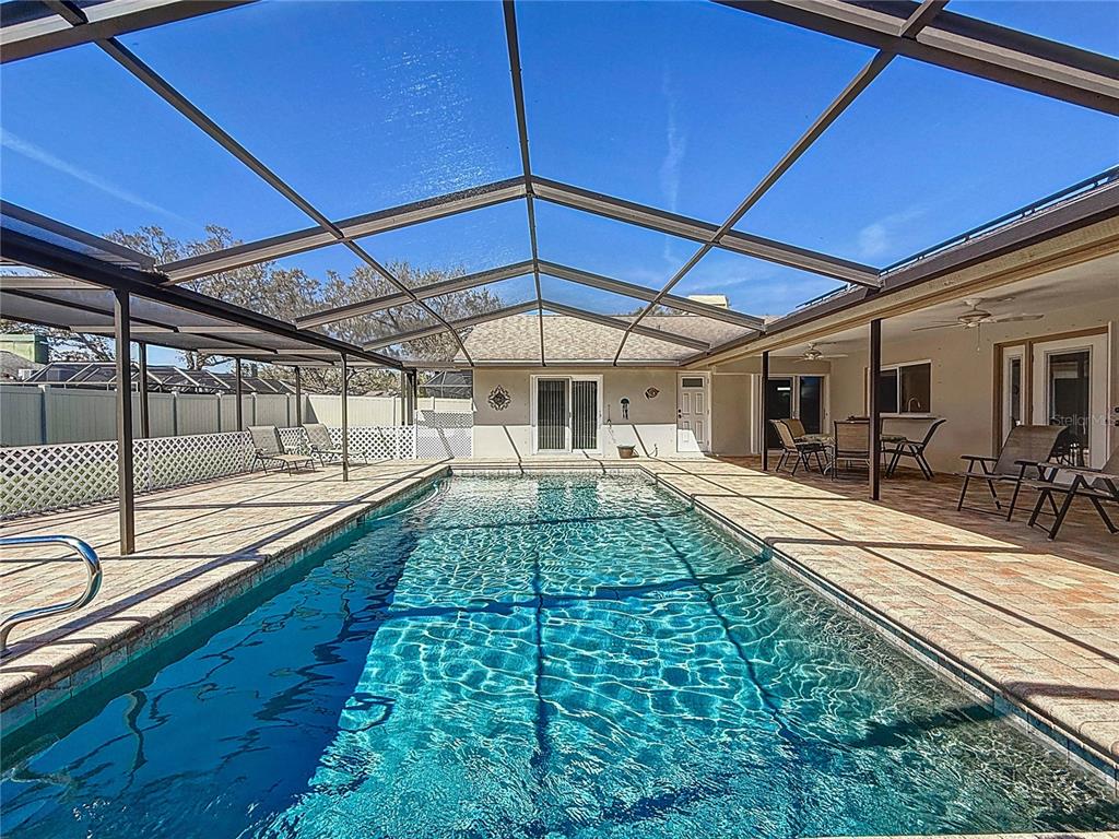 Welcome to your inviting new home featuring 3 bedrooms and 2 bathrooms, complete with a refreshing pool. nestled in desirable coachman ridge, this property boasts an array of impressive features. step inside to discover an updated kitchen with elegant wood cabinets, beautiful stone countertops, and updated appliances, including a gas range. the kitchen seamlessly flows into a spacious great room, highlighted by soaring cathedral ceilings and a wood-burning fireplace. this expansive area is perfect for both family gatherings and casual meals at the breakfast table. the home also includes a generous living room and a separate dining room, which is currently being used as an office and features french doors that lead to the lanai. the home wraps around an extended screened-in, pavered lanai, with a sparkling pebble tech pool. it's an ideal space for entertaining family and friends, featuring both covered areas and ample room for sunbathing. retreat to the primary suite, which boasts a large walk-in closet and an updated bathroom with a spacious walk-in shower, a separate tub, and a high-profile double sink vanity. the thoughtful split floor plan places two additional bedrooms on the opposite side of the house, along with a convenient pool bath, ensuring privacy for everyone. enjoy low-maintenance living with no carpeting throughout the home. new impact windows and sliding doors provide added security and peace of mind. the seller-owned energy-efficient solar panels and city gas for the stove, dryer, and tankless water heater offer significant savings on utility bills. coachman ridge is ideally situated in mid-county, just 20 minutes from world-class beaches and 25 minutes from two major airports. the community is bordered by the progress energy trail and the ream wilson trail leading to safety harbor. residents can take advantage of a lovely community park featuring tennis courts, handball, basketball, and a playground, along with a footbridge leading to the long center recreational complex. plus, you're less than half a mile from baycare stadium and a variety of shopping options. don’t miss out on this incredible opportunity—this home won’t last long!1664 RDG TOP, CLEARWATER, FL 33765