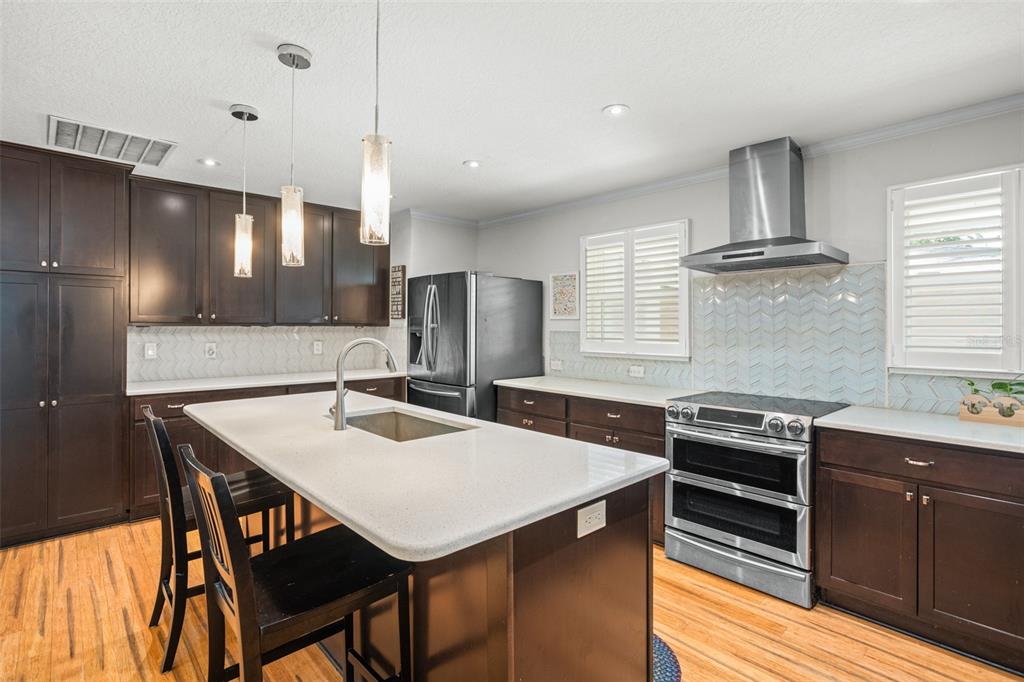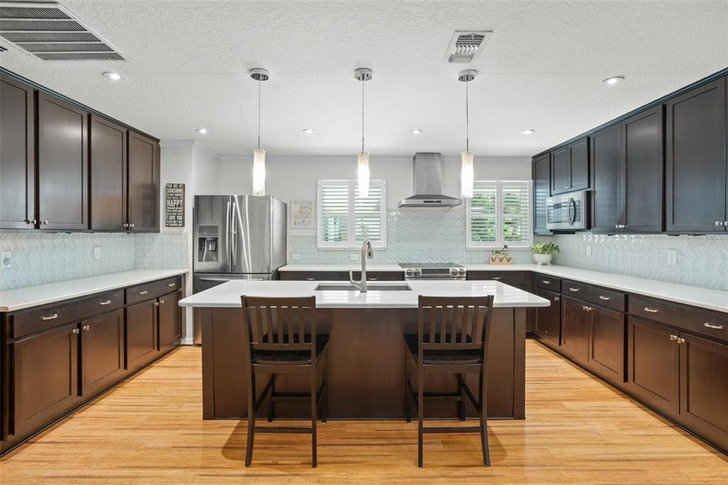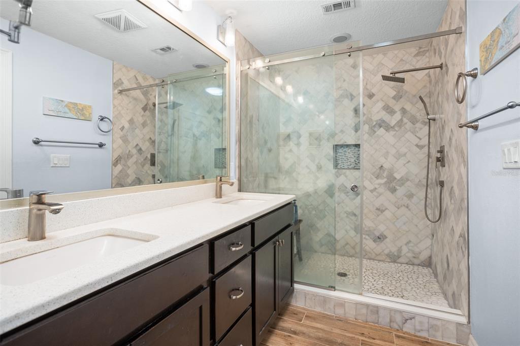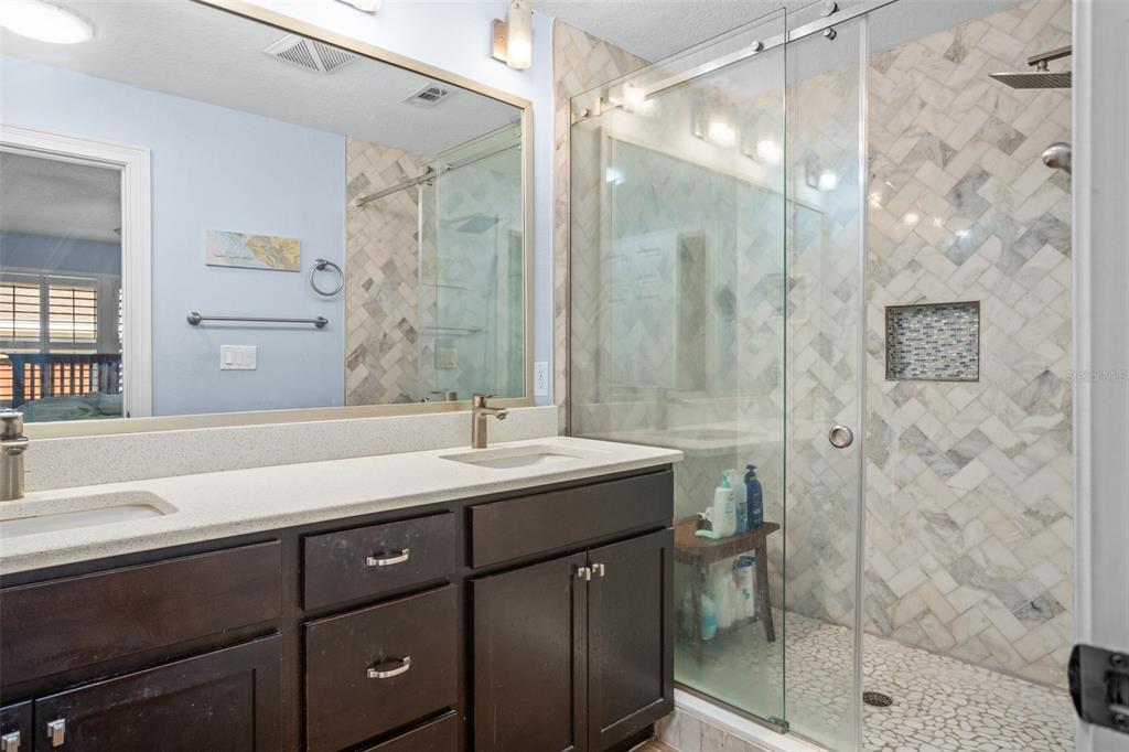 Welcome home to this beautiful home located in the highly desirable timberlane shores. situated on almost 1/3 of an acre, this corner lot home has endless possibilities. the 4- bedroom, 3.5 bath home has over 2700 sq feet of living space, including separate guest quarters that consist of 2 bedrooms and 1 shared bath, perfect for extended family, teens, or simply to have privacy for guests. as you enter the home, you will notice the large open concept that includes both dining and living space. the gourmet kitchen features white quartz countertops, 42-inch espresso cabinets, stainless steel appliances, and a large island that can accommodate 3 barstools. the master bedroom has an ensuite bath with a large walk-in shower, marble tile and textured subway tile in a tub/shower combo. the secondary bedroom in the main part of the home functions as a second master bedroom and also has an ensuite bathroom. a very private and serene patio area from which to watch the birds and hear tranquil sounds of nature, can be found through the living room sliders. the home’s 2-car garage is spacious and offers a tremendous amount of storage. this unique home is surrounded by multi-million-dollar homes, so there is also the opportunity to tear this down and build a brand-new home on the lot. close to downtown and winter park village and park avenue is less than 2 miles away. beautiful parks, walking/bike trail and dog park are within walking distance. you don’t want to miss this one!1681 BLUE RDG, WINTER PARK, FL 32789