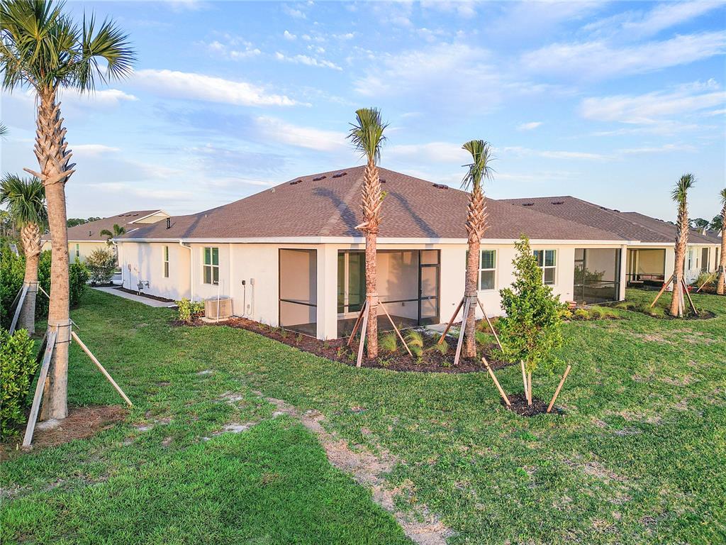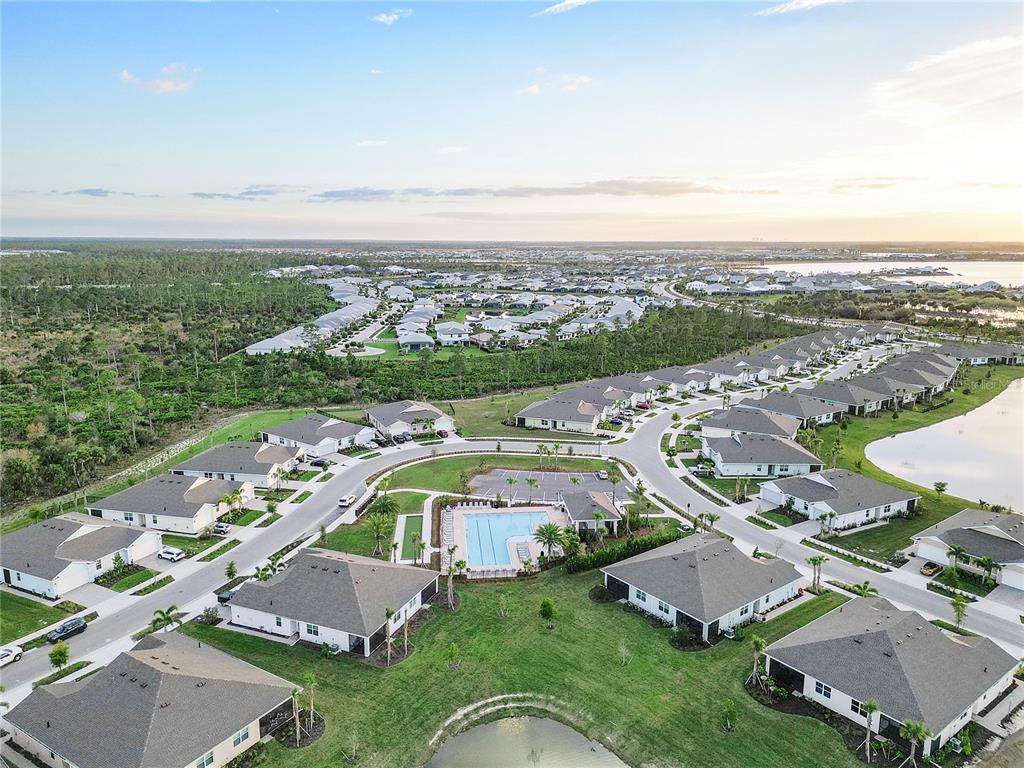 Discover the perfect blend of comfort, community, and resilience in this charming two-bedroom, two-bathroom villa, located in the tranquil preserve community in babcock ranch. this end unit offers unparalleled privacy with its secluded entryway and charming side yard. step inside to find durable tile flooring throughout, impact-resistant windows, and a screened lanai where you can savor breathtaking water views and those unforgettable babcock ranch sunsets. an enclosed den adds versatility, while the two-car garage ensures ample storage space. beyond the home itself, babcock ranch is celebrated as america’s first solar-powered town, thoughtfully designed with state-of-the-art hurricane-proof infrastructure. this innovative community was built to endure severe weather with underground utilities, a reliable power grid powered by an on-site solar farm, and flood-mitigating green spaces. residents here can rest easy, knowing they’re part of a town engineered for safety and resilience. residents also enjoy exceptional amenities, including two resort-style pools, grill cabanas, fireplaces, and fire pits. nearby, you’ll find the preserve community lap pool with and abundance of lounge chairs perfect for relaxing or socializing. the vibrant community comes alive with live music, food trucks every weekend, and a sunday morning farmers market at founders square. don’t miss the chance to call this barely lived-in villa your home and embrace the best of hurricane-resilient living in babcock ranch!Villa 2 bedrooms - THE PRESERVE for Sale