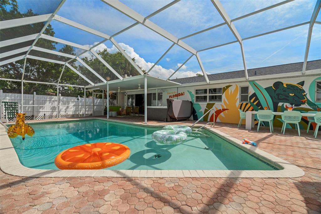 Back on market, buyer had financing issues. experience the florida lifestyle in this one-of-a-kind pool home! lounge poolside in the screened-in paver pool, play a round of mini putt-putt in your private backyard course, or roast marshmallows while enjoying the coastal weather. with unique design elements and accent walls, and beautifully remodeled kitchen and bathrooms with custom tile work, this home is ready for you to move in! enjoy the low maintenance landscaping, and the remodeled air conditioned garage can be used to store your cars, or make it a game room/bonus room or home gym! just a quick drive to the famous clearwater beach and close to all amenities that clearwater has to give, this home offers some of the best of florida living! the home sustained no damage in helene or milton, and you can have peace-of-mind knowing it’s not in a flood zone or hoa. don't miss out on this stunning home that's perfect for entertaining, book your showing today! hot tub and furnishings do not convey.1698 EDEN, CLEARWATER, FL 33756