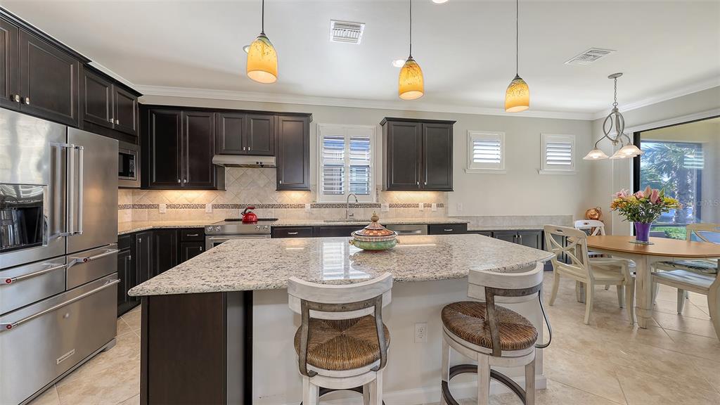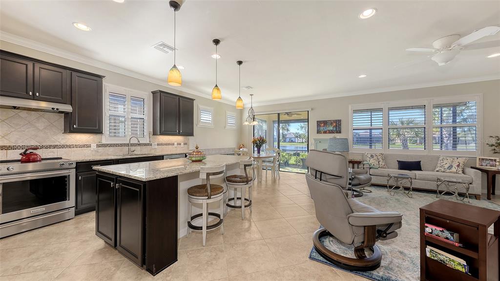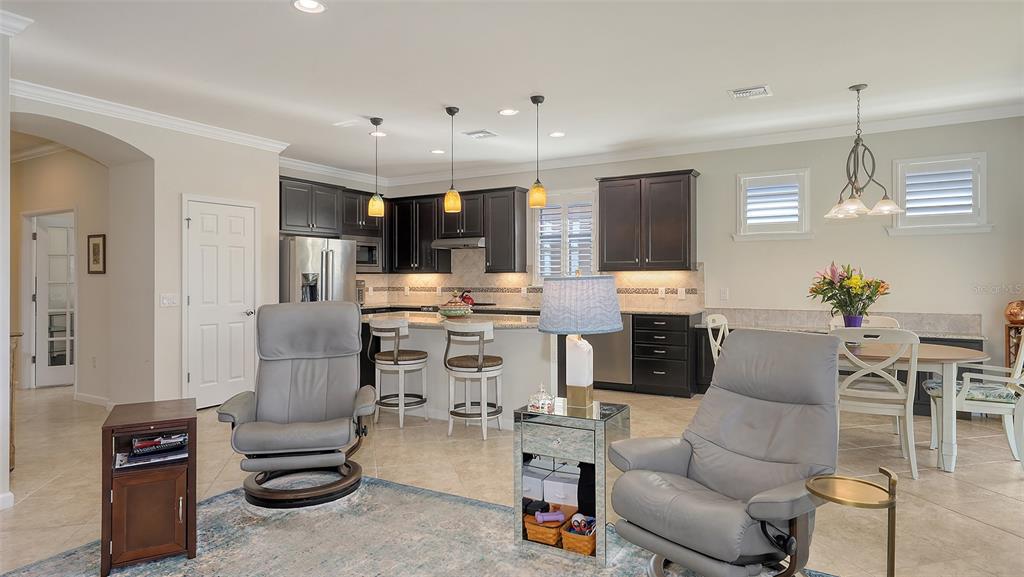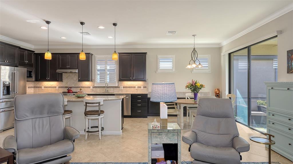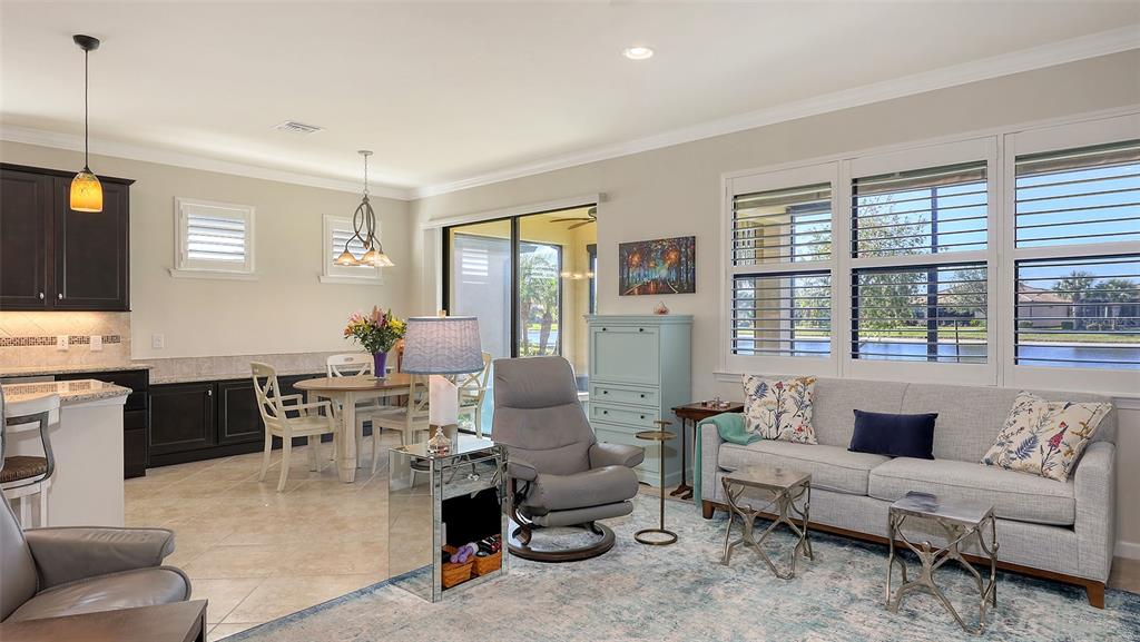 Welcome to this stunning home in del webb lakewood ranch, a highly sought-after 55+ gated community offering an active lifestyle! this is the desirable abbeyville model, where the first thing you’ll notice upon entering is the breathtaking water views from the lanai — the perfect setting to enjoy peaceful mornings and relaxing evenings. inside, this spacious 2-bedroom, 2-bath home features an open-concept kitchen and living area ideal for entertaining. whether you’re grabbing a quick bite at the kitchen island or dining in the adjacent room, you’ll love the flexibility of the space. a built-in cabinet off the dining area adds extra storage and offers the opportunity to create a coffee nook, bar, or the perfect place for a dining service area. the kitchen is equipped with high-end kitchenaid® stainless steel appliances, granite countertops, and wood cabinetry. the versatile "flex room" is perfect for a home office, library, gym, or even extra space for overnight guests. additional thoughtful upgrades include plantation-style shutters on the windows and electric screens on the lanai to provide shade when needed. the front porch has also been screened in, allowing you to enjoy the cool breezes throughout the home. del webb offers an array of amenities such as pickleball, tennis and bocce courts, a state-of-the-art fitness center, resort-style pool, and a restaurant with waterfront dining. the clubhouse features a ballroom, game room, billiards, wi-fi café, and more! with an activities director organizing social events, holiday celebrations, karaoke nights, and even concerts in the ballroom, there’s always something exciting to do. the hoa fee includes lawn maintenance, all amenities, gate guard, and private roads. del webb at lakewood ranch is conveniently located just minutes from dining, shopping, entertainment, and i-75, which offers easy access to some of florida’s most beautiful beaches. contact your realtor® for additional details about this exceptional home and community! some furnishing may be available for purchase.17026 LOUDON, BRADENTON, FL 34202