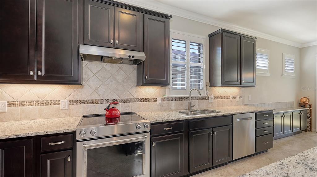 Built-in Features Walk-In Closet(s)Ceiling Fan(s) Eating Space In Kitchen High Ceilings Stone Counters Window TreatmentsCrown Molding Primary Bedroom Main FloorExterior Features: