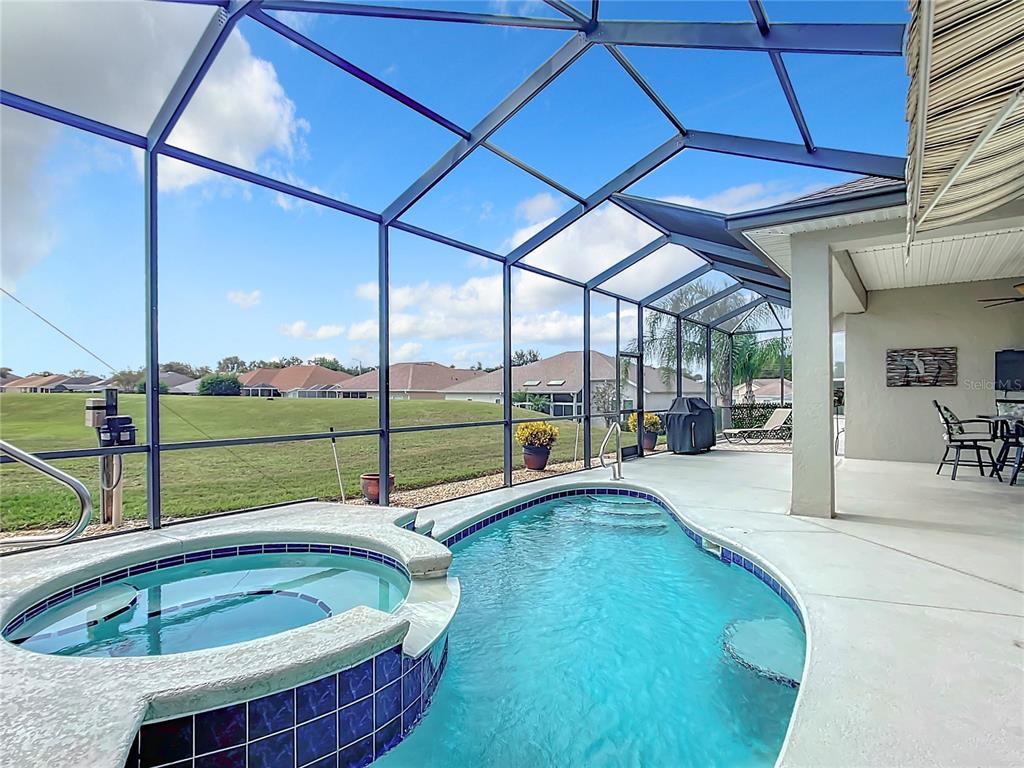 Welcome to this beautiful golf front home with a private pool and spa in the highly sought-after community of stonecrest. this 2 bed 2 bath avondale model home includes an office/den that can be made into a third bedroom if desired. the split floor plan offers maximum privacy for owners and guests. other features include a golf cart garage, 2020 roof, 2020 stainless steel appliances, and tile floors throughout. the luxurious primary suite offers an updated master bathroom in 2017, a walk-in shower, and a walk-in closet. enjoy your outdoor oasis with a covered lanai for relaxing, a stunning pool and spa, and a spectacular golf course view! additional recent updates include a new hot water tank (2020), hvac (2017), interior paint (2022), new pool heater (2021), new pool pump (2021), new garage screen w/ door (2020), and new birdcage screens (2020). come and experience all of the amenities stonecrest has to offer! don't miss the opportunity to make this well-maintained home yours!17091 SE 115TH TER, SUMMERFIELD, FL 34491