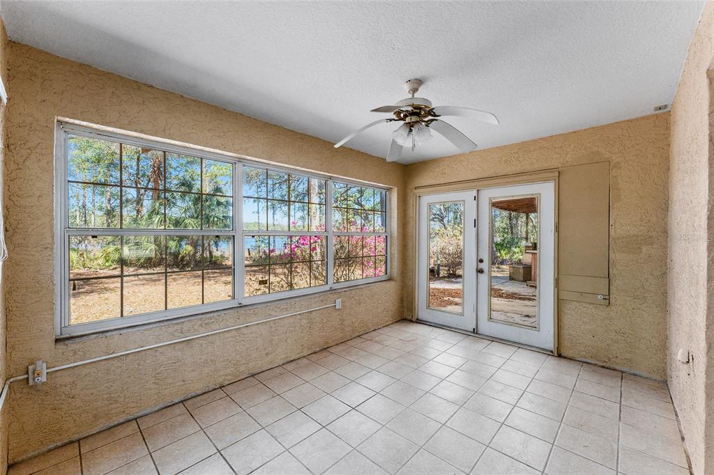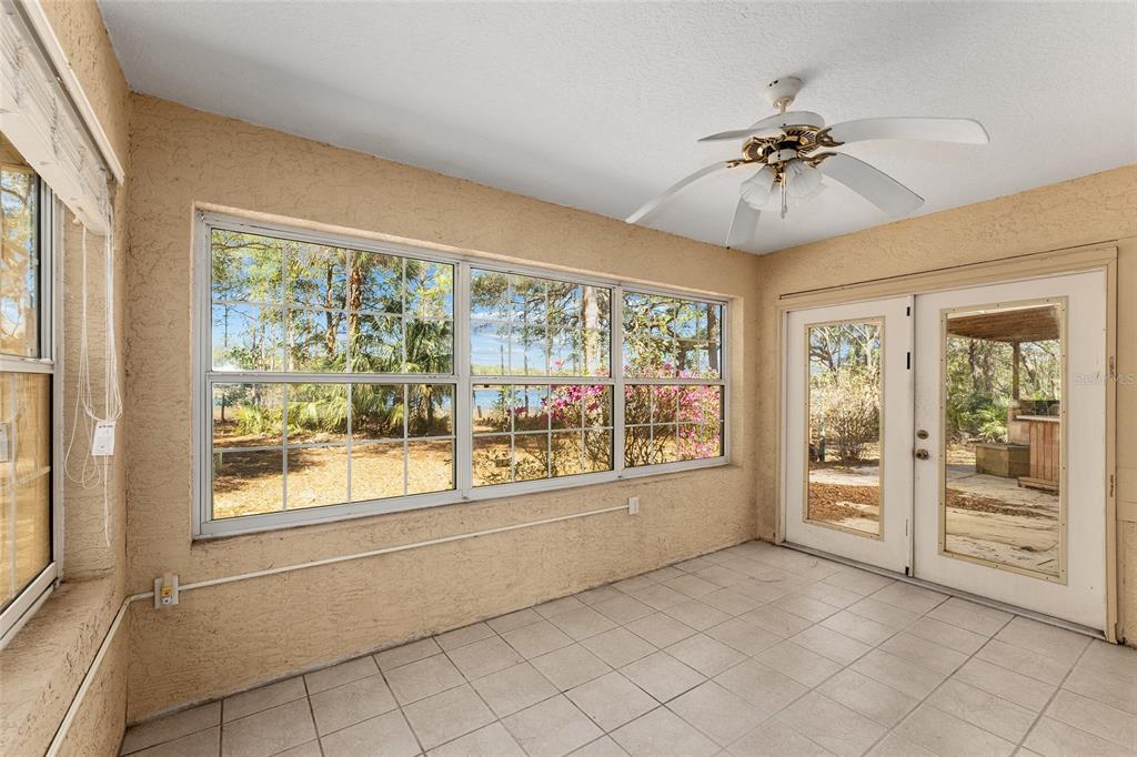 Lakefront home with acreage and 180 ft lakefront property. 3 bedroom 2 bathroom concrete block home on 12+ acres (part of lake bessonia is included in the acreage). beautiful views from most of the rooms. the home has lvp in living areas, along with vaulted ceilings, and a bay window. kitchen has plenty of cabinets and quartz counters, backsplash, ss appliances, and a pantry. split bedroom plan. primary bedroom has walk-in closet and ensuite bath. one car garage includes laundry area with washer/dryer. florida room has french doors to the covered patio. 2021 ac. shed, pontoon boat, and trailer included (boat condition is not known). property is partially fenced. dock needs work. there are many outdoor activities nearby in the ocala national forest: fishing, boating, kayaking, hiking, camping, atv trails, and more! easy drive to ocala or the villages. gated entrance is for 5 homes.17153 SE 79TH ST, OCKLAWAHA, FL 32179