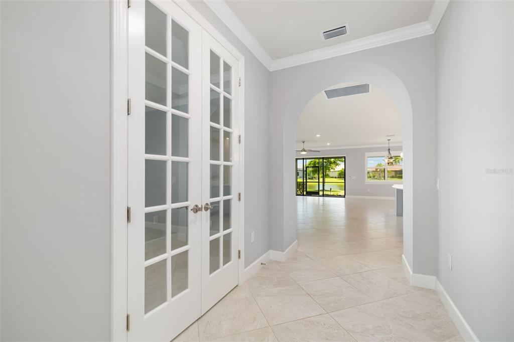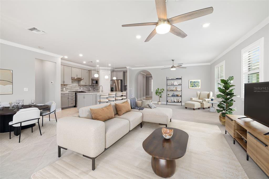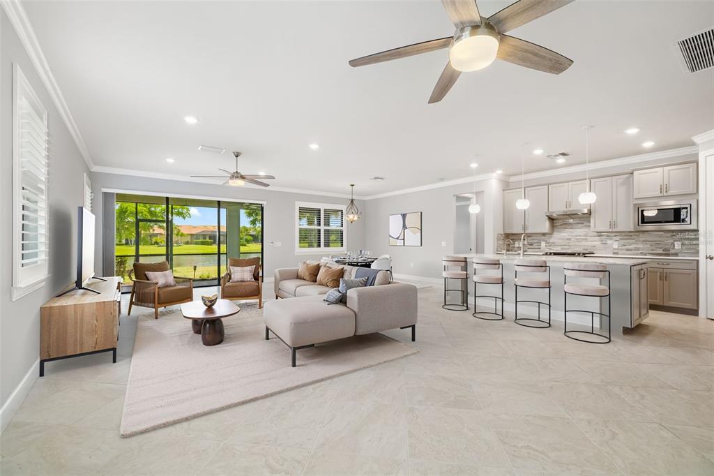 One or more photo(s) has been virtually staged. go into this beautifully upgraded summerwood home, designed with comfort, style and everyday ease in mind. in the sought-after 55-plus gated community of del webb at lakewood ranch, this 2018 residence blends thoughtful design with a vibrant lifestyle. with over 2,000 square feet of living space, the open-concept layout flows effortlessly from the gourmet kitchen to the extended great room and out through sliding glass doors to a covered, screened lanai overlooking a peaceful pond. ideal for morning coffee, entertaining friends or simply unwinding, this home offers a backdrop that makes every day feel special. the chef’s kitchen is functional and inviting, featuring 42-inch cabinetry with pullout shelving, quartz countertops, stainless steel appliances including a five-burner gas range, center island with pendant lighting and a walk-in pantry. the spacious primary suite is a retreat with a spa-like bath, dual quartz vanities, oversized walk-in shower with dual showerheads, and a large walk-in closet. a private guest suite, den with french doors and smart upgrades such as plantation shutters, crown molding, epoxy-coated garage with golf cart parking, and a whole-house water system add to the appeal. life at del webb means more than a home, it’s a community. residents enjoy maintenance-free living, 24-hour security, and access to a world-class clubhouse with dining, social events, resort-style pools, tennis, pickleball, bocce and a full calendar of activities led by an on-site lifestyle director. whether you’re ready for a lock-and-leave home that makes travel easy, space for family visits or new opportunities to connect with neighbors, this property and community deliver it all. this isn’t just a move, it’s a lifestyle upgrade.17224 CORINNA, BRADENTON, FL 34202