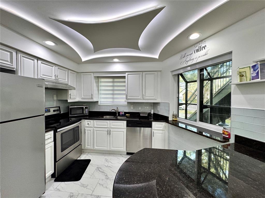 Look no further you have come home! beautiful 2 bedroom, 2 bath condo tucked away in a quiet street where peacocks roam. fully renovated in 2022, hvac, hot water heater, all kitchen appliances and washer and dryer. wood floors throughout, ceramic tile floors in bathrooms, glass enclosed showers, ceiling led lights in living room, kitchen and bedrooms make the property homey and bright. sliding doors from living room and primary bedroom to screened in porch where you will enjoy many mornings drinking your coffee and enjoying the peace and quiet as well as frequent visit from the peacocks that stroll the neighborhood. close to shopping and entertainment, public transportation and the theme parks. custom cabinetry, stainless steel appliances and granite countertops with breakfast bar in the kitchen, lg washer and dryer convey. this condo is move in ready. come see for yourself and fall in love with your new home!1734 FOXHALL #1734, KISSIMMEE, FL 34741