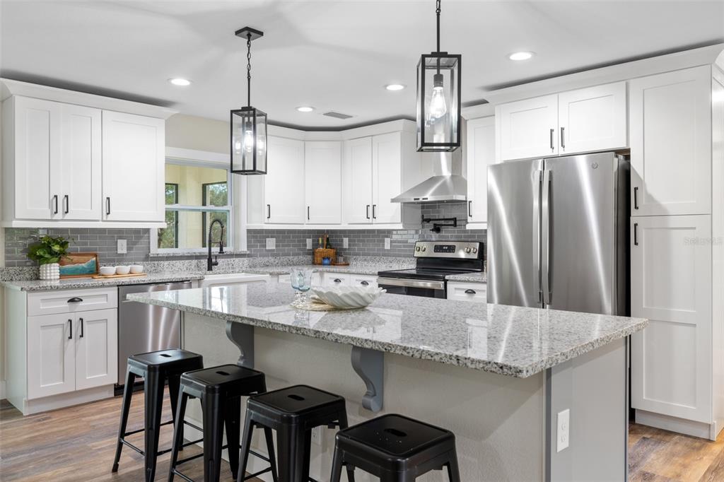 Price improvement! welcome to your dream home! this stunning new construction is the epitome of quality and craftsmanship, offering a lifestyle that feels like a vacation every day. from the moment you enter, you'll be captivated by the exquisite details and luxurious upgrades throughout. the open concept living space offers high, coffered ceilings with elegant crown molding and bullnose beading, creating a grand ambiance. imagine relaxing in the living room, where a fireplace provides the perfect cozy atmosphere for cool evenings. the space seamlessly flows into an impressive open kitchen, where no detail has been overlooked. the kitchen features an oversized island with granite countertops, solid wood soft-close cabinets and drawers, stainless steel appliances, a cast iron farmhouse sink, and more! designer pendant lighting and led recessed lighting add a touch of modern elegance, making this kitchen both functional and beautiful. adjacent to the kitchen is the dining area with radius walls and a sliding glass door that leads to a screened-in lanai. the lanai is complete with a wet bar and granite countertop, perfect for weekend barbecues or quiet afternoons spent enjoying the florida sunshine. the master suite is a true retreat, offering both luxury and comfort. imagine waking up each morning in your spacious bedroom, sliding open the glass doors, and stepping out onto your private lanai to enjoy a peaceful moment with your coffee, listening to the gentle sounds of nature. the en-suite master bath is fully equipped with dual sinks, granite countertops, a large roman walk-in shower with upgraded tile and a niche for toiletries, and a private water closet. barn doors lead to an expansive walk-in closet, with an additional closet providing even more storage. the split floor plan ensures privacy, with two additional large bedrooms, each with walk-in closets located on the opposite side of the home. additional upgrades include 6" baseboards throughout, two-panel doors, granite windowsills, and an inside laundry room with pocket doors and a large walk-in closet. living in this home means enjoying the finer details every day—upgraded design features indulge the quiet elegance of this property. you will also note that the exterior of the home is just as impressive, with a hurricane impact leaded glass front door and windows, large front and back yards, and professional landscaping. there’s plenty of room for a pool and a large storage shed, offering endless possibilities to create your own backyard oasis. situated in a prime location, this home offers easy access to beaches, boating, restaurants, shopping, top notch golf courses and spring training facilities. the area is serviced by four airports making travel a breeze. with no hoa or cdd and city water you can enjoy all the amenities of florida living without any of the hassles. this is more than just a house; it’s the home where your best memories will be made. come live the dream in this spectacular new construction home, where every day feels like a vacation.17472 SHIRLEY, PORT CHARLOTTE, FL 33948