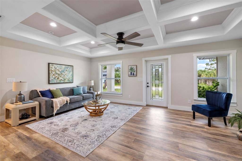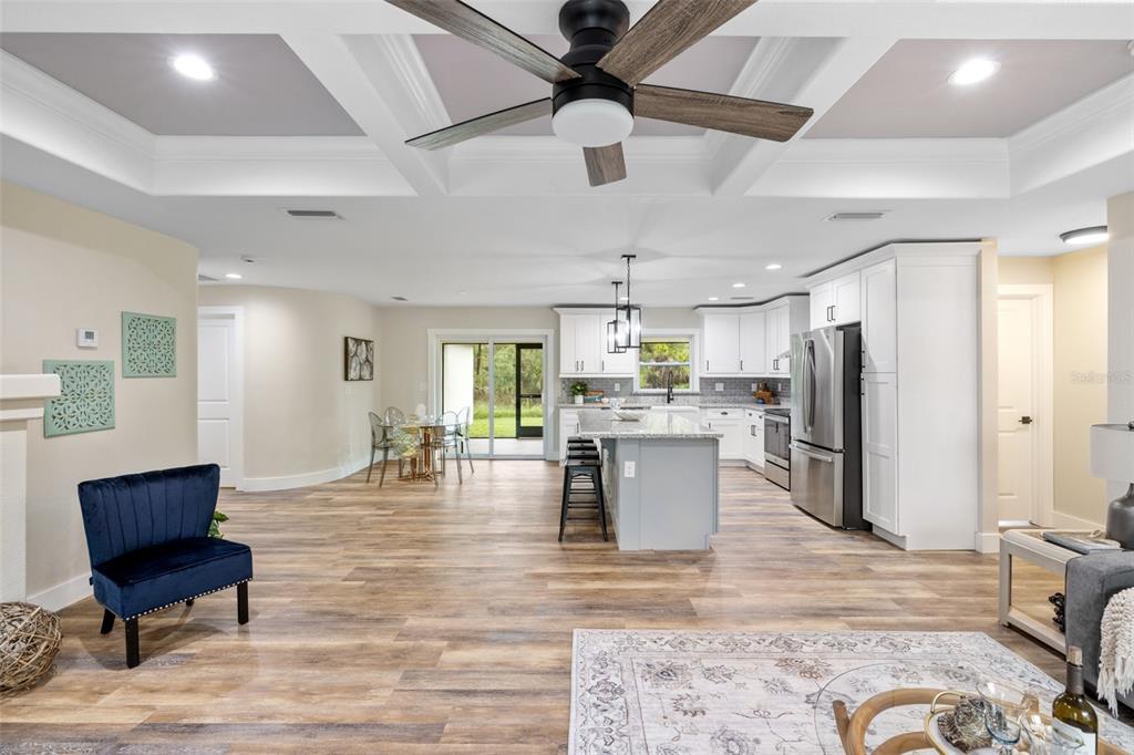 Walk-In Closet(s)Ceiling Fan(s) Living Room/Dining Room Combo Stone Counters Open FloorplanCrown Molding Primary Bedroom Main Floor Kitchen/Family Room Combo Coffered Ceiling(s) Tray Ceiling(s)Exterior Features: