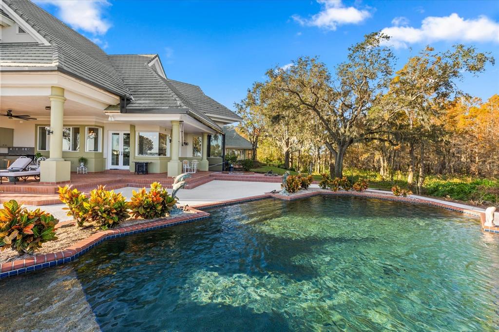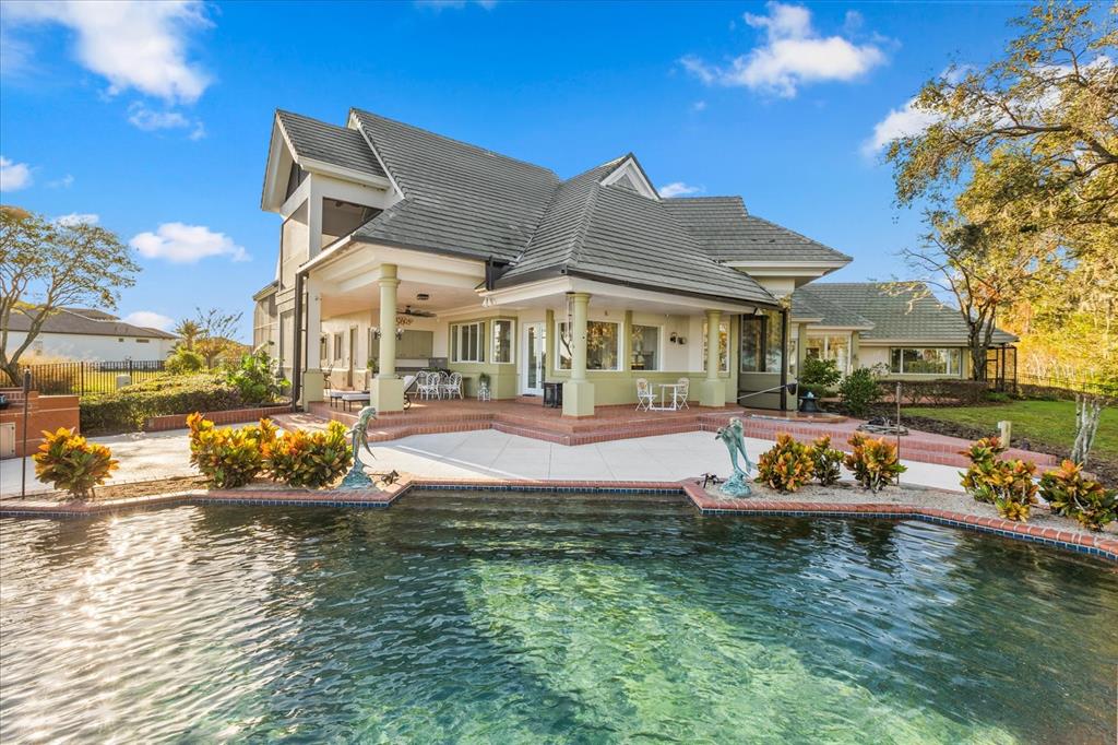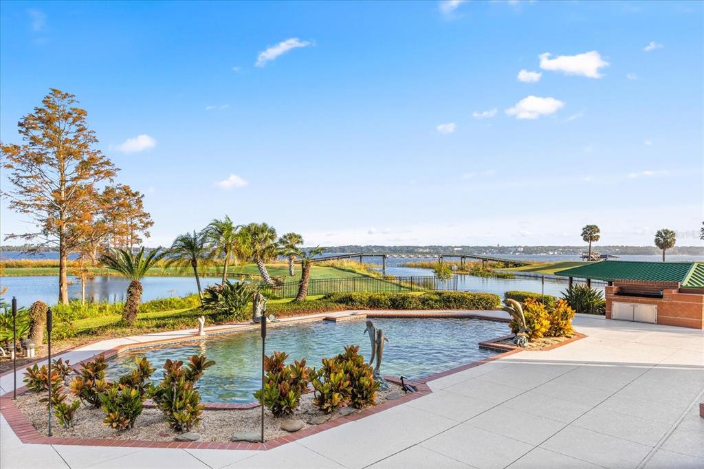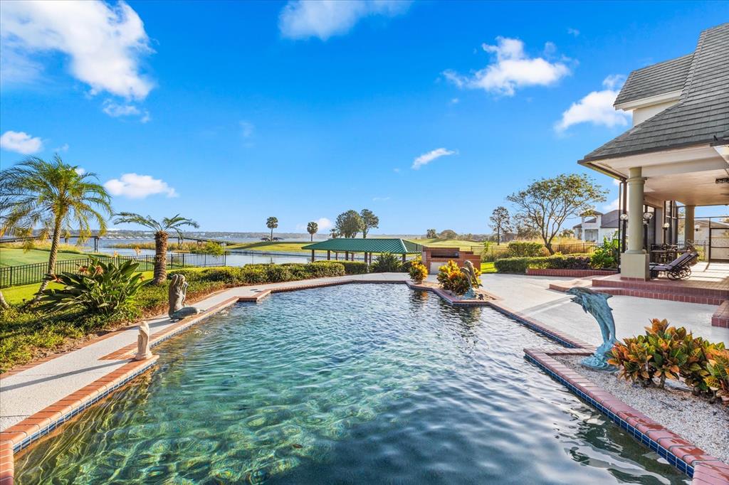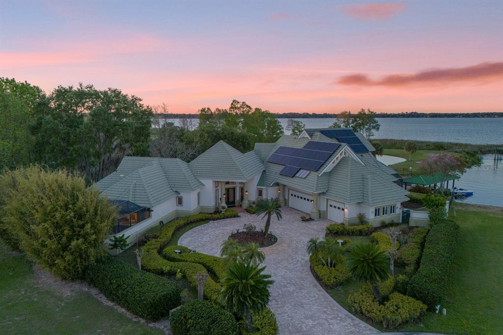 Luxurious lakeside living beckons you to your own private retreat in the heart of central florida. this sprawling estate sits in a premium location on lake dora, part of the harris chain of lakes, where you can enjoy the breathtaking views of both sunrises and sunsets. with four bedrooms, four and a half baths, a gourmet kitchen, and an impressive pool and patio area, this uniquely designed home emanates sophistication on deer island, a true natural 400-acre island. a circular driveway on a cul-de-sac welcomes you into your serene sanctuary, where expansive floor-to-ceiling windows flood the space with natural light and provide scenic views, inviting you to unwind. the primary suite serves as a haven of tranquility, featuring a gas fireplace, a wrap-around stone pond with a fountain, and a screened-in sitting area where the soothing sounds of flowing water and birdsong enhance your spa experience. this suite also boasts a wet bar, two separate walk-in closets, a jetted tub, a walk-in shower, and captivating chandeliers. artfully designed dining and living areas embrace panoramic views, perfect for gatherings with family and friends. the chef’s dream kitchen boasts modern conveniences such as granite countertops, an oversized island, custom cabinetry for ample storage, a large walk-in pantry, and stainless steel appliances. it seamlessly extends into both a wet bar area and a magnificent covered porch, offering picturesque views of lake dora. your everyday escape into paradise awaits with a heated resort-style pool, a separate in-ground hot tub, a propane-fueled fire feature, a brick barbecue grill, lush tropical foliage, a spectacular summer kitchen, and spacious lounging and seating areas. upstairs, discover three thoughtfully designed bedrooms which share a balcony overlooking lake dora, two full bathrooms, and additional storage space. additional features include a generously illuminated and fan-ventilated three-car garage, whole-house water filtration and softeners systems, cost-saving solar panels, and a private boat dock with two electric boat lifts, providing access to lake dora and beyond. adventures in downtown mount dora or tavares are just a short boat ride away. waterfront dining and boutique shopping are available in both tavares, america’s seaplane city, and historic mount dora. from your private oasis, you are poised to enjoy all of this as often as desired. the exclusive gated community of deer island is a natural 400-acre island surrounded by lake dora and lake beauclair. it features an awe-inspiring, privately-owned 18-hole championship golf course, recently named one of america’s top 50 public golf courses. it also ranks as #5 in top 25 florida courses! only an estimated 45 minutes away from orlando, deer island offers the active yet relaxing lifestyle you’ve been looking for in central florida.17601 SAWGRASS RUN, TAVARES, FL 32778