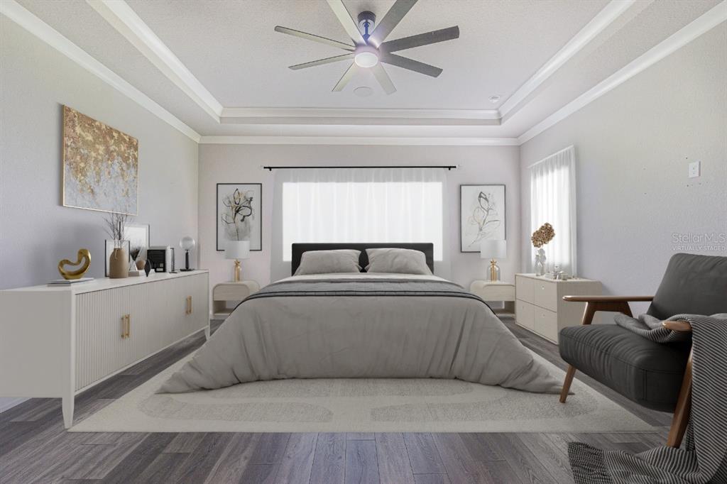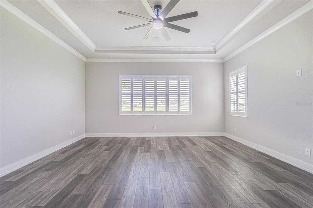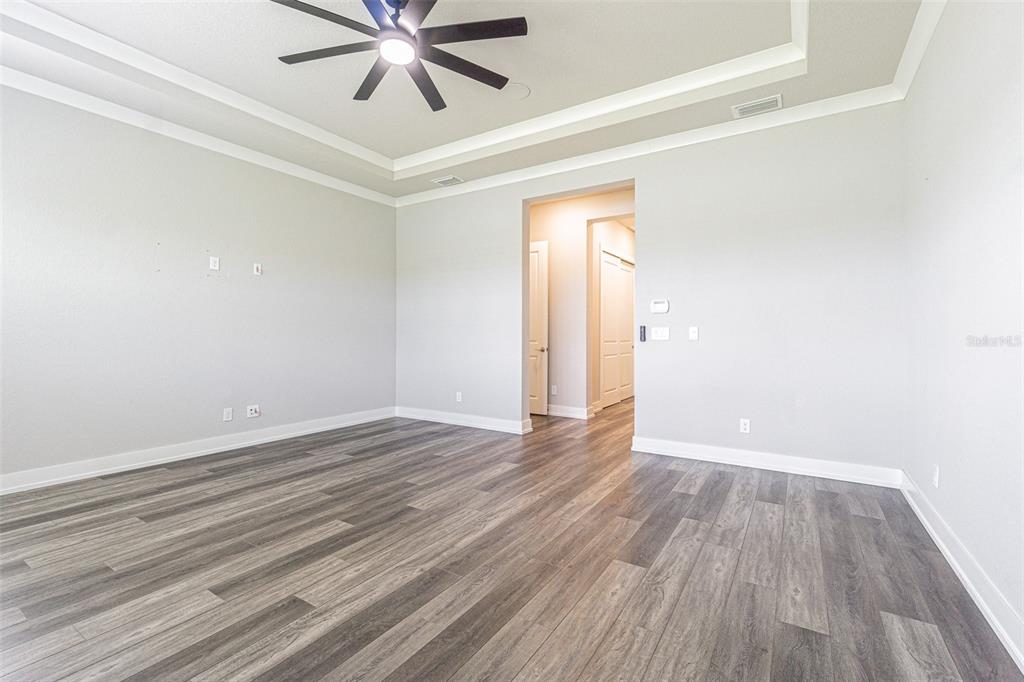 Split Bedroom Walk-In Closet(s)Ceiling Fan(s) High Ceilings Open Floorplan Solid Surface CountersCrown Molding Tray Ceiling(s)Exterior Features: