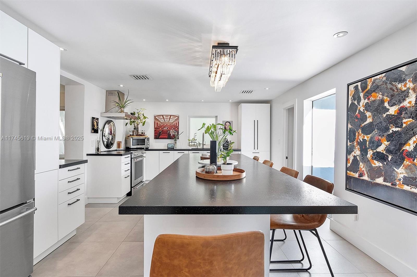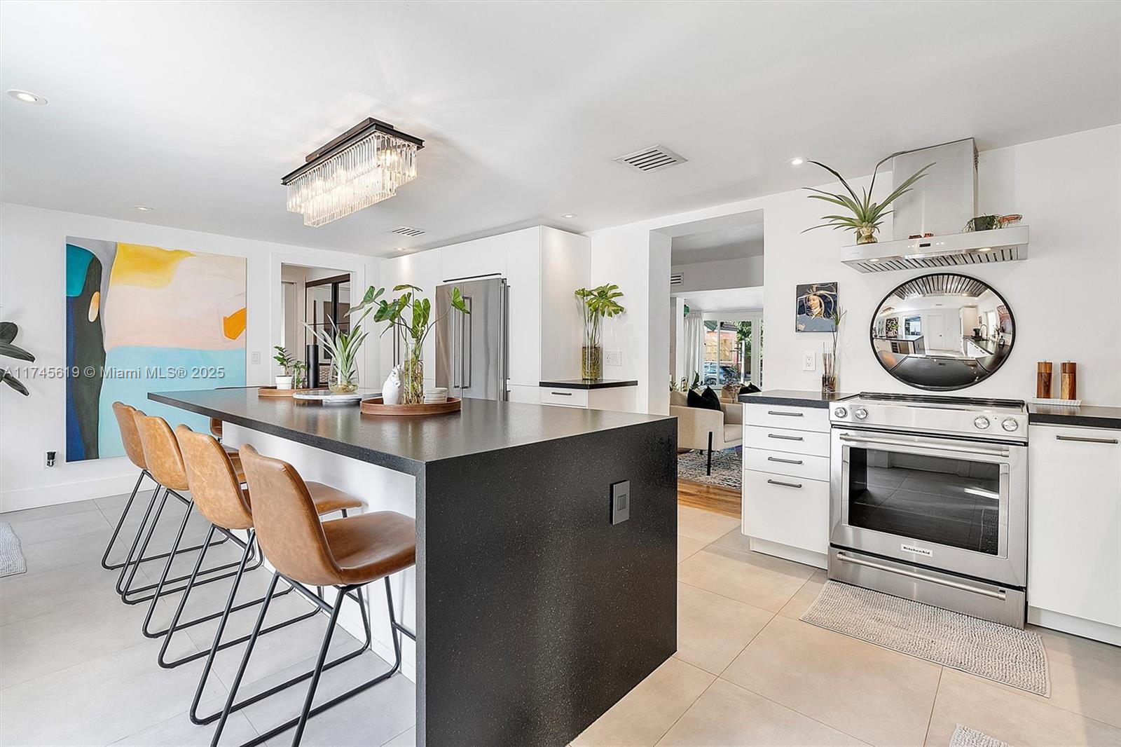 Step into this beautifully updated mid-century home where timeless charm meets modern sophistication.the residence has been reconfigured into a 3/3 featuring a spacious master wing. the kitchen is a culinary dream, boasting granite countertops, italian porcelain floors, an oversized island, illuminated cabinetry, & high-end kitchenaid appliances—with a bar that makes entertaining effortless. modern conveniences include a tankless water heater, impact windows & doors, & smart-home technology. a massive covered terrace, private courtyard, and a regulation-size badminton/volleyball court set the stage for alfresco enjoyment & fully irrigated yard with mature fruit trees creates a serene backdrop. perfectly situated on a quiet street just two blocks from a vibrant mix of dining & entertainment1772 SW 10TH ST, MIAMI, FL 33135