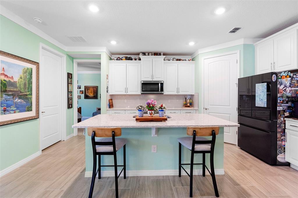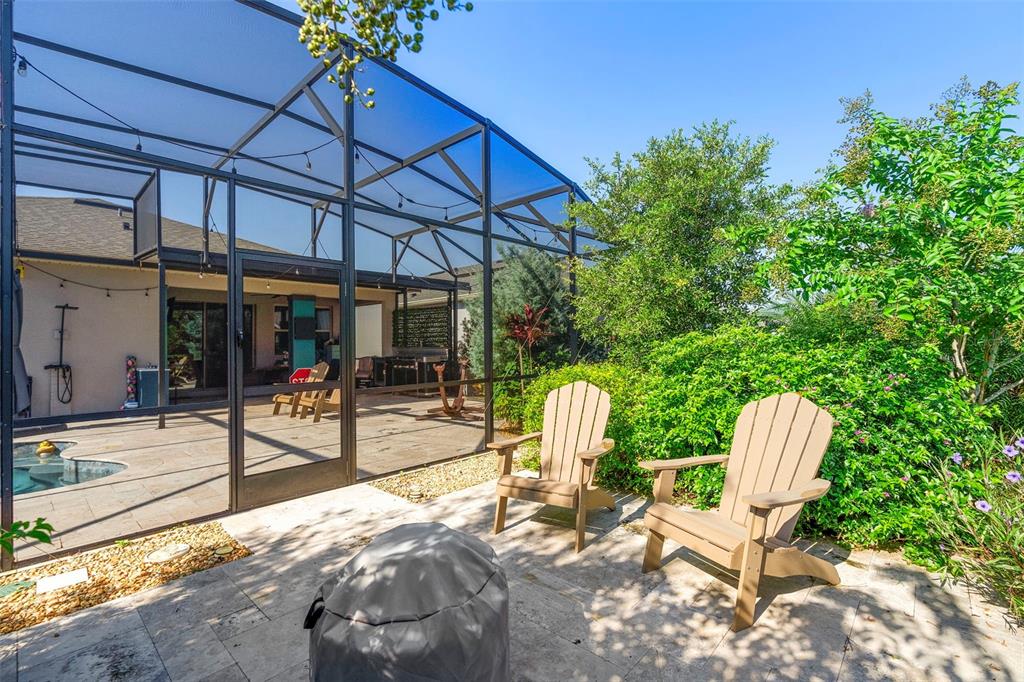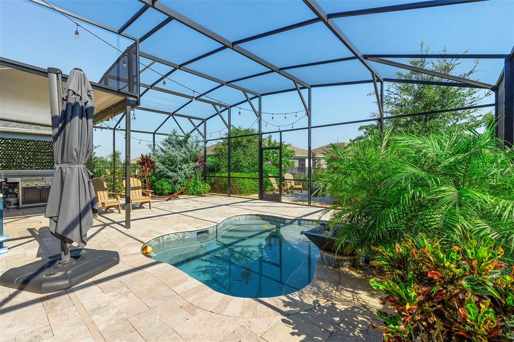 One or more photo(s) has been virtually staged. welcome to 17751 blazing star loop—a stunning, like-new home built in 2023, located in the highly desirable 55+ gated community of palms at serenoa, just minutes from walt disney world. this beautifully appointed 2-bedroom residence includes a versatile office or entertainment room and offers approximately 1,822 sq ft of thoughtfully designed living space. whether you’re searching for a full-time residence or the perfect snowbird retreat, this home checks every box for comfort, quality, and convenience. enjoy nightly fireworks views from your own backyard and take advantage of the home’s prime location near major highways, including i-4, providing easy access to central florida’s top attractions, dining, and shopping. inside, you’ll find elegant crown molding, upgraded interior paint, and custom drapes that elevate the home’s warm, modern design. the kitchen boasts quartz countertops, an upgraded pantry with pullout shelving and pot rack, and abundant storage. the laundry room adds functionality with upgraded cabinetry and a plumbed sink. the primary suite features two closets—including one with custom built-in cabinets—and an en suite bathroom equipped with a bidet. the secondary bath offers a walk-in bathtub for accessibility and comfort. the office is finished with custom french doors, built-in cabinetry, and decorative ceiling beams—perfect for remote work or media enjoyment. a built-in dual-zone wine & beverage cooler enhances the space for entertaining. outdoors, unwind on your screened-in patio with travertine tile flooring, a 14’ x 14’ heated pool and spa featuring 15 massage jets, including 3 hot water jets for therapeutic relaxation. the patio is also equipped with a plumbed outdoor sink, making outdoor cooking and cleanup easy and convenient. the backyard is surrounded by lavishly upgraded landscaping, providing privacy and lush scenery. most outdoor furniture conveys, including an electric smoker, grill, and pizza oven—ready for your next outdoor gathering. additional upgrades include a whole house fan, perfect for drawing in fresh air through open windows, ceiling fans in all bedrooms, a new 50-year roof (2023), and a finished 2-car garage featuring an epoxy floor, built-in shelving, on-demand hot water, and an ev plug. palms at serenoa offers more than just a home—it provides a lifestyle. enjoy access to a private clubhouse with fitness and yoga studios, a zero-entry resort-style pool, pickleball and bocce ball courts, dog parks, and scenic walking trails. the hoa includes lawn care and landscaping for a truly low-maintenance experience. floor plan available buyer should verify room size and review hoa docs.17751 BLAZING STAR, CLERMONT, FL 34714