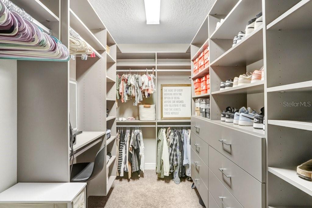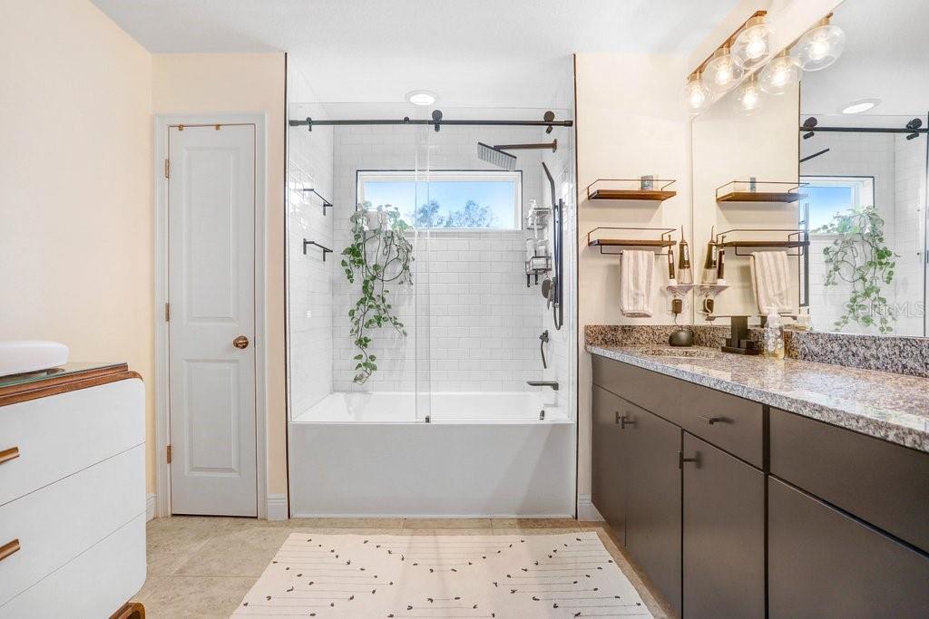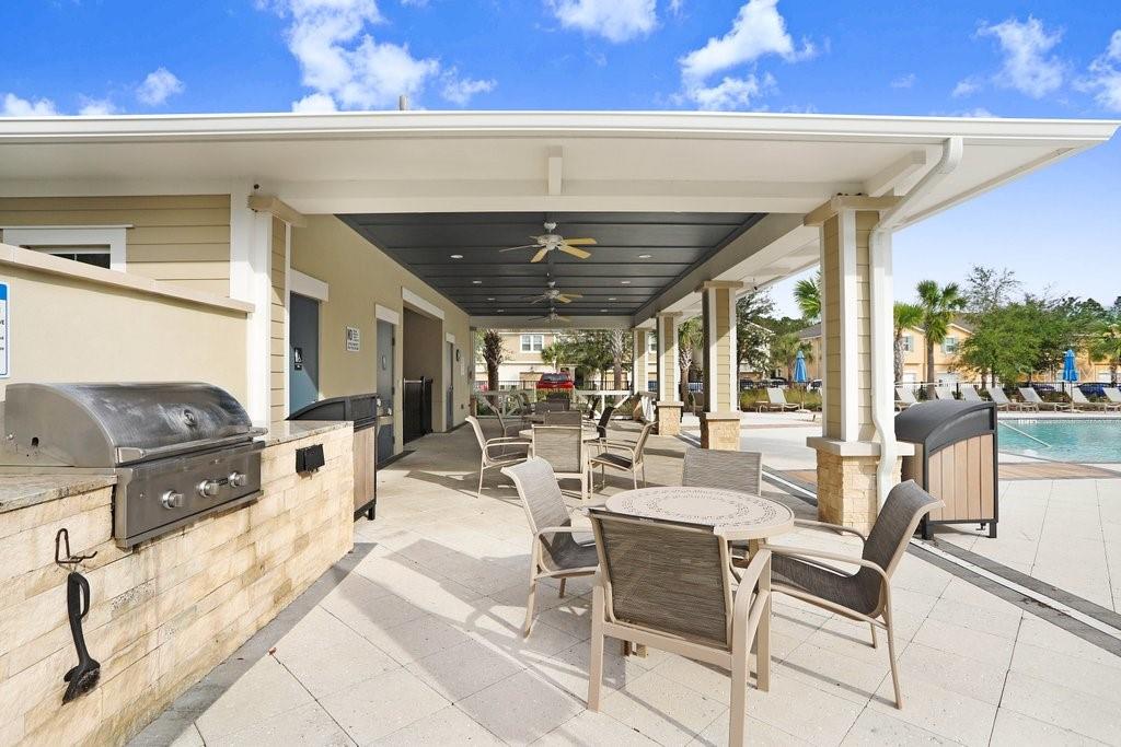 Split Bedroom Walk-In Closet(s)Ceiling Fan(s) High Ceilings Stone Counters Thermostat Open Floorplan Window Treatments Solid Wood Cabinets Kitchen/Family Room ComboExterior Features: