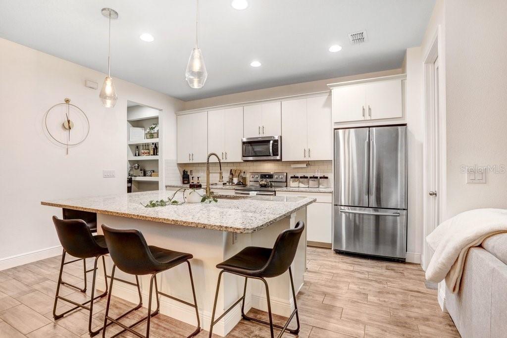 Located in the highly sought-after gated community of lakeshore preserve, this stunning townhome offers 3 bedrooms, 2.5 baths, and 2,307 square feet of thoughtfully designed living space. upon entry, you’re greeted by elegant wood plank tile flooring and plantation shutters throughout, creating a refined and welcoming atmosphere. the enclosed patio with brick pavers offers a serene space to unwind while overlooking a quiet, scenic view. the kitchen is a dream, featuring stainless steel appliances, quartz countertops, a subway tile backsplash, and a spacious walk-in pantry with custom shelving for added convenience. the open layout flows seamlessly into the living and dining areas, perfect for both casual living and entertaining. upstairs, enjoy ultimate privacy with a split layout that includes a large common area—ideal for an upstairs loft flex space, additional family room, office, or multipurpose area. the laundry room, equipped with built-in cabinets, is conveniently located nearby, while two bedrooms and a full bathroom are situated on one side. on the opposite side, the master suite offers vaulted ceilings, two walk-in closets, and a generous en-suite bathroom filled with natural light. the bathroom features a dual vanity, a newly remodeled shower with a subway tile backsplash, and a linen closet for added storage. this townhome is situated in a well-maintained, gated community with a beautiful pool and outdoor grills, offering the perfect spot for relaxation and gatherings. plus, it’s located in a highly-rated school district, providing access to a-rated schools. conveniently located near tampa international airport, hospitals, shopping, dining, and bay area beaches, this townhome offers both luxury and convenience in an unbeatable location.Townhouse 3 bedrooms - LAKESHORE PRESERVE for Sale