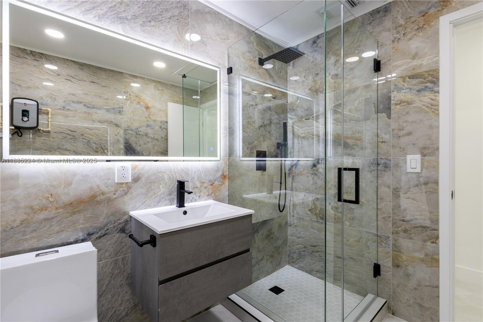 Beautifully renovated 3-bedroom, 2-full bath residence in miami, featuring a brand new roof (2025), new central a/c, hurricane impact windows and doors, and a designer kitchen with taj mahal quartz waterfall island, italian cabinetry, and new stainless steel appliances. spacious interiors include porcelain marble flooring throughout, recessed lighting, and custom designer wood panel accents. bathrooms are finished floor-to-ceiling in porcelain with frameless glass doors, modern vanities, and mirrors. additional upgrades include a tankless water heater, freshly painted interior/exterior, dura fence with gated entry, and new professional landscaping. conveniently located near schools, hospitals, i-95, wynwood, and more. turnkey and move-in ready.1781 NW 94TH ST, MIAMI, FL 33147
