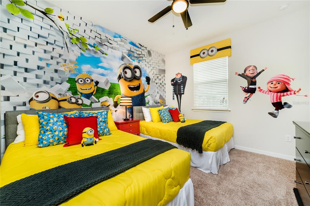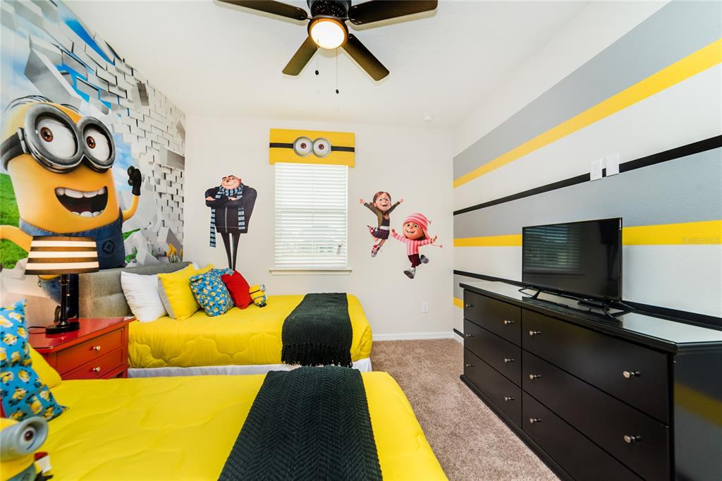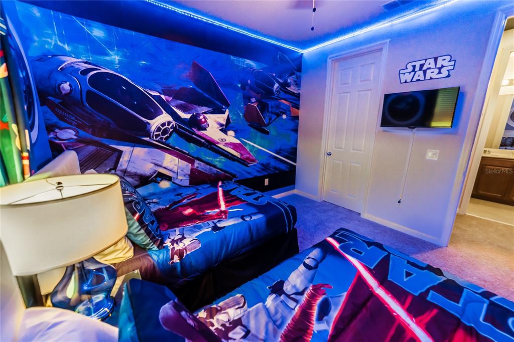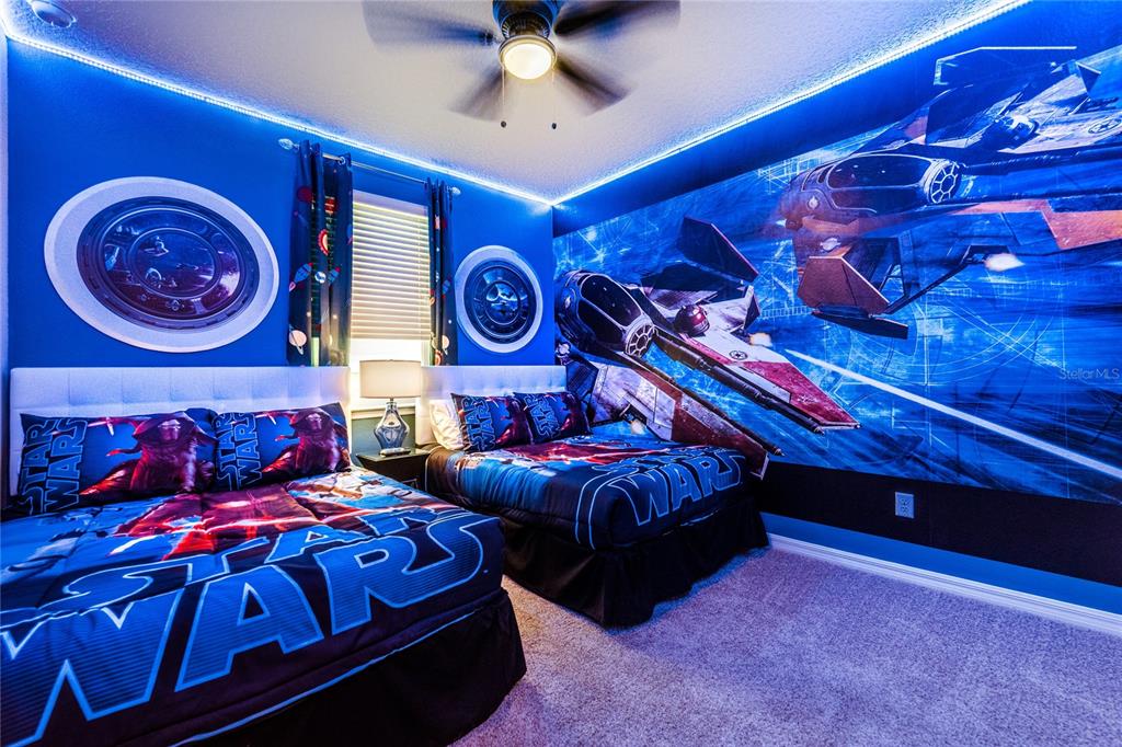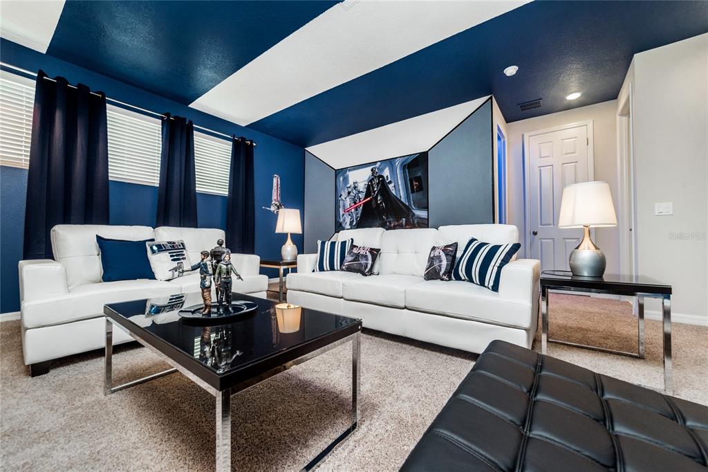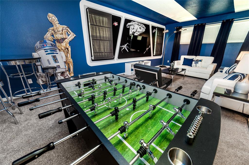 Income-producing vacation home in solara resort – 5bd/5.5ba – fully furnished & themed. this turnkey, income-generating vacation retreat is located in the highly sought-after solara resort, just 7 miles from walt disney world. offering 5 bedrooms and 4.5 bathrooms, this beautifully furnished home is designed for both comfort and entertainment. its versatile layout is perfect for families, guests, or short-term rental use. the home features a spacious loft converted into a star wars-themed movie theater, providing the ultimate entertainment experience. there’s also a minion-themed room with two beds, and a second star wars-themed room with two beds to add excitement for guests. these unique themed spaces are sure to make the home a standout. additionally, the one-car garage has been transformed into a fun-filled game room, further enhancing the home’s entertainment value. step outside to your private, screened-in patio, complete with a private pool, outdoor dining space, and chaise lounges—ideal for soaking up the florida sunshine in complete seclusion. the impressive clubhouse offers a full-service restaurant, ice cream parlor, and coffee bar, while fitness enthusiasts will appreciate the gym. outdoor activities abound, with basketball, beach volleyball, and soccer facilities. the zero-entry pool, tiki bar, and splash pad provide endless fun for all ages. hoa fees cover basic cable, internet, landscaping maintenance, valet trash service, and common area upkeep. solara resort’s prime location, just 8 miles from walt disney world, offers easy access to universal studios, seaworld, and i-drive. whether you’re seeking a luxurious vacation home or a lucrative investment property, this gated resort community is the ultimate choice.1781 SAWYER PALM, KISSIMMEE, FL 34747