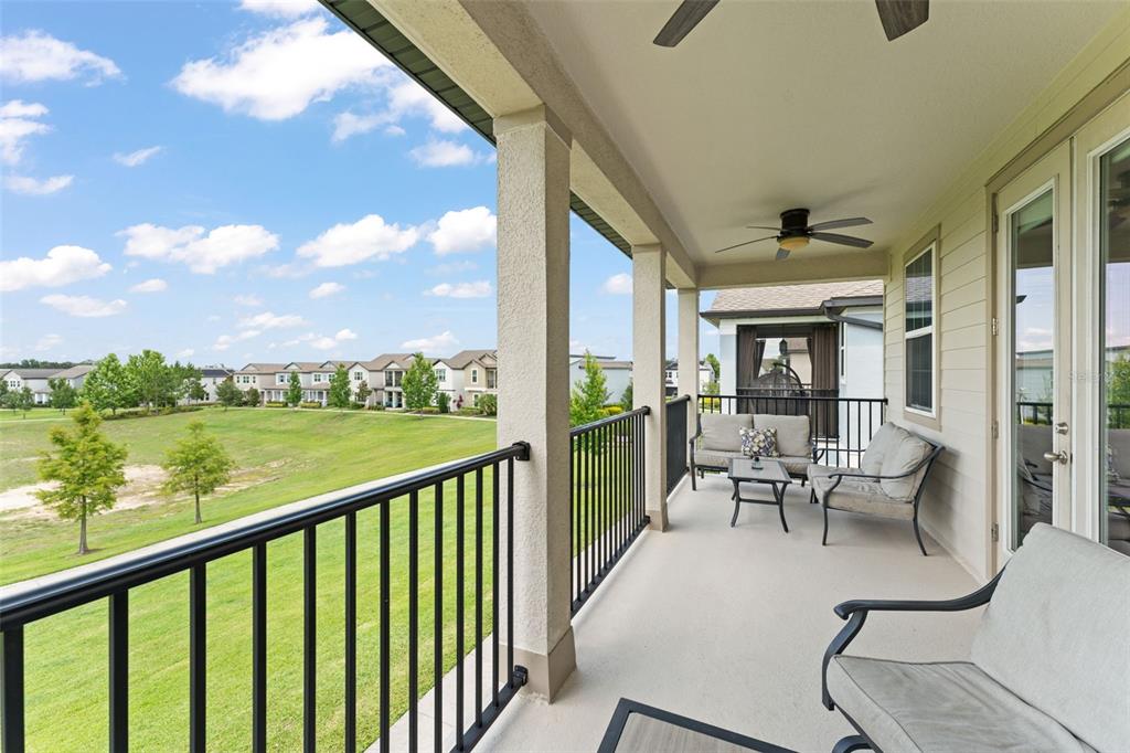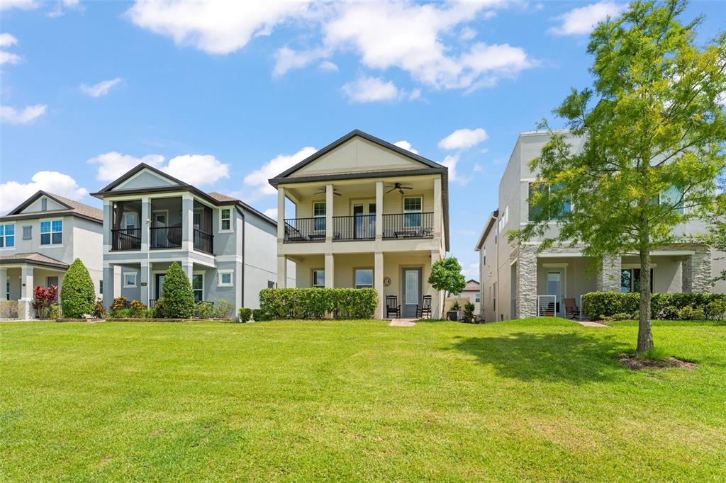 **this home qualifies for loan options with no down payment required, 100% financing available for qualified buyers. seller also offering additional $5000 credit towards new flooring.** welcome to a beautifully designed two-story single-family home featuring 3 bedrooms, 2.5 bathrooms, and a detached garage, nestled in a serene and manicured community. as you arrive, you're greeted by a welcoming front porch and an upstairs balcony offering peaceful views of a sleekly trimmed, expansive green space – perfect for morning coffee or evening unwinding. step inside to discover a light-filled layout where the stairs to the second floor greet you and a cozy living room sits to your left, with windows looking out onto the porch. the open-concept kitchen, dining, and living area creates a comfortable flow for everyday living and entertaining. a convenient half bath is located just off the main space. the kitchen is a modern chef’s delight with dark cabinetry, white quartz countertops, stainless steel appliances, a small island, and breakfast bar seating illuminated by stylish lighting. the adjacent living room features windows facing the covered patio and french doors that lead you outdoors. the dining area offers ample space for a six-seater table and is surrounded by natural light. upstairs, you’ll find a versatile loft space with french doors that open to the balcony, providing the same calming view as the porch below. the entire second floor is carpeted for comfort. down the hall are two guest bedrooms with built-in closets and a full bathroom featuring dual sinks, dark cabinetry, and a tub/shower combo. the spacious primary suite is a private retreat, showcasing a tray ceiling, a walk-in closet, and an elegant ensuite bathroom with dual vanities, a glass-enclosed walk-in shower with tile surround, and a rain showerhead. with its thoughtful layout, charming outdoor spaces, and upscale finishes, this home is ready to welcome its next owner. just 4 houses down from the community pool and also located next to the w orange bike trail which many use to go to downtown winter garden/plant st, you wont want to miss your chance to experience the blend of comfort and style that 1787 white feather loop has to offer!1787 WHITE FEATHER, OAKLAND, FL 34787