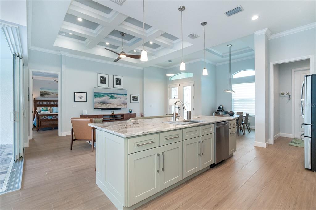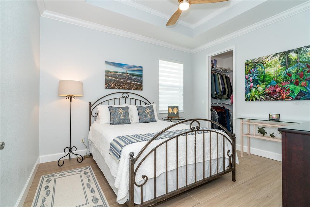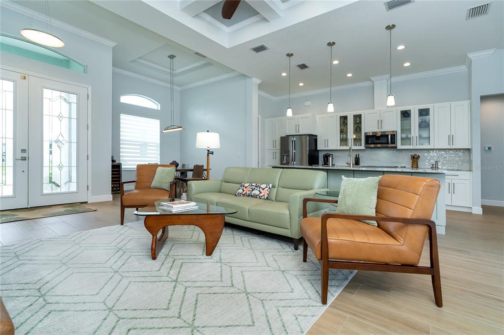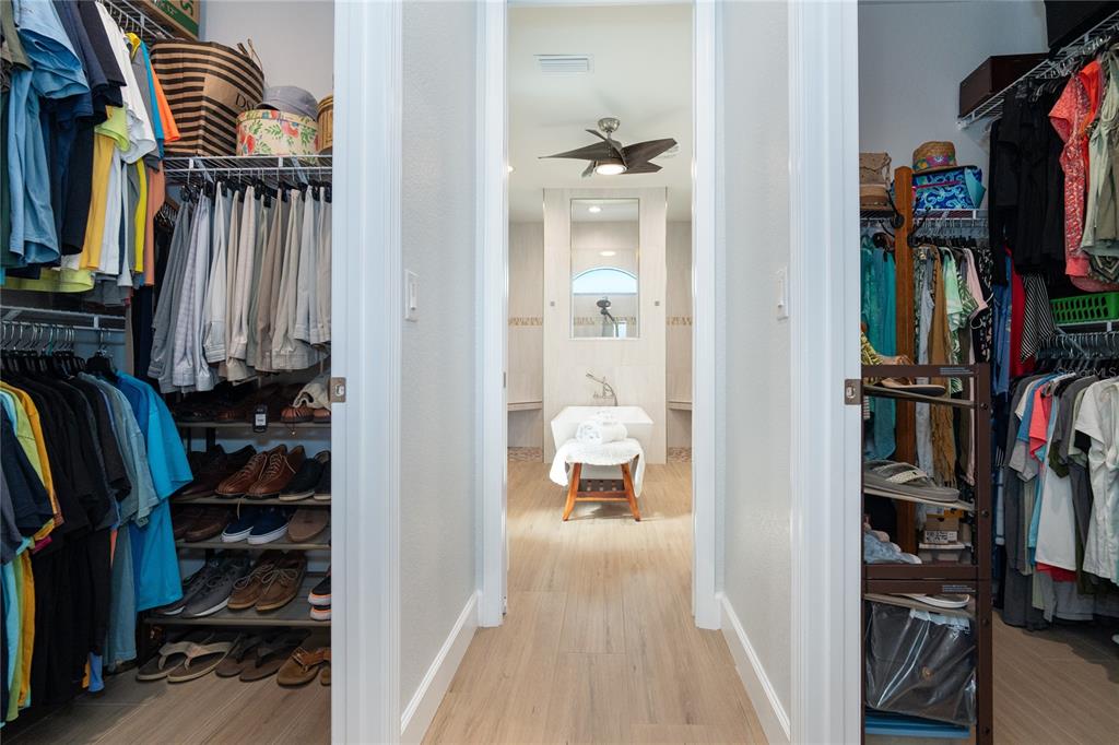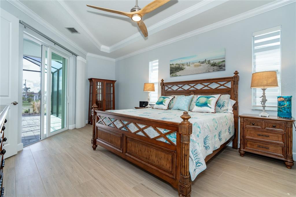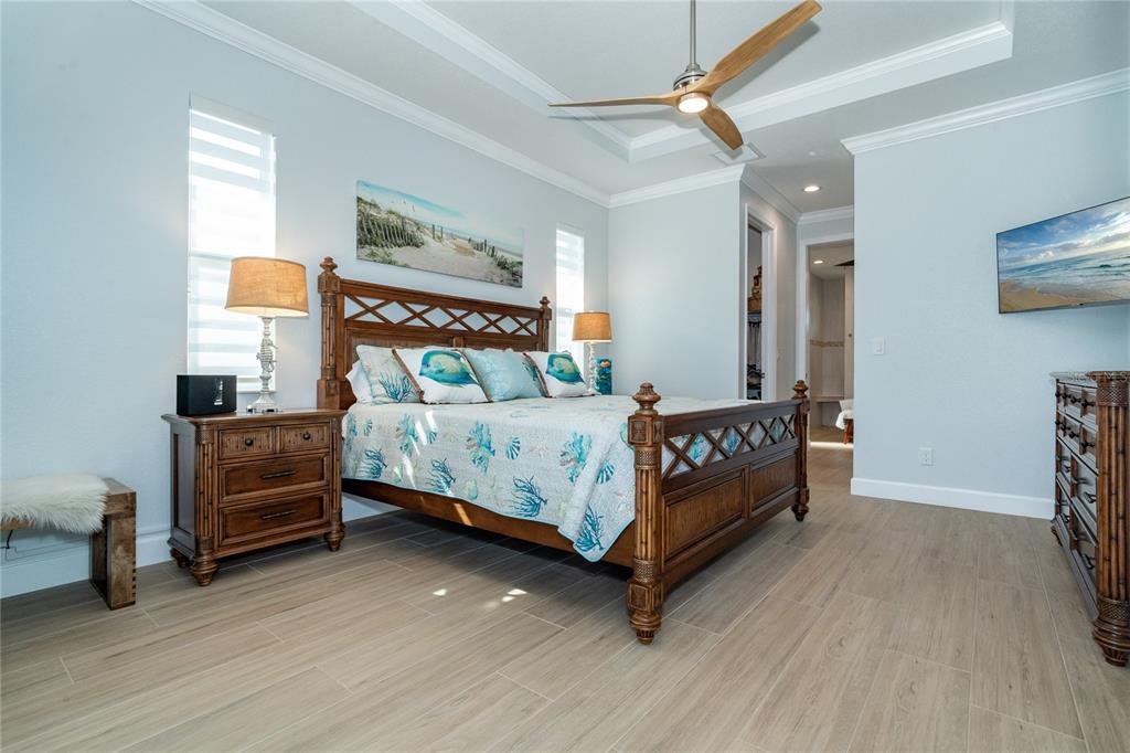 Split BedroomBuilt-in Features Walk-In Closet(s)Ceiling Fan(s) High Ceilings Stone Counters Thermostat Open Floorplan Window Treatments Solid Wood CabinetsCrown Molding Primary Bedroom Main Floor Coffered Ceiling(s) Tray Ceiling(s)Exterior Features: