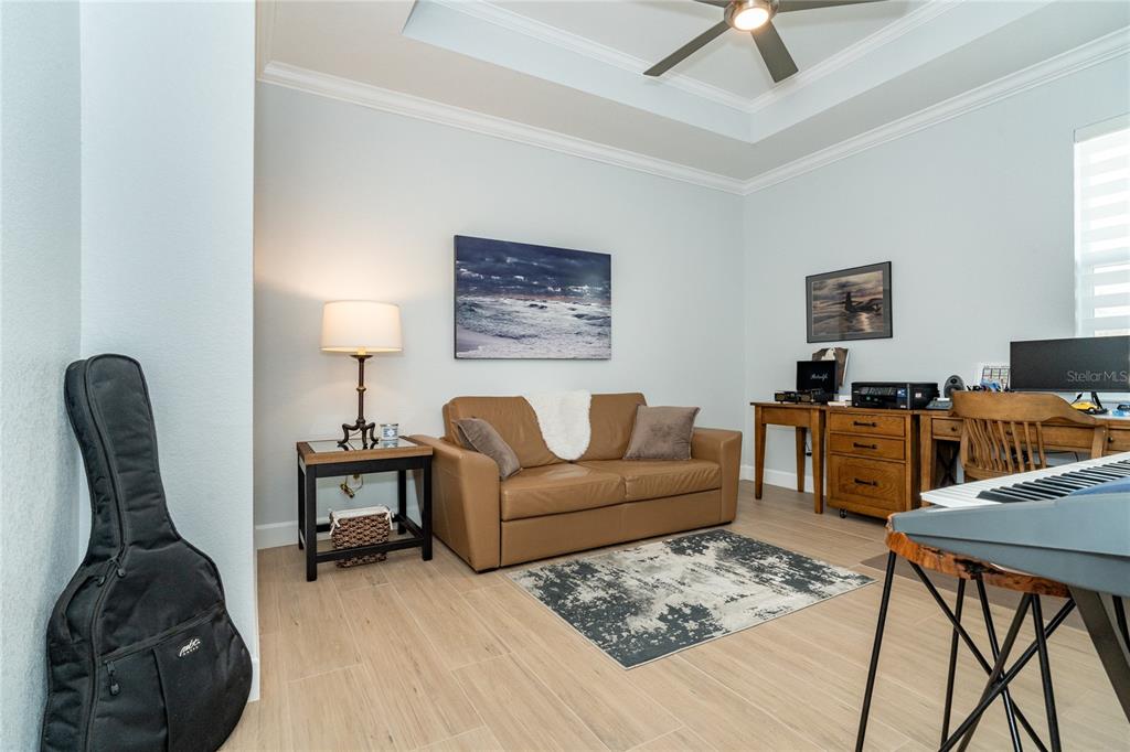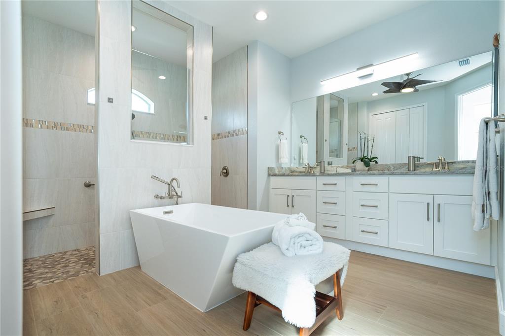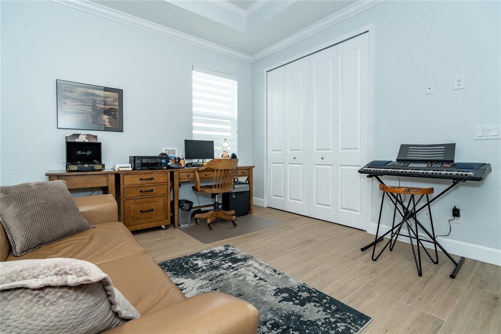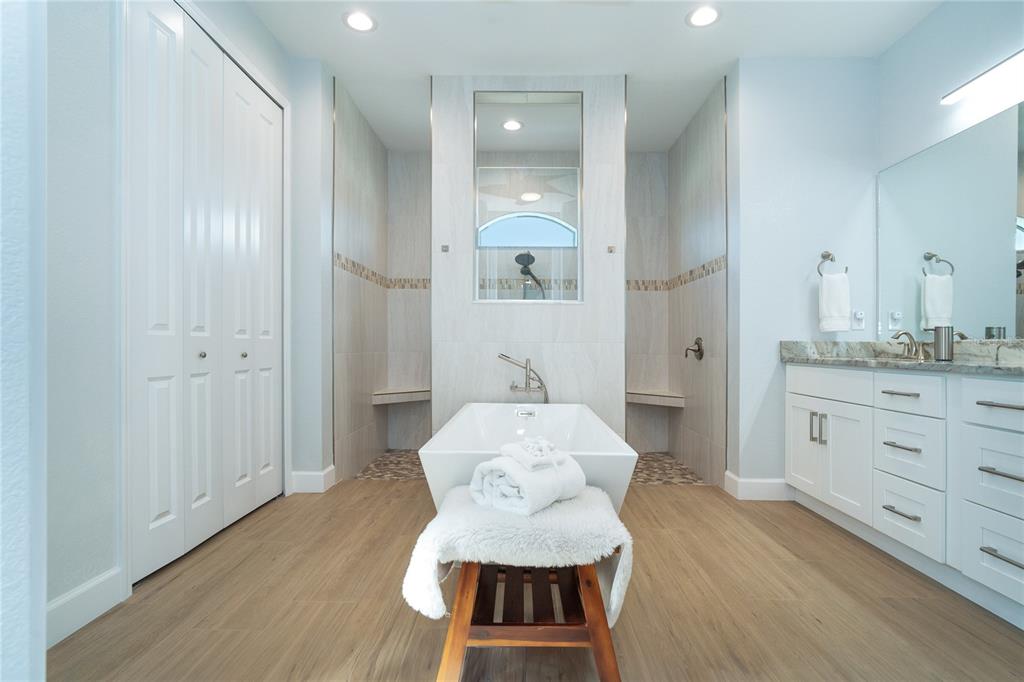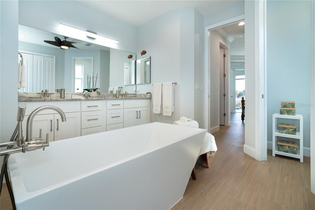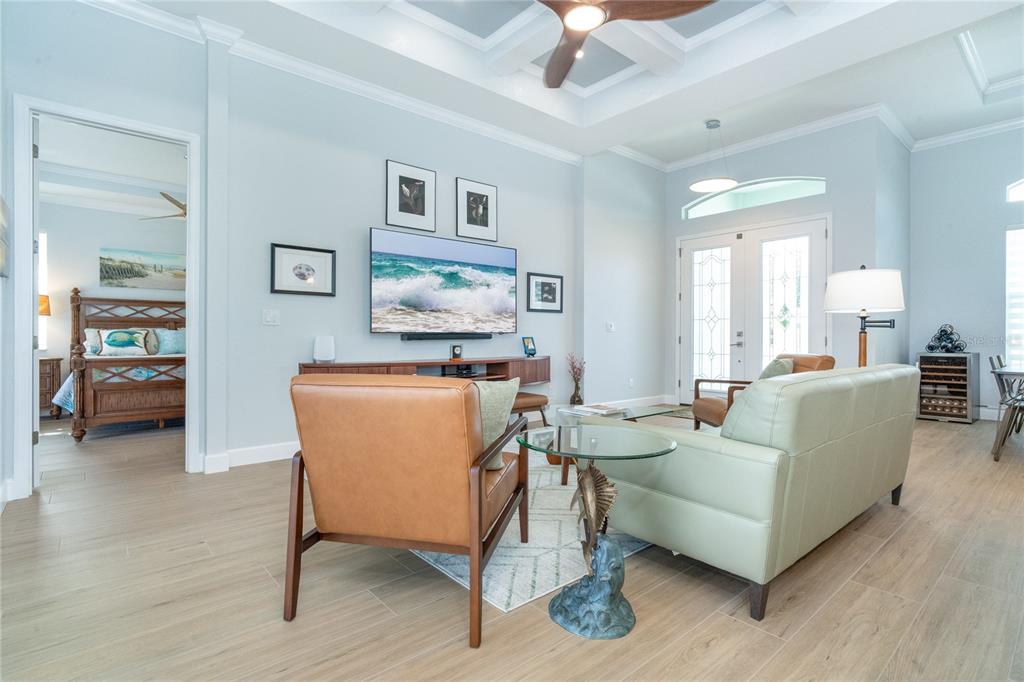 Split BedroomBuilt-in Features Walk-In Closet(s)Ceiling Fan(s) High Ceilings Stone Counters Thermostat Open Floorplan Window Treatments Solid Wood CabinetsCrown Molding Primary Bedroom Main Floor Coffered Ceiling(s) Tray Ceiling(s)Exterior Features: