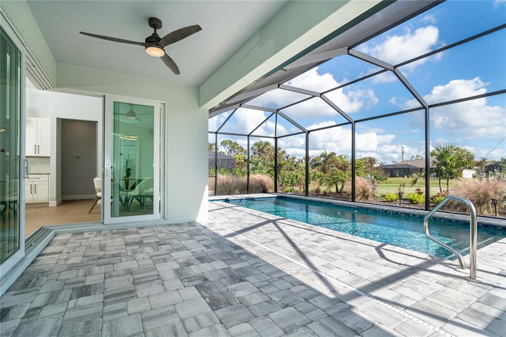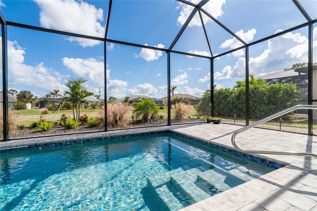 Better than new! why wait to build when you can move right into this stunning, 2-year-old custom-built contemporary pool home in the highly sought-after golfing community of rotonda west on prestigious rotonda blvd north? this home, located on an oversized 80’ x 200’ (.37 acre) homesite in the preferred x flood zone, boasts a thoughtfully designed open-concept floor plan with multiple builder and owner upgrades throughout. from the moment you step through the barrier-free glass double doorway into the soaring vestibule, you’ll be captivated by the bright and open split floor plan, which separates the primary suite from bedrooms 2 and 3, ensuring privacy on opposite sides of the main living area. the home’s contemporary design features elegant details like soaring ceilings with double crown molding, custom high-efficiency lighting and fans, a coffered ceiling with extra lighting, 8’ doors, pocket doors, 90-degree sliders, 5 ¼” base trim, and sleek wood plank porcelain tile flooring throughout. the chef’s kitchen is equipped with high-end g.e. profile stainless steel appliances, self-closing cabinetry with in-cabinet shelf genie slide-out shelves, and a spacious island (50” d x 9’9.5” l) with seating and storage on both sides. beautiful level 3 quartzite countertops and a custom tile backsplash elevate the space, making it a true culinary haven. the primary suite bathroom offers a luxurious experience with an oversized “car wash” shower featuring matching benches, porcelain tile, decorative tile accents, and a sealed stone floor, as well as a separate soaking tub. double-pane insulated impact glass windows and doors provide effortless hurricane protection throughout. additional highlights include a spacious 3-car garage with custom epoxy and polyaspartic floor coating, a new roof (installed feb 2023) with an upgraded water-resistant barrier, and a beautifully designed custom pool. the 11’x25’ heated saltwater pool includes durable pebble tec coating, decorative and reflective tile, an arched waterfall, a 1.8 variable speed pump, and a large 18’x37’ pool cage with adjoining paver patio and walkway. outdoor features such as the custom curbing, stonework, custom landscaping, and lighting further enhance the property’s curb appeal. pride of ownership is evident in every corner of this home. schedule your private showing today and experience the charm and quality of this exceptional property!180 ROTONDA N, ROTONDA WEST, FL 33947