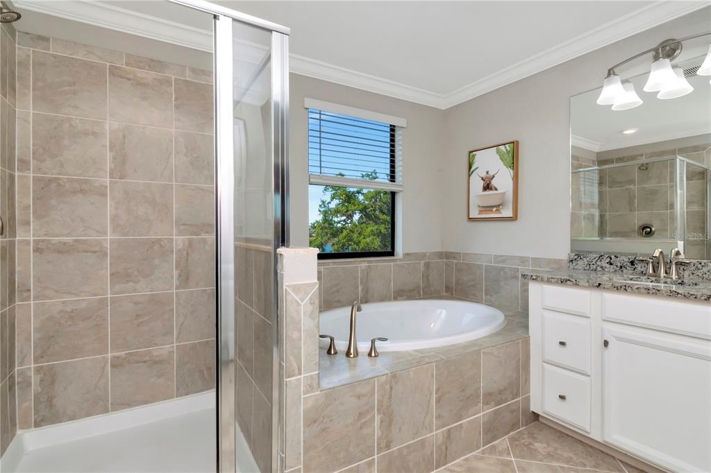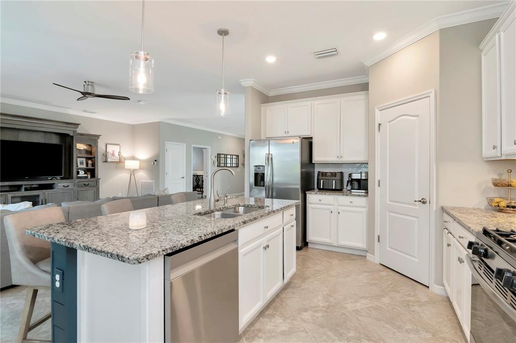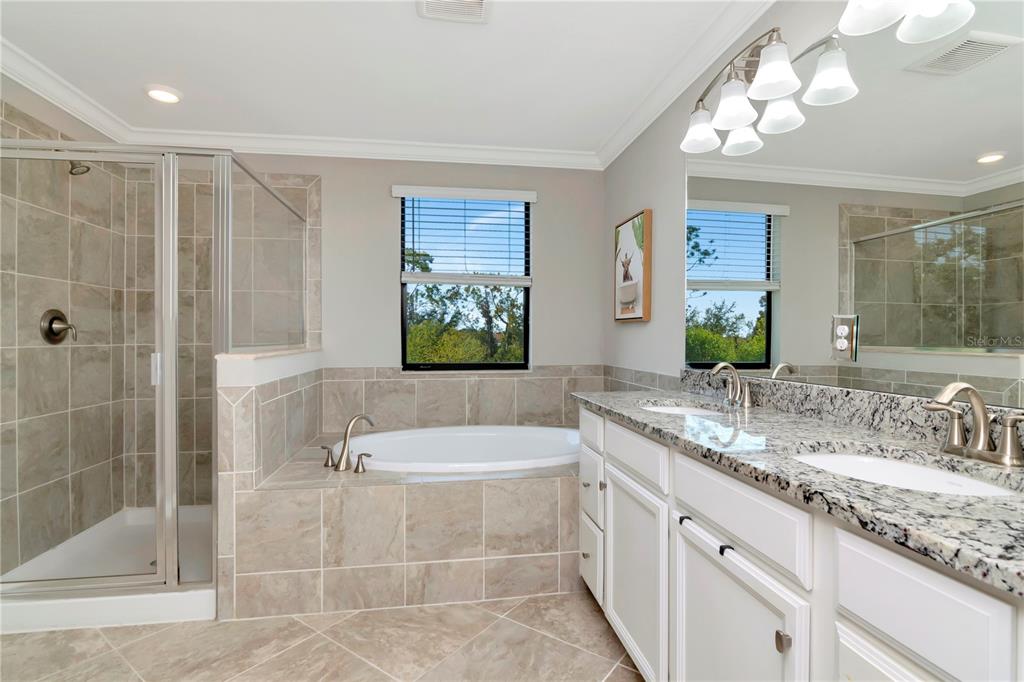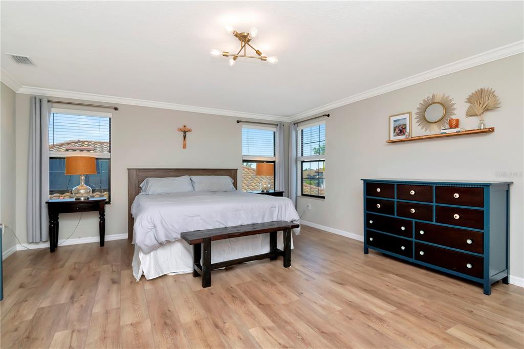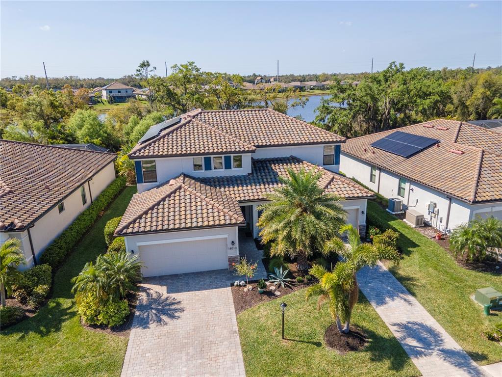 Welcome to polo run! an incredible blend of space, style, and versatility—perfect for multi-generational living! this expansive home offers 3,900 sf featuring 6 bedrooms, 4.5 baths and a 3 car garage. a separate suite on the main floor provides the ultimate in privacy and is complete with a kitchenette cafe space, spacious bedroom, full bath, living area, private entrance with a dedicated garage along with its own washer and dryer. modern touches of complimenting wall treatments, crown molding and window molding throughout give this unique space the feel of luxury. the open-concept main floor space showcases a large family gathering room, versatile dining space along with an open and bright kitchen with eat in dining nook. the triple sliding door in the great room lets the light flood in from the oversized covered screened in lanai that has been extended to give the perfect amount of indoor/outdoor living space along with a built in bar that makes entertaining easy. crown molding, custom window casing throughout along with soft neutral colors showcase the feeling of a modern style home. located on a peaceful lot with mature trees directly behind spend time relaxing while taking in the sights of florida living. the staircases has beautiful wood flooring with coordinating neutral luxury plank vinyl flooring throughout the entire second floor. the open bonus room at the top of the stairs is the perfect additional flex space. the large primary suite delivers a spa-like retreat with a soaking tub, separate shower, and walk-in closet. the second floor has 4 more additional bedrooms with second floor laundry and 2 full baths. the solar panels help with energy costs. this home has a space for everyone and everything! polo run features a community resort-style pool, tennis and pickleball courts, bocce ball, dog park, basketball and on-site fitness center! located right off of sr 70 polo run is close to 175 and quick access to st. petersburg, tampa and sarasota. shopping, restaurants and premier sports complex are all just minutes away.18013 POLO, BRADENTON, FL 34211