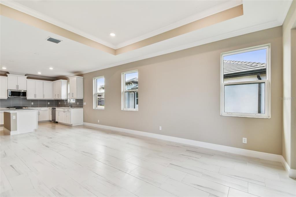 Under construction. welcome home to the topaz. this villa’s floorplan includes two bedrooms, two bathrooms, den, and a two-car garage. enter in from the extended entryway, perfect for sipping your morning coffee, and head straight in the front door and into the heart of the home. a cozy den is tucked into the side with optional doors for maximum privacy. a kitchen awaits with a large center island, beautiful cabinetry, an abundant amount of countertop space, and a pantry to provide extra storage. across the kitchen is the dining area, followed by the large great room. sliding glass doors cover the back wall and open to the covered lanai. the owner's suite shares this wing of the house with an optional tray ceiling for a spacious feeling. the bedroom leads into the bathroom with dual vanities, a walk-in shower, and a spacious walk-in closet. nestled in the front of the topaz are a bedroom and a full bathroom. a utility room sits beside the bathroom, creating great accessibility to the rest of the home.Villa 2 bedrooms - SWEETWATER VILLAS AT LAKEWOOD RANCH for Sale