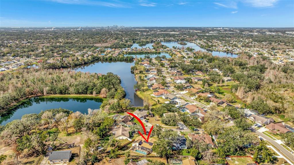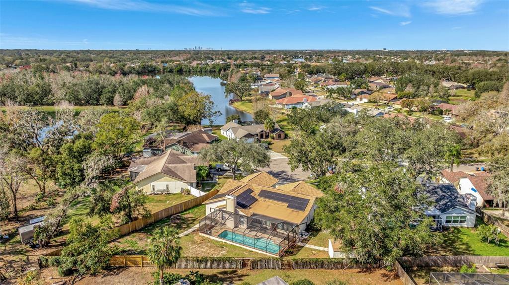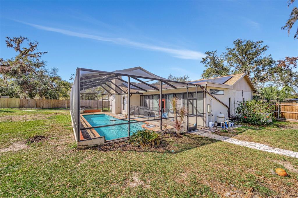 Welcome to your pool home located on a.35-acre lot nestled on a quiet cul-de-sac in this community conveniently located in brandon. when you arrive, you will be greeted by easy care landscaping. once you pass through the grand covered entryway, the home is bright and open with plenty of natural light and has been recently painted. there is a formal dining room immediately to your right with easy-to-clean tile floors, and the living room with its waterproof/scuff-proof wood laminate flooring is straight ahead with a large wall-sized slider that leads to the enclosed porch leading the back yard and pool. the open kitchen has newer appliances and beautifully refreshed cabinets and counter tops, which offers plenty of storage and work space, a breakfast bar, and a separate eating space. the kitchen opens to the spacious great room, where you can cozy up by the wood-burning fireplace on chilly evenings or enjoy entertaining friends and family, with a large slider to the outside porch area. the bedrooms are split for privacy, and the owner’s retreat offers its own private sliding door to the back porch and an en-suite bathroom with a dual sink vanity, a large walk-in shower, and a soaking tub.. the second bedroom is on the side of the home and would be a great office or nursery. on the other side of the home are 2 nice-sized bedrooms and a second bath with a tub. this home has had many upgrades, including a new roof (december 2021), solar panels (2022 ), newer kitchen appliances, refreshed cabinets and counters throughout, a water conditioner and softener system, and a whole-house generac system (2023), which is run by propane. the garage is large and has a mini-split a/c unit which allows for storage or can use it as a man cave or entertainment room for your family. you will love to entertain on the enclosed porch area with ceiling fans to keep you cool, or take a dip in the sparkling, screened-in swimming pool with a gorgeous deck. the backyard is fully fenced and has a shed for extra storage. the yard boasts plenty of gardening opportunities and lots of space for family activities. lakeview village is a quiet, deed-restricted community that is conveniently located near i-75, i-4, and the selmon expressway. the community borders lake mango, a 66-acre competitive ski lake, as well as about 20 acres of privately owned land1803 TAWNEE, BRANDON, FL 33510