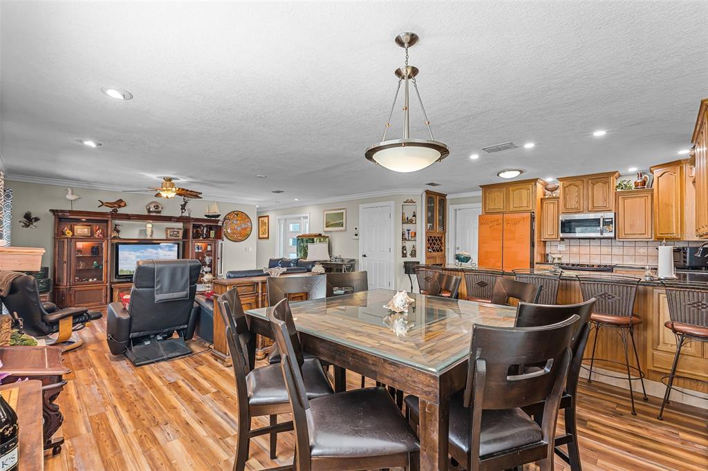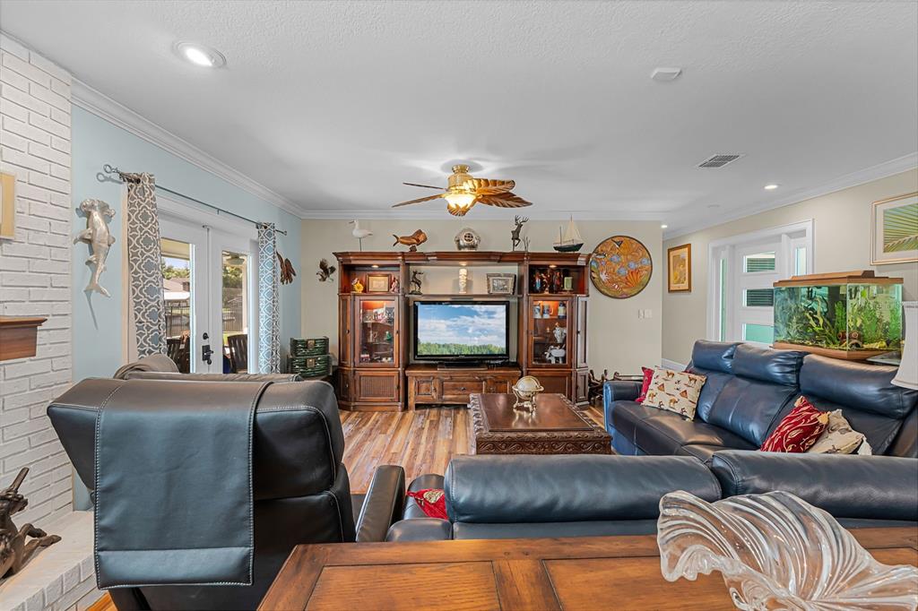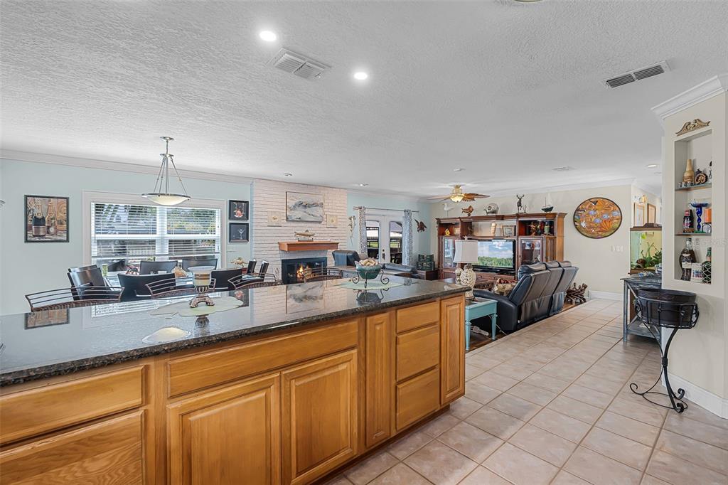 Split Bedroom Walk-In Closet(s)Ceiling Fan(s) Eating Space In Kitchen Stone Counters Thermostat Open Floorplan Window Treatments Solid Wood CabinetsCrown Molding Primary Bedroom Main Floor Kitchen/Family Room ComboExterior Features: